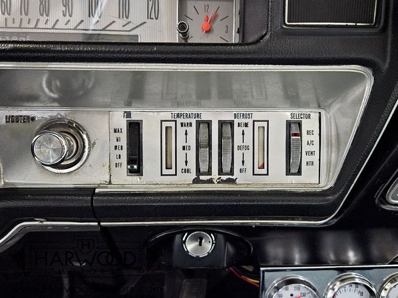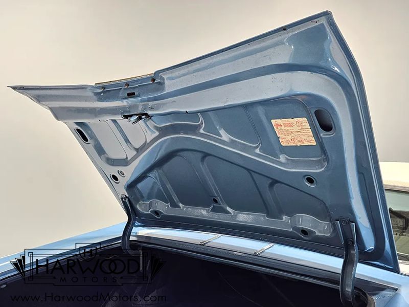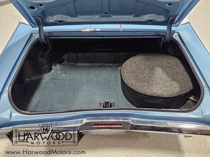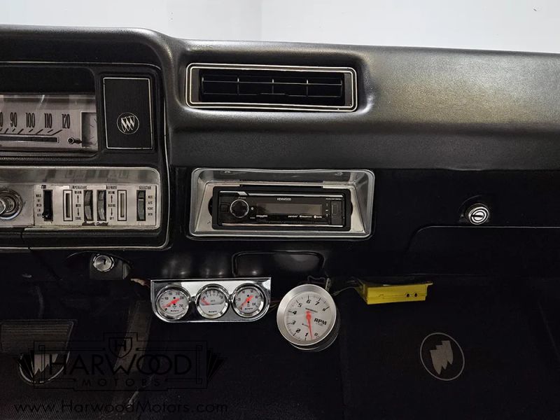 The code 152 white vinyl interior is a combination of original and restored pieces that have a consistent, high-quality look. Were betting that the door panels are original, and maybe even the seats, but there are newer black carpets on the floor and a bright white headliner overhead. The three-spoke steering wheel frames the gauges, which cover only the basics, so someone has added a trio of auxiliary dials under the dash, along with a big tachometer, all of which have white faces to match the factory setup. Aftermarket cruise control has been added, and it works properly using a controller on the turn signal stalk, making this Buick nice to drive. It is also equipped with factory A/C, which seems to work, although the hoses and system activate and get cold but it doesnt blow cold air from the vents for some reason. Theres also a modern Kenwood entertainment unit in the dash, which feeds new speakers on the rear package shelf. Front and rear seat belts are a good idea, and the big trunk is correctly outfitted with a vinyl mat and spare tire cover.