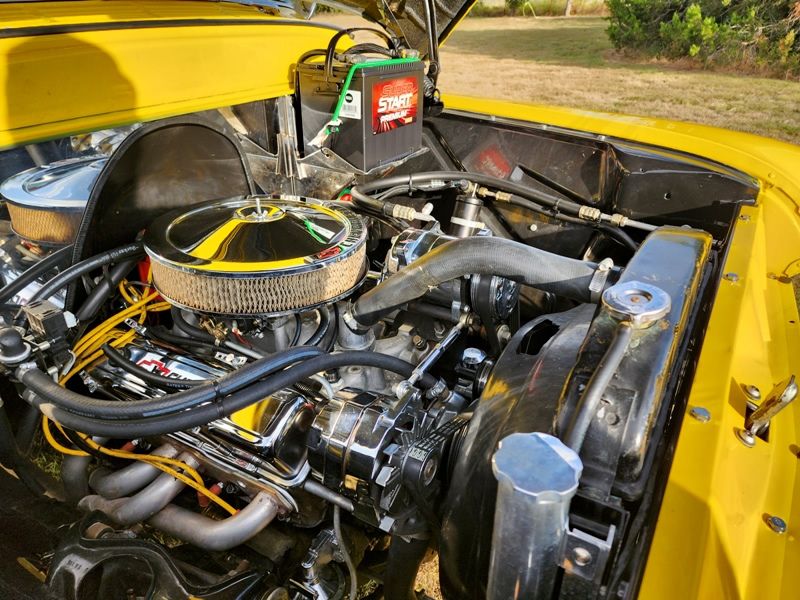 The Chevrolet "Task Force" was a light duty pickup introduced in 1955. This was the first major redesign for the Chevy pickup since 1947. The idea was to have a more modern design than the Advance Design series without sacrificing any ruggedness or durability. Of these the Cameo was king and would eventually pave the way for the Fleetside where the rear fenders continue into the cab's body lines. They were built from 1955-1959 and 5,220 were produced for the 1955 model year. This 1955 Chevy truck is a high end build and has spent a large part of its life in Texas. The builder purchased the truck in February 2001 and invested 8 years into completing it. It is in excellent condition throughout and runs great. The body is very straight and all rust free. It is painted in a 2008 Corvette Velocity Yellow with area around the rear window being a 1982 GM Almond color. It was all professionally done by Accurate Paint & Body out of Burleson, Texas. It really pops out in the sun and will get attention wherever it goes. All of the glass is in good condition and it has the big rear window which is the more desirable body style. Up front is the iconic egg crate grill which has a great shine along with the stock style front bumper. All of the lights work properly and the taillights have the old school blue dots in place. One of the most beautiful features you find on these old trucks is the wood beds. This one is stained nicely and has a gloss finish with stainless runners. The gas tank was relocated to under the bed which is a nice improvement as these often had the tank in the cab behind the seat. The truck has a great stance and rides on a set of 17 inch classic Eagle Alloy wheels wrapped with Sumitomo tires.