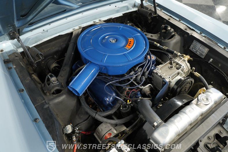 289 V8 Engine With Updated Alternator C4 3-Speed Automatic Transmission Full Repaint In Original Blue Factory Style 14-Inch Wheels BF Goodrich Premier Tires Aluminum Radiator For Improved Cooling Modern R-134A Air Conditioning Power Front Disc Brakes Power Rear Drum Brakes Dual Chambered Stock-Style Exhaust Well-Preserved Factory Interior Luggage Rack Mounted On Trunk Driver And Passenger Side Mirrors Documentation Available Financing Available Vehicle Protection Plans Available Worldwide Shipping