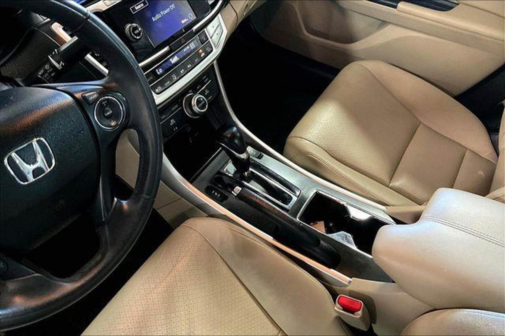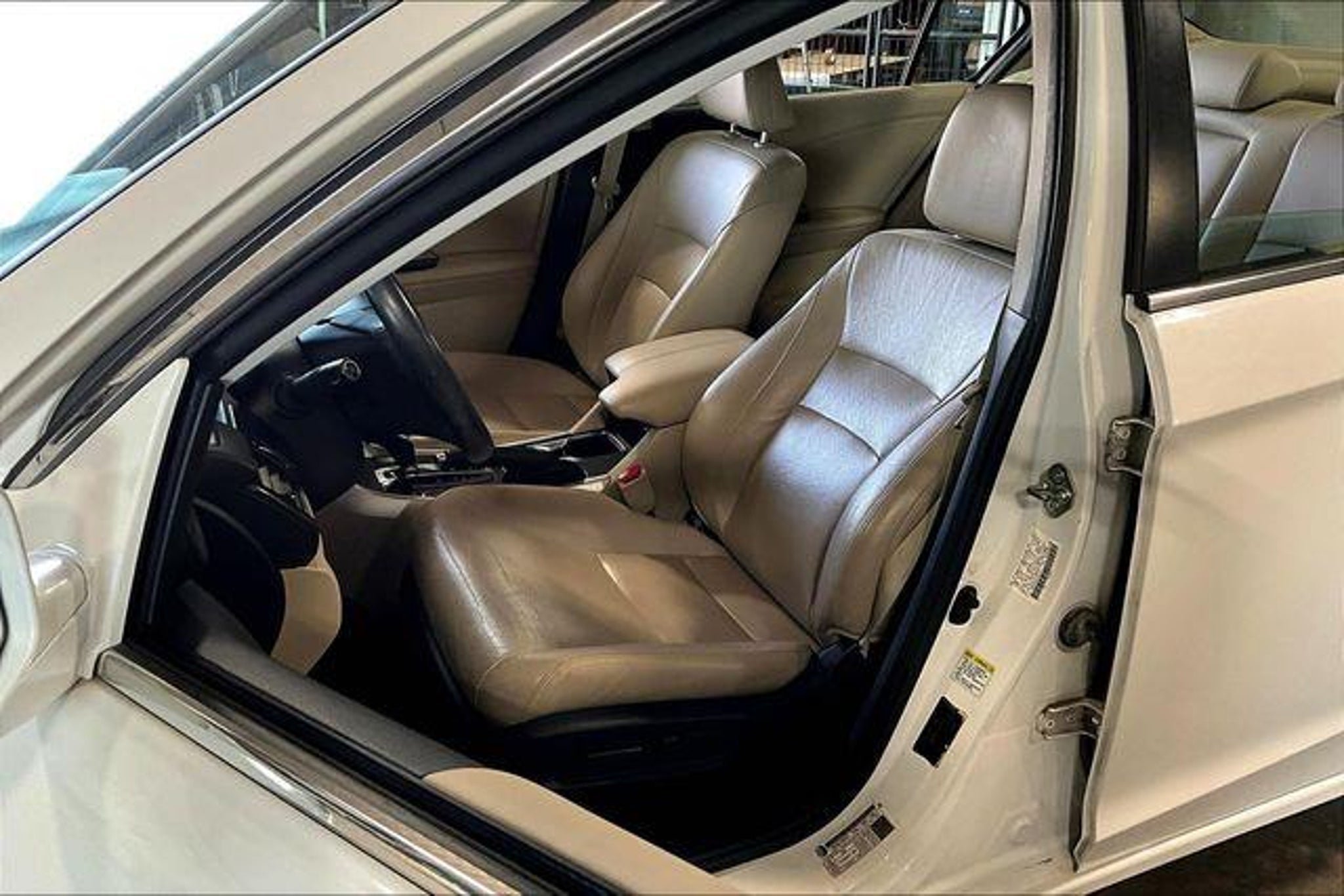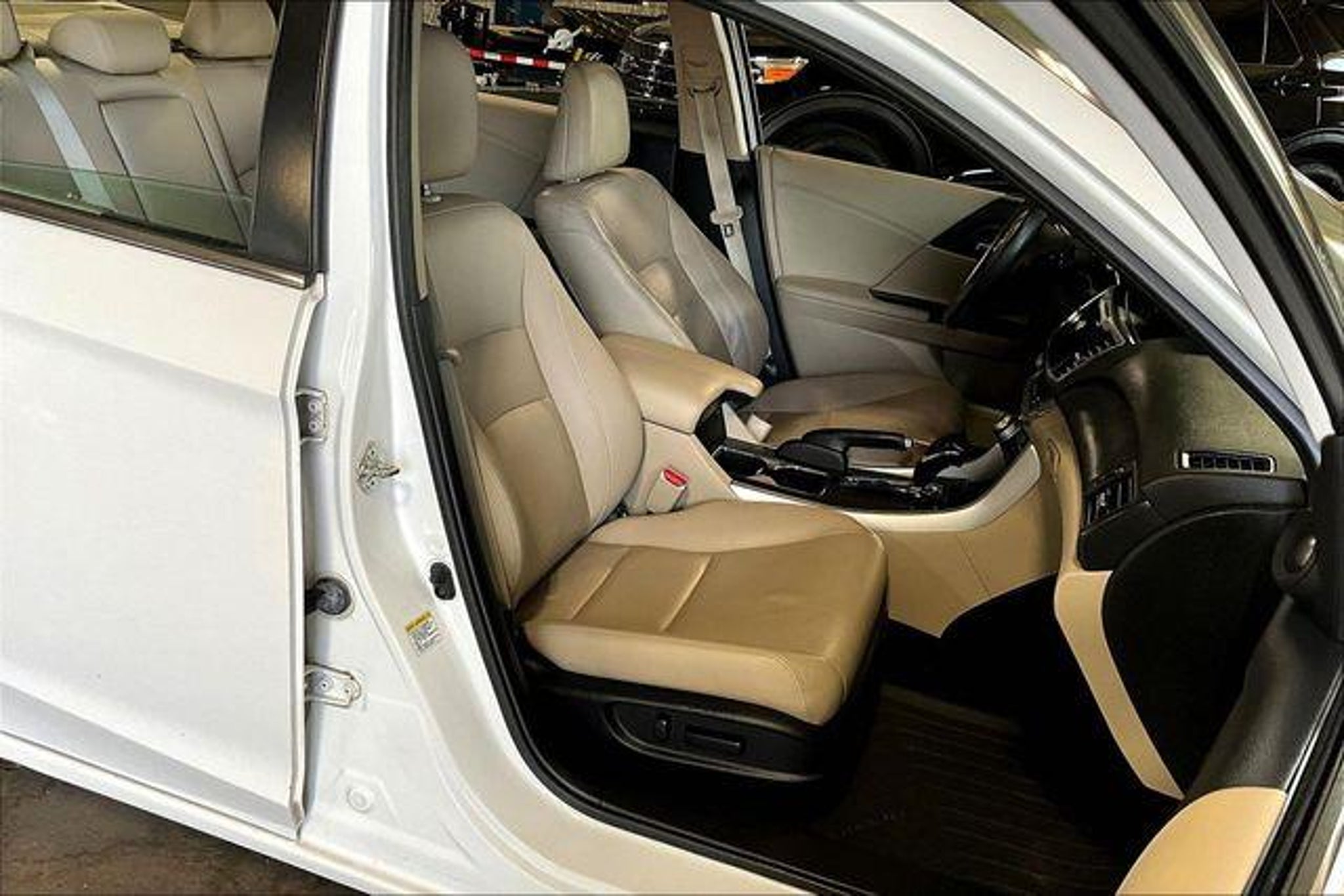 White 2015 Honda Accord EX-L FWD 2.4L I4 DOHC i-VTEC 16V 4D Sedan CVT Providing a level of service unattainable elsewhere...only at Dayton Ford! Our advertised prices already include our processing fee of $599. (Most other dealers add the processing fee to the sale price after you've agreed to buy. Please read the fine print). Prices are subject to applicable tax, tag and title fees. Dealer financing required. Leather, 17 Alloy Wheels, 4-Wheel Disc Brakes, 7 Speakers, ABS brakes, Air Conditioning, Alloy wheels, AM/FM radio: SiriusXM, Auto-dimming Rear-View mirror, Automatic temperature control, Brake assist, Bumpers: body-color, CD player, Compass, Delay-off headlights, Driver door bin, Driver vanity mirror, Dual front impact airbags, Dual front side impact airbags, Electronic Stability Control, Exterior Parking Camera Rear, Four wheel independent suspension, Front anti-roll bar, Front Bucket Seats, Front Center Armrest, Front dual zone A/C, Front fog lights, Front reading lights, Fully automatic headlights, Garage door transmitter: HomeLink, Heated door mirrors, Heated Front Bucket Seats, Heated front seats, Illuminated entry, Leather steering wheel, Low tire pressure warning, Memory seat, Occupant sensing airbag, Outside temperature display, Overhead airbag, Overhead console, Panic alarm, Passenger door bin, Passenger vanity mirror, Perforated Leather-Trimmed Seats, Power door mirrors, Power driver seat, Power moonroof, Power passenger seat, Power steering, Power windows, Radio data system, Radio: 360-Watt AM/FM/CD Premium Audio System, Rear anti-roll bar, Rear seat center armrest, Rear window defroster, Remote keyless entry, Security system, Speed control, Speed-sensing steering, Speed-Sensitive Wipers, Steering wheel mounted audio controls, Tachometer, Telescoping steering wheel, Tilt steering wheel, Traction control, Trip computer, Turn signal indicator mirrors, Variably intermittent wipers, Leather.