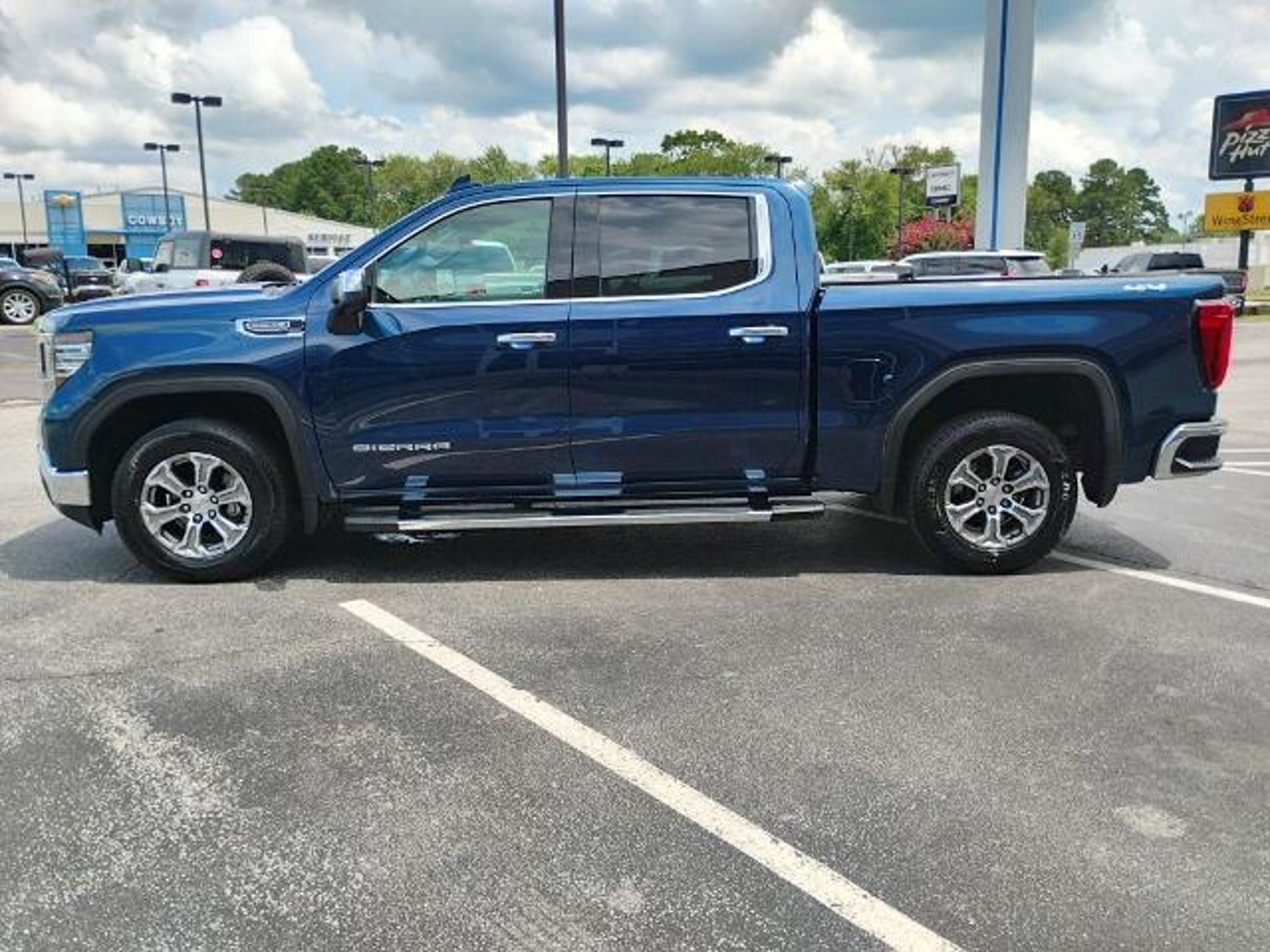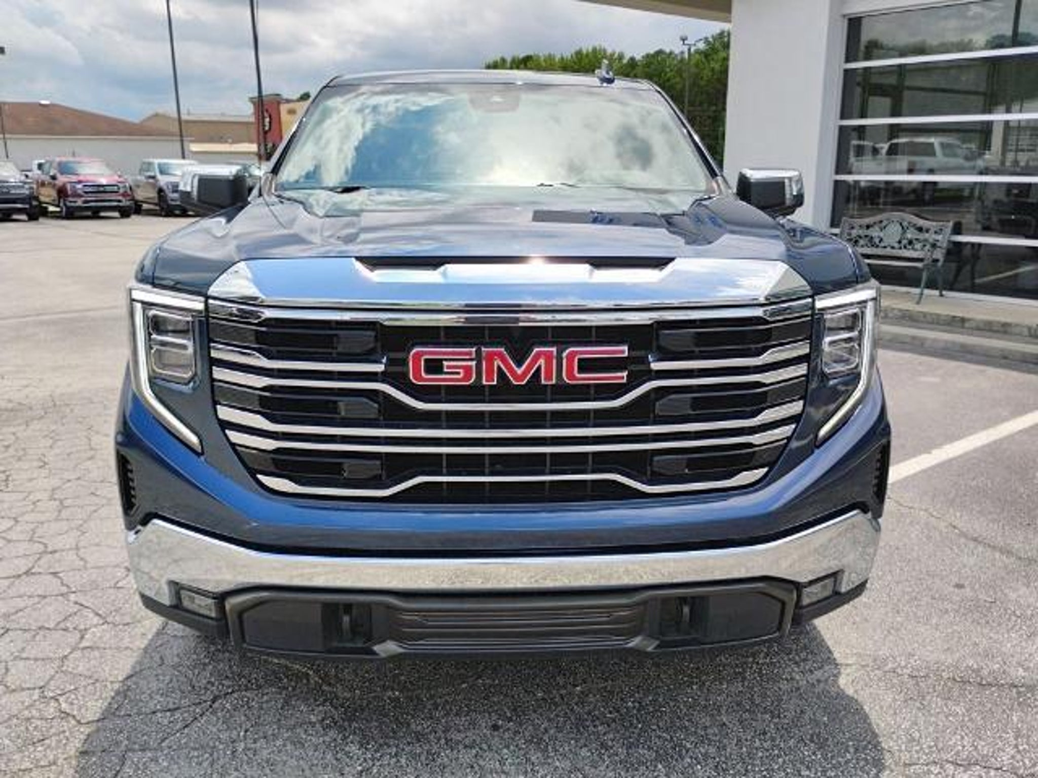 This 2023 GMC Sierra 1500 SLT in Pacific Blue Metallic comes with the following features: EcoTec3 5.3L V8 10-Speed Automatic 4WD Preferred Equipment Group 4SA (120-Volt Bed Mounted Power Outlet, 120-Volt Instrument Panel Power Outlet, 170 Amp Alternator, 2 Charge/Data USB Ports, 2 Type-C Charge-Only Rear USB Ports, 6-Speaker Audio System Feature, Auto-Locking Rear Differential, Auxiliary External Transmission Oil Cooler, Chrome Header & Chrome Grille Insert Bars, Color-Keyed Carpeting Floor Covering, Compass, Deep-Tinted Glass, Electric Rear-Window Defogger, Electrical Steering Column Lock, Front Frame-Mounted Black Recovery Hooks, Front Rainsensing Wipers, GMC Connected Access Capable, HD Rear Vision Camera, Keyless Open & Start, LED Cargo Area Lighting, Manual Tilt-Wheel & Telescoping Steering Column, OnStar & GMC Connected Services Capable, Perimeter Lighting, Power Door Locks, Power Front Passenger Windows w/Express Up/Down, Power Front Windows w/Driver Express Up/Down, Power Rear Windows w/Express Down, Push Button Start, Rear Wheelhouse Liners, Remote Vehicle Starter System, SiriusXM w/360L, Steering Wheel Audio Controls, Theft Deterrent System (Unauthorized Entry), Wi-Fi Hotspot Capable, and Wireless Phone Projection), Standard Suspension Package, Trailering Package (Hitch Guidance), 10-Speed Automatic, 4WD, Black Leather, 10-Way Power Driver Seat Adjuster w/Lumbar, 10-Way Power Passenger Seat Adjuster w/Lumbar, 3.23 Rear Axle Ratio, 4-Wheel Disc Brakes, 6 Speakers, ABS brakes, Air Conditioning, Alloy wheels, AM/FM radio, Apple CarPlay/Android Auto, Auto High-beam Headlights, Auto-dimming door mirrors, Auto-dimming Rear-View mirror, Automatic Emergency Braking, Automatic temperature control, Brake assist, Buckle to Drive, Bumpers: chrome, Delay-off headlights, Driver door bin, Driver Memory, Driver vanity mirror, Dual front impact airbags, Dual front side impact airbags, Electronic Stability Control, Emergency communication system: OnStar and GMC connected services capable, Following Distance Indicator, Forward Collision Alert, Front 40/20/40 Split-Bench Seat, Front anti-roll bar, Front Center Armrest w/Storage, Front dual zone A/C, Front fog lights, Front Pedestrian Braking, Front reading lights, Front wheel independent suspension, Fully automatic headlights, Heated door mirrors, Heated Driver & Front Outboard Passenger Seating, Heated front seats, Heated steering wheel, Illuminated entry, IntelliBeam Automatic High Beam On/Off, Lane Keep Assist w/Lane Departure Warning, Low tire pressure warning