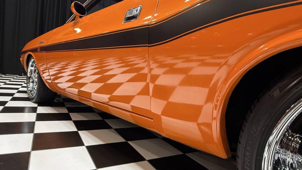 The stance is aggressive, and the upgraded wheel and tire package gives it a modern muscle presence while keeping that classic 1970 attitude.