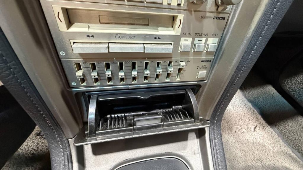 Braking is handled by power-assisted four-wheel disc brakes. The bucket seats are upholstered in striped gray velour that extends to the door-panel inserts. Additional options include air conditioning, as well as power windows, a digital clock, cruise control, and a factory cassette stereo with a graphic equalizer. The three-spoke steering wheel has a 140-mph speedometer and a tachometer with a 7k-rpm redline as well as gauges for oil pressure, voltage, coolant temperature, and fuel level. The six-digit odometer shows 119k miles. The Wankel rotary was factory equipped with a four-barrel carburetor. Power is sent to the rear wheels through a five-speed manual transmission and a limited-slip differential. See pics of underneath WOW!! Its clean......