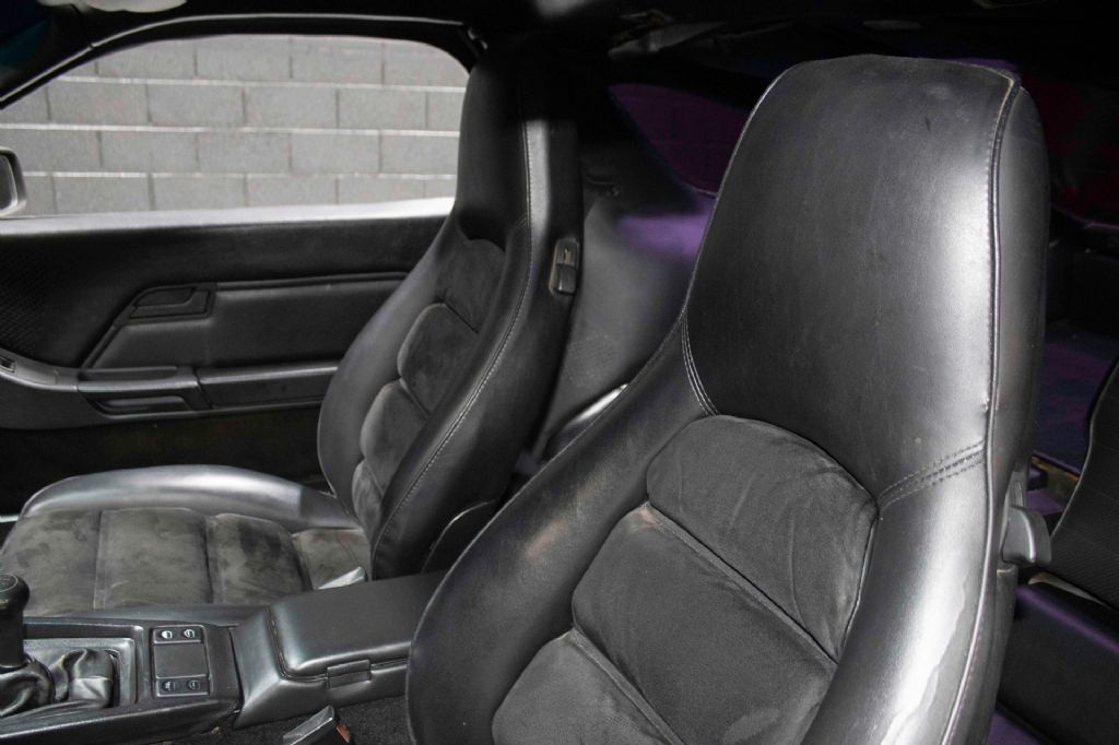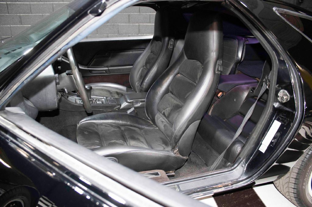 The interior is trimmed in black upholstery with sueded inserts covering later-model power-adjustable front seats installed in 2018. Features include: