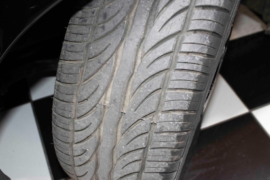 The car rides on 16 alloy wheels with black-finished centers wrapped in 225/50 Ohtsu Zexius tires. Braking is handled by power-assisted discs at all four corners, upgraded with braided stainless-steel lines for improved pedal feel. The seller notes a power-steering fluid leak.