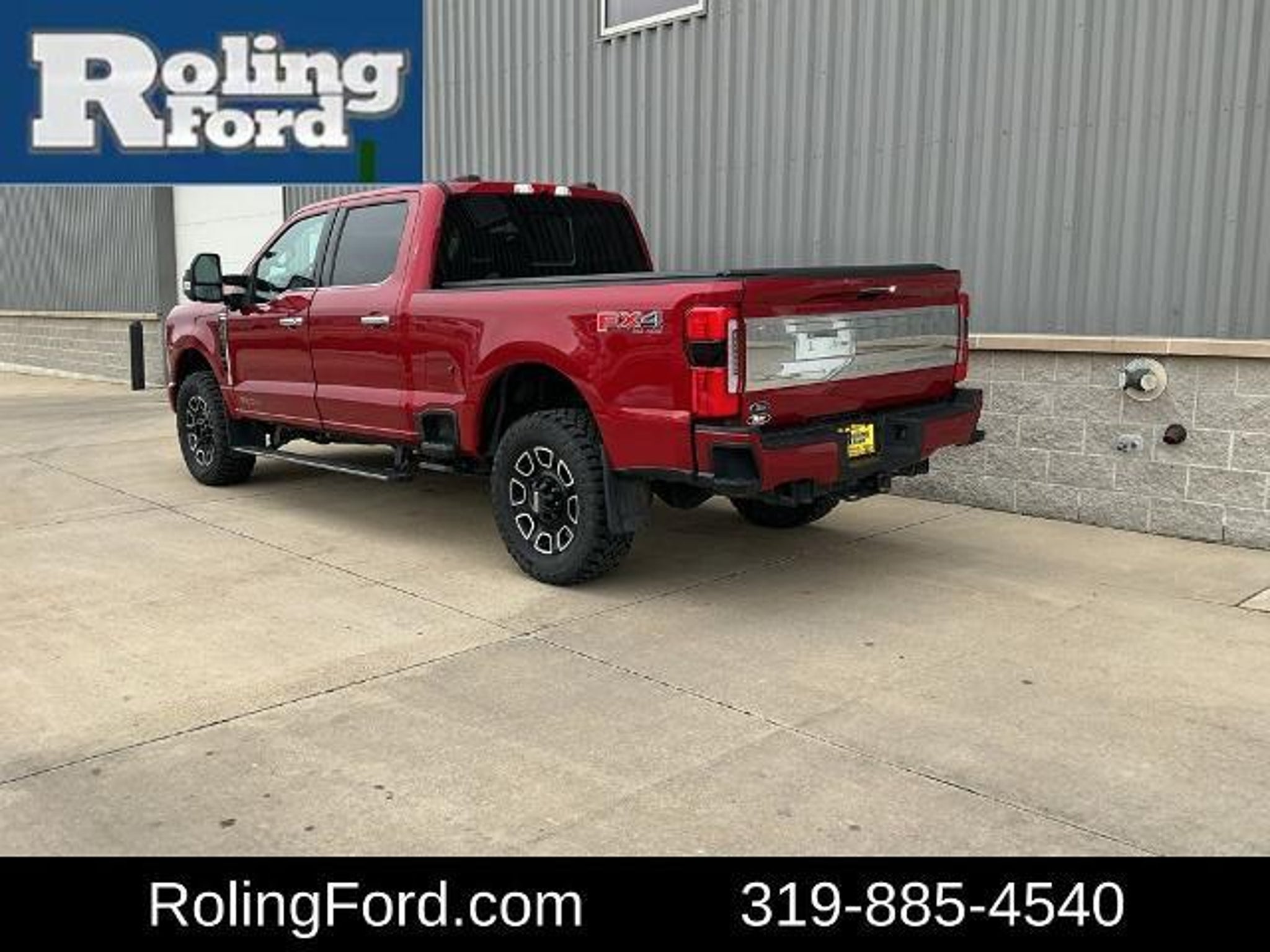 Recent Arrival! Red Metallic 2024 Ford F-350SD Platinum 4D Crew Cab 4WD 10-Speed Automatic 6.7L High Output Power Stroke V8 Diesel Odometer is 8100 miles below market average! 5th Wheel/Gooseneck Hitch Prep Package, FX4 Off-Road Package, Navigation system: Connected Navigation (includes complimentary 1-year trial), Ford CO-Pilot360, FordPass Connect 5GWI-FI, SecuriCode Keyless Keypad, SOS Post-Crash Alert System, Power Tailgate, Power Sliding Rear Window W/Defrost & Privacy Tint, Power Fold, 360 Camera System, A/C w/ Dual Climate Control, ABS brakes, Adaptive Cruise Control, Adjustable pedals, Aluminum wheels, AM/FM radio: SiriusXM with 360L, Auto High-beam Headlights, Compass, Delay-off headlights, Driver vanity mirror, Dual front impact airbags, Dual Power Outside Mirrors, Power Adjust, Electronic Stability Control, Electronic Traction Assist, Electronic-Locking w/3.31 Axle Ratio, Engine Block Heater, Fog Lamps - LED, Front Center Armrest, Fully automatic headlights, Garage door transmitter, Heads-Up Display, Heated Door Mirrors w/ Approach Lamps, Heated Front Seats, Heated rear seats, Heated steering wheel, Hill Start Assist, Illuminated entry, Leather steering wheel, Low tire pressure warning, Memory seat, Off-Road Specifically Tuned Shock Absorbers, Overhead airbag, Panic alarm, Passenger vanity mirror, Pedal memory, Power driver seat, Power passenger seat, Power steering, Power windows, Rain sensing wipers, Rear step bumper, Remote keyless entry, Security system, SiriusXM Radio w/360L, Speed control, Steering wheel mounted audio controls, SYNC 4 w/Enhanced Voice Recognition, Telescoping steering wheel, Tilt steering wheel, Tough Bed Spray-In Bedliner, Tri Zone Climate Control, Twin Panel Power Moonroof, Unique FX4 Off-Road Box Decal, Ventilated front seats. The selections are great at Roling Ford! Call 319-885-4540 to schedule a test drive!