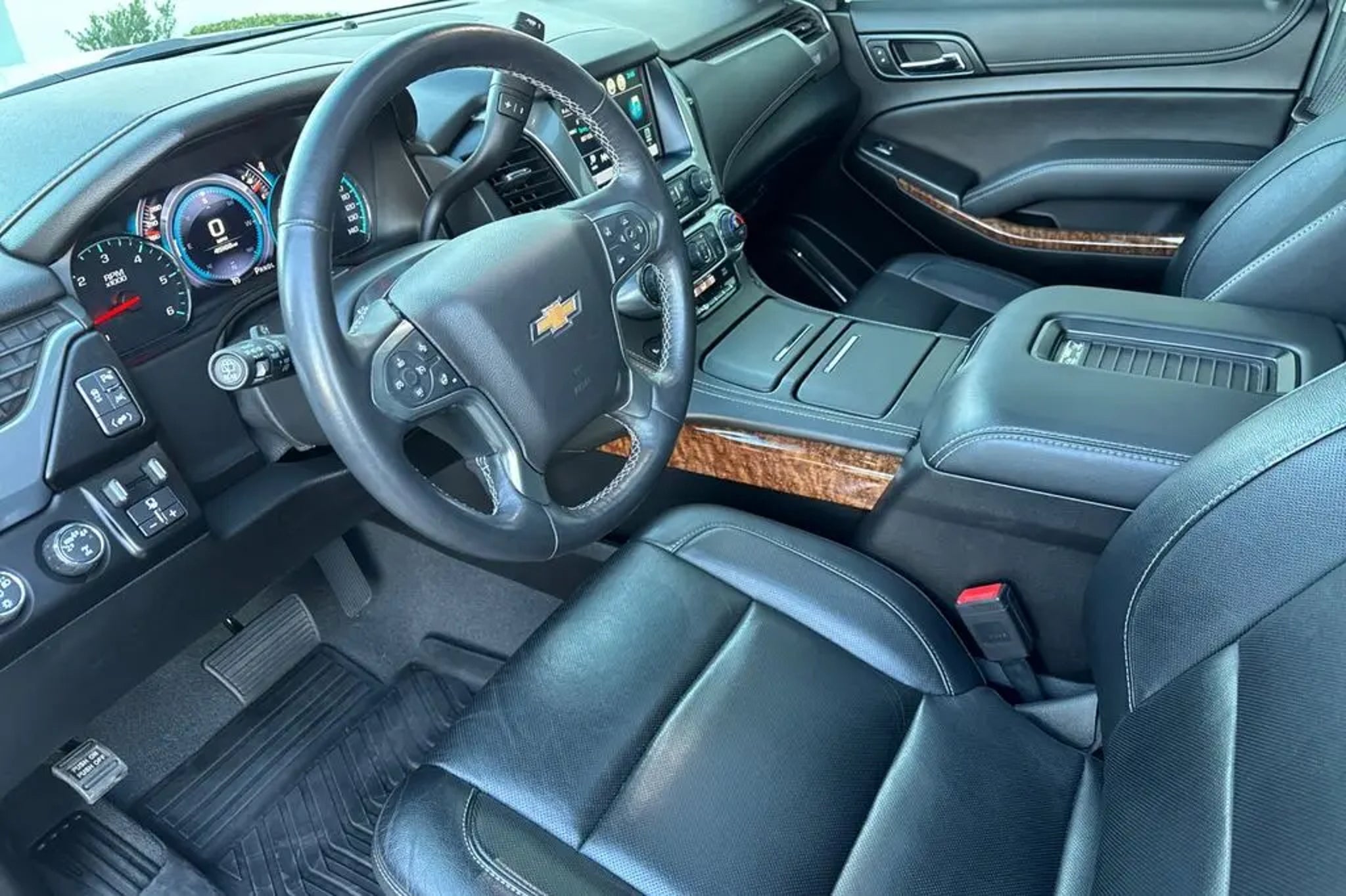 2019 Chevrolet Tahoe Premier Summit White Fresh Oil Change, No Accident on Carfax, 4WD, Jet Black Leather, 10 Speakers, 4-Wheel Disc Brakes, ABS brakes, Adjustable pedals, Air Conditioning, AM/FM radio: SiriusXM, Apple CarPlay/Android Auto, Black Beltline Moldings, Black Mirror Caps, Black Roof Rails, Body-Color Door Handles & Headlamp Accents, Brake assist, Bumpers: body-color, CD player, Compass, Electronic Stability Control, Fog Lamps, Front & Rear Black Bowties, Front dual zone A/C, HD Radio, Heated door mirrors, Heated front seats, Low tire pressure warning, Occupant sensing airbag, Power door mirrors, Power driver seat, Power Liftgate, Power steering, Power Sunroof, Power Tilt & Telescopic Steering Column, Power windows, Rear air conditioning, Rear window defroster, Remote keyless entry, RST Edition, Set of 4 Wheel Locks (LPO), Speed control, Speed-sensing steering, Tachometer, Telescoping steering wheel, Tilt steering wheel, Traction control, Trip computer, Turn signal indicator mirrors, Unique Gloss Black Sport Grille, Unique RST Emblem, Ventilated front seats, Wheels: 22 x 9 Gloss Black Aluminum. Odometer is 29411 miles below market average!