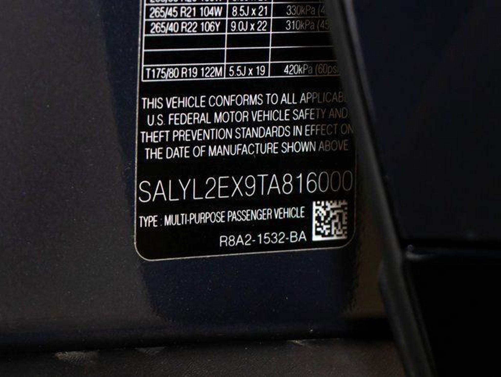 VIN SALYL2EX9TA816000