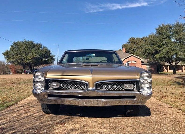 CONDITION This 1967 Pontiac GTO is a sharp, show-quality classic that has been restored and successfully shown at local car events. Finished in gold with a black vinyl top, it presents with bright chrome bumpers and trim that show well. The black interior features a classic Pontiac layout with factory-style gauges and woodgrain-style dash trim for an authentic muscle-era feel.