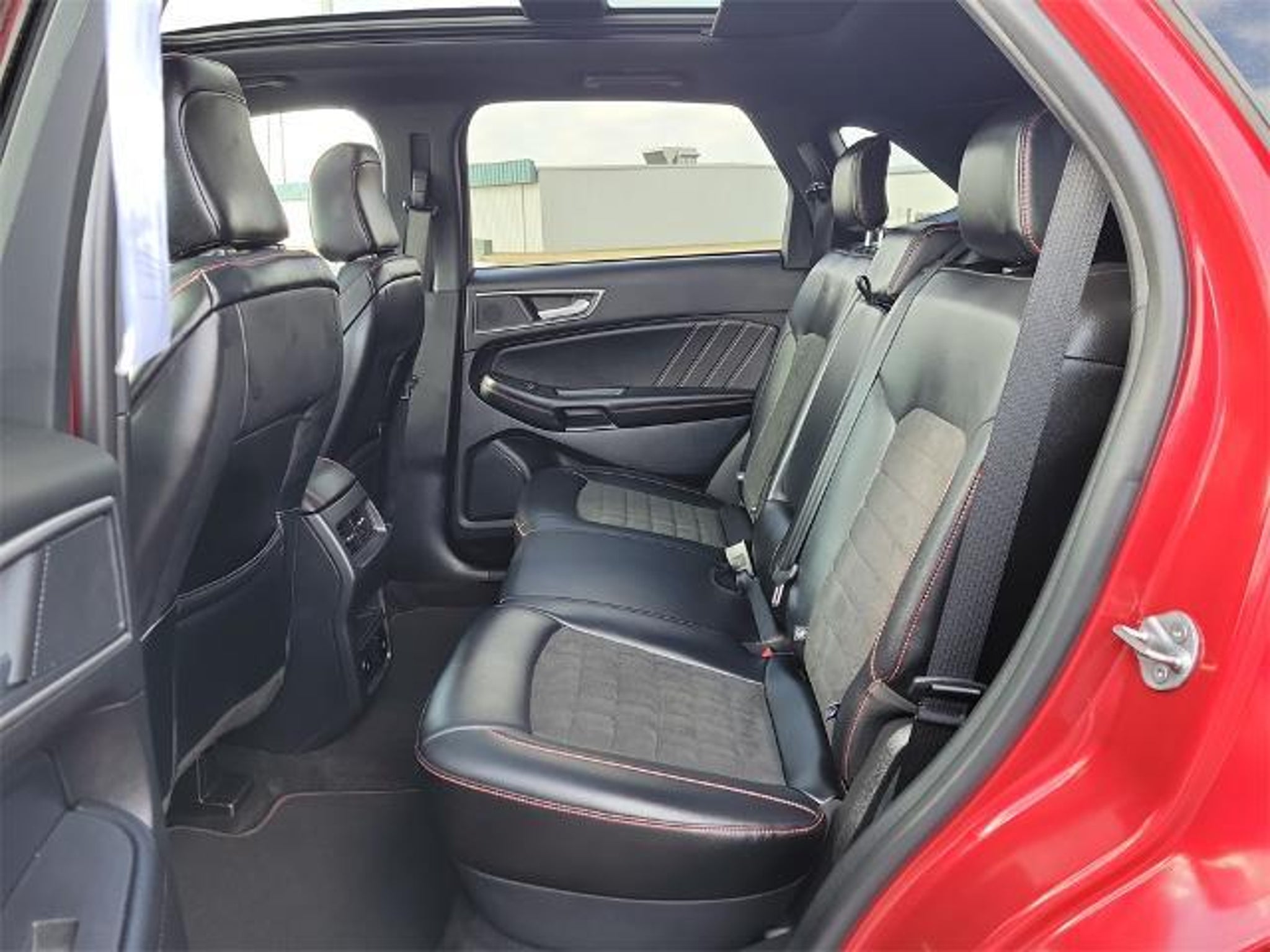 CARFAX One-Owner. Rapid Red Metallic Tinted Clearcoat 2023 Ford Edge ST Line 4D Sport Utility EcoBoost 2.0L I4 GTDi DOHC Turbocharged VCT 8-Speed Automatic AWD BAUMANN AUTO GROUP GENOA - 419.855.8366. We Make Car Buying Fun, Fast, and HASSLE FREE. AWD, Equipment Group 250A, Panoramic Vista Roof, Power Liftgate, 3.80 Axle Ratio, 4-Wheel Disc Brakes, 6 Speakers, ABS brakes, ActiveX Seating Material Heated Bucket Seats, Air Conditioning, Alloy wheels, AM/FM radio: SiriusXM with 360L, Auto High-beam Headlights, Auto-dimming Rear-View mirror, Automatic temperature control, Brake assist, Bumpers: body-color, Compass, Delay-off headlights, Driver door bin, Driver vanity mirror, Dual front impact airbags, Dual front side impact airbags, Electronic Stability Control, Emergency communication system: SYNC 4 911 Assist, FordPass Connect, Four wheel independent suspension, Front & Rear Floor Liners w/Carpet Mats, Front anti-roll bar, Front Bucket Seats, Front Center Armrest w/Storage, Front dual zone A/C, Front fog lights, Front reading lights, Fully automatic headlights, Garage door transmitter, Heated door mirrors, Heated front seats, Heated Steering Wheel, Illuminated entry, Knee airbag, Leather steering wheel, Low tire pressure warning, Occupant sensing airbag, Outside temperature display, Overhead airbag, Overhead console, Panic alarm, Passenger door bin, Passenger vanity mirror, Power door mirrors, Power driver seat, Power passenger seat, Power steering, Power windows, Radio: AM/FM Stereo/MP3 Capable, Rear anti-roll bar, Rear Parking Sensors, Rear reading lights, Rear seat center armrest, Rear window defroster, Rear window wiper, Remote keyless entry, Security system, SiriusXM w/360L, Speed control, Speed-Sensitive Wipers, Split folding rear seat, Spoiler, Steering wheel mounted audio controls, SYNC 4A w/Enhanced Voice Recognition, Tachometer, Telescoping steering wheel, Tilt steering wheel, Traction control, Trip computer, Variably intermittent wipers, Wheels: 20 Premium Gloss Black-Painted Aluminum, AWD, Equipment Group 250A, Panoramic Vista Roof, Power Liftgate.