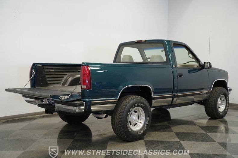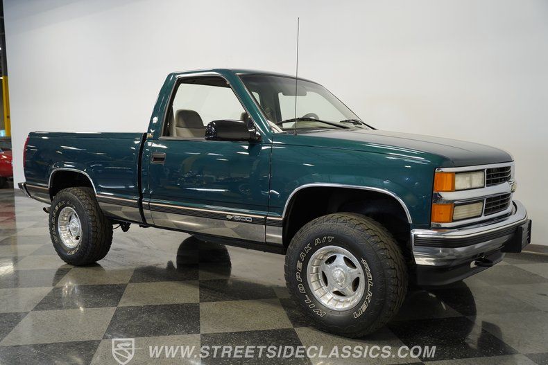 Details > 1995 Chevrolet K1500 Silverado 4X4 For Sale in Mesa, AZ Private Party Sellers Click here to place your ad now! You auta tell them you saw the ad in AutaBuy when you call or email. 1/75 2/75 3/75 4/75 5/75 6/75 7/75 8/75 9/75 10/75 11/75 12/75 13/75 14/75 15/75 16/75 17/75 18/75 19/75 20/75 21/75 22/75 23/75 24/75 25/75 26/75 27/75 28/75 29/75 30/75 31/75 32/75 33/75 34/75 35/75 36/75 37/75 38/75 39/75 40/75 41/75 42/75 43/75 44/75 45/75 46/75 47/75 48/75 49/75 50/75 51/75 52/75 53/75 54/75 55/75 56/75 57/75 58/75 59/75 60/75 61/75 62/75 63/75 64/75 65/75 66/75 67/75 68/75 69/75 70/75 71/75 72/75 73/75 74/75 75/75 View 75 Photos View All Add to My Garage Parked in Your Garage! Streetside Classic Cars Phoenix Call: 480-926-1344 Contact Seller: I would like to: Make Offer Check Availability Ask A Question Request More Photos Check Financing Options Send a copy of this message to me Add this listing to my garage Send to Mobile Exterior Color Green Stock # 4864-PHX Estimated Monthly Payment $383 mo Apply Now J.J. Best Banc & Co. 1995 Chevrolet K1500 Silverado 4X4 Description: New Arrival! Details coming soon! Call 480-926-1344 for more information. Be sure to ask about our services offered; Financing, Vehicle Protection Plan, Insurance, and Transportation to your driveway! Visit Full Video Page · Color: Green Price: $21,995. Exterior Color Green Stock # 4864-PHX Estimated Monthly Payment $383 mo Apply Now J.J. Best Banc & Co. Add to My Garage Parked in Your Garage! Call Seller Message Seller Streetside Classic Cars Phoenix Call: 480-926-1344 Contact Seller: I would like to: Make Offer Check Availability Ask A Question Request More Photos Check Financing Options Send a copy of this message to me Add this listing to my garage Offered for sale by Streetside Classic Cars Phoenix Call 480-926-1344 MESA, AZ Mention AutaBuy.ca when you call. Price: $21,995. Offered for sale by Streetside Classic Cars Phoenix Call 480-926-1344 MESA, AZ Mention AutaBuy.ca when you call. [entire inventory] Ask Auta Intelligence When was this model first introduced? Tell me about this model What factory options were available on this model? What colors did these come in? What makes this model desirable to enthusiasts? What nicknames does this model have? What transmission options did these offer? How many K1500 Silverado 4X4s were produced in Green? What engine options did these come with? What movies featured cars like this? How far is this from me? What's the typical towing capacity in this configuration? Which years was this body style produced? Can you show me more pickups/trucks for a similar price? What trim levels were available for this model? What size tires does this run from the factory? How many of these were produced? Which engines were most common for this year? What makes this model year special? Where is this located? Do you have a similar car to sell? List It Now! Questions about this car? Ask Auta Intelligence for production numbers, available options, etc. · Subscribe to AutaBuy! · Send a Gift Subscription Notice to a Friend