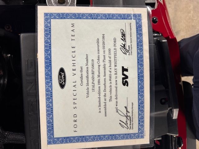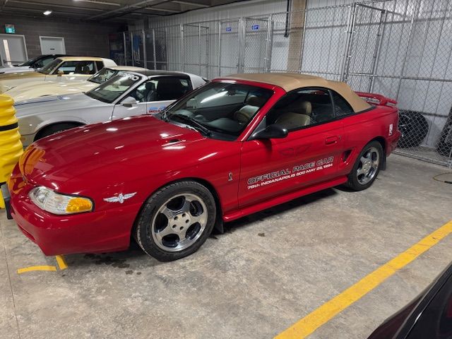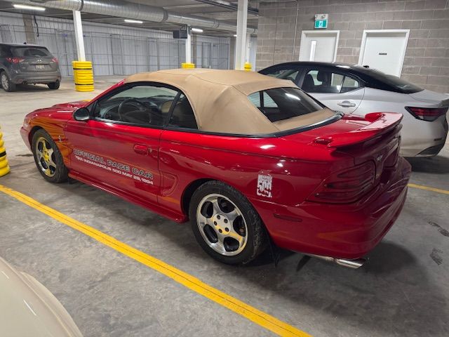 You are looking at a very clean 1994 Mustang Convertible Pace Car. #463 of only 1000 ever built. Originally purchased in Arizona then here to Prince Edward Island Canada where it sits today in a climate controlled garage. Only 25,677 original miles. This car is super clean inside out and everything still shifts and clicks like new. Clean Carfax. Finished and it’s beautiful Rio Red with a Saddle Brown leather interior.