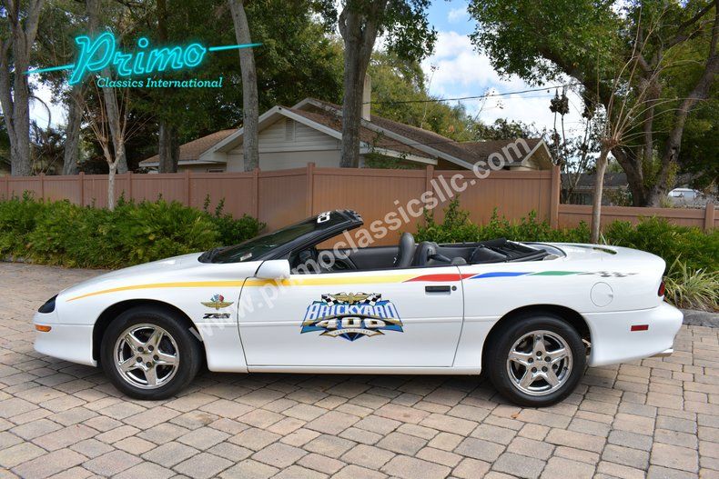 Iconic 1997 Chevrolet Camaro Z28 Brickyard 400 Festival Car :: A beautiful example of only 50 produced! This distinguished vehicle is a true testament to the spirit of American muscle featuring a striking white exterior that beautifully complements its grey leather interior Under the hood you'll find a robust 5.7 Liter V8 engine, automatic transmission offering a driving experience that is both powerful and smooth. This Camaro is equipped with a range of features designed to enhance your driving comfort and convenience. The air conditioning system ensures a pleasant cabin environment while the automatic convertible top allows you to enjoy open-air driving at the touch of a button. The aluminum wheels not only add to the vehicle's aesthetic appeal but also contribute to its performance. For your entertainment needs, the vehicle includes an AM/FM radio, a cassette tape player CD player providing multiple options for enjoying your favorite tunes on the road. Safety and control are prioritized with features such as anti-lock brakes, traction control, both driver and passenger airbags, The inclusion of seatbelts and a tilt steering wheel further enhances the safety and comfort of your driving experience. Convenience is at the forefront with power features including power brakes, power locks, power seats, power steering, power windows, The radial tires ensure a smooth ride while the cruise control feature provides ease during long journeys. Florida Car and Clean CarFax This 1997 Chevrolet Camaro Z28 Brickyard 400 Festival Car is a remarkable blend of performance style, and comfort, making it a standout choice for enthusiasts and collectors alike. For more information call (Danny) 863-944-8755, (Monica) 863-333-8286, (Jacob) 863-899-1565, (Dan) 863-226-8590 or email sales1@primoclassicsint.com