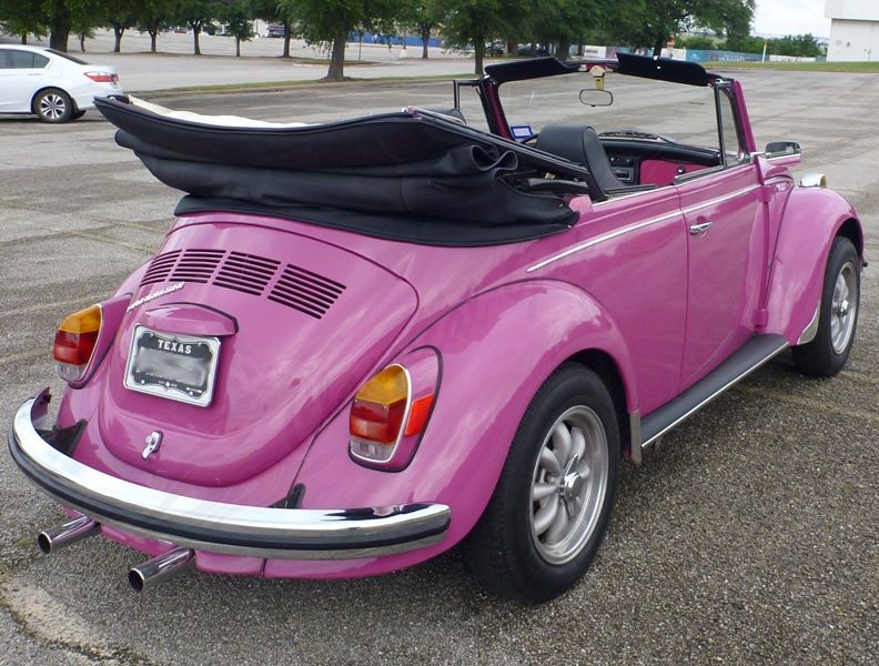 Back in the 30s only 1 person out of 50 in Germany owned a vehicle. They really couldn't afford anything more elaborate than a motorcycle. Well to rectify that, in 1937, the German Labour Group introduced the iconic Volkswagen or in German..."The Peoples Car." These cars proved to be very popular, so much so that they are still being made today. Although their models have expanded to other names like the Golf, Passat, etc the Beetle is one of the most widely recognized cars throughout history. There are entire clubs dedicated to preserving their history and even children can point them out while playing "Slug Bug" or "Punch Buggy." To commemorate passing the Ford Model T's records sales Volkswagen introduced their first limited edition car known as the Super Beetle. This 1971 Volkswagen is one of those Super Beetles and is a really neat car. The current owner has owned the car for 6 years and the owner prior to that had it for 10. Both are in Texas and prior to that it was in California. It gets a ton of attention with its slick Pink paint paired with a Black convertible top. The cloth top is in great shape, has a glass rear window and it does come with a matching boot. It wears its stock chrome bumpers, chrome side trim, chrome fender guards, chrome mirrors, chrome headlight buckets and chrome turn signals. The glass throughout is all in good shape with no issues. The car rides on the Empi 8 spoke wheels with with custom chrome spinner caps.