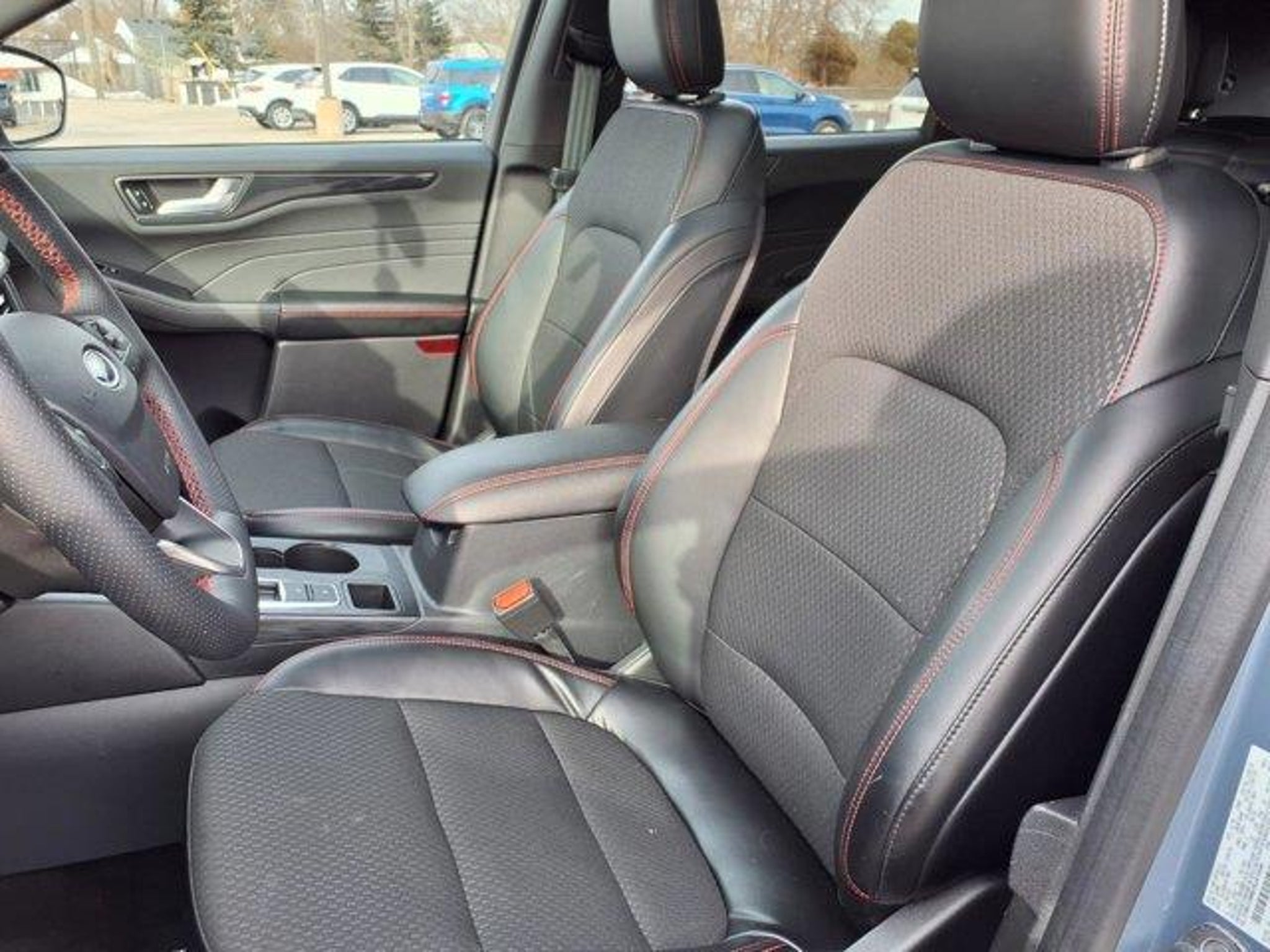 PANORAMIC VISTA ROOF $1,595.00 COLD WEATHER PACKAGE .HEATED STEERING WHEEL .MIRROR-PWR/HTD GLASS .REMOTE START SYSTEM .HEATED FRONT ROW SUPPLEMENTAL PTC HEATER TECH PACKAGE #1 $995.00 .EVASIVE STEERING ASSIST .CONNECTED NAV .LANE CENTERING ASSIST .REAR PARKING SENSORS .INTLGNT ADP SPEED CONTROL .13.2 TOUCHSCREEN This 2024 Ford Escape ST-Line is a certified pre-owned vehicle with low mileage of 10,101 miles. It has an all wheel drive, 1.5 liter EcoBoost Turbo I3 180hp 199 lb-ft engine, direct injection, and a vapor blue (k1) exterior. It also has an ebony w/red stitching (hm) interior and a crash test rating of 5 out of 5 stars. This vehicle also comes with many features such as touch screen display, Bluetooth audio connection, blind spot sensor, hill start assist, on demand four wheel drive, Bluetooth phone connectivity, and more. With its impressive fuel economy of 26 mpg in city and 32 mpg on highway, this car is sure to be a great choice for anyone looking for an efficient ride. Call Bill Brown Ford Pre-owned at (734) 522-0030 to confirm availability and schedule a no-obligation test drive!