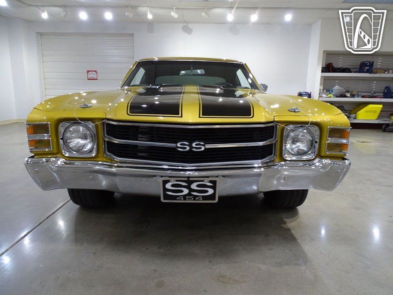 Experience this car from our STL Location... Step into the driver's seat of this stunning 1971 Chevrolet Chevelle 454 SS, a true icon of American muscle car history. Dressed in a striking Gold exterior that gleams under the sunlight, this Chevelle commands attention wherever it goes. The bold lines of its classic design are complemented by sleek Aluminum Wheels, giving it a timeless yet aggressive stance that hints at the power waiting under the hood. As you open the door, you're greeted by a Black leather interior that exudes both comfort and style. The seats are supportive yet inviting, making every drive feel like an occasion. The manual transmission sits within easy reach, ready to connect you to the raw power of the V8 engine. With every shift, you'll feel the surge of energy that makes this car a legend on the road. Cruising down the highway, the Air Conditioning keeps the cabin cool, allowing you to enjoy the ride no matter the weather. The Power Steering ensures effortless handling, making it easy to navigate winding roads or city streets. As you settle into the rhythm of the drive, the sound system, complete with a CD Player, fills the cabin with your favorite tunes, enhancing the experience and making every mile more enjoyable. Safety is always a priority, and this Chevelle comes equipped with seatbelts to give you peace of mind as you take in the thrill of the open road. Whether you're out for a leisurely weekend drive or heading to a car meet to share your passion with fellow enthusiasts, this 1971 Chevrolet Chevelle 454 SS delivers an unforgettable experience. It's not just a car-it's a statement, a piece of history, and a joy to drive. This 1971 Chevrolet Chevelle can be seen in detail - including 100+ HD photos and video - at GatewayClassicCars.com. This vehicle can be viewed in person at the St. Louis Showroom located at 1237 Central Park Drive, O'Fallon IL 62269.