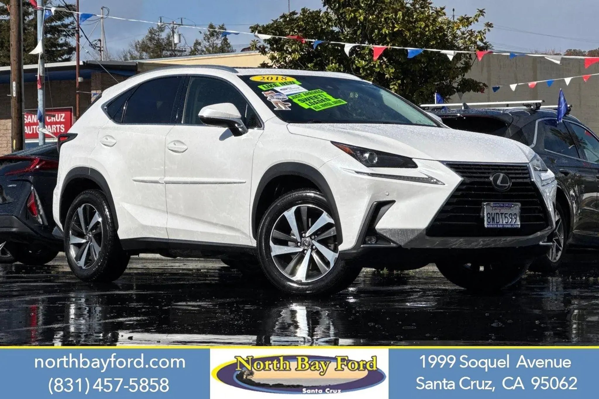 Why Buy from North Bay Ford? When you choose this certified 2018 Lexus NX 300 from North Bay Ford|you're not just buying a used car - you're investing in quality, reliability, and peace of mind. Located in Santa Cruz,CA|we're proud to offer the best selection of certified pre-owned Lexusvehicles and top-tier used cars in our local market. Ford Blue Certified Details: 139 Point Inspection Warranty Deductible: $100 Limited Warranty: 3 Month/4,000 Mile (whichever comes first) after new car warranty expires or from certified purchase date * Roadside Assistance * Transferable WarrantyFord Gold Certified Details: Powertrain Limited Warranty: 84 Month/100,000 Mile (whichever comes first) from original in-service date. Transferable Warranty Limited Warranty: 12 Month/12,000 Mile (whichever comes first) after new car warranty expires or from certified purchase date. Roadside Assistance. 172 Point Inspection Warranty Deductible: $100 Premium Package ($3,270 value) Blind Spot Monitor with Rear Cross Traffic Alert 18 X 7.5 Wheels High Clearance Lamp Heated and Ventilated Front Seats Driver's Seat Memory Electrochromic Mirrors Power Tilt and Telescopic Steering Column Power Tilt and Slide Moonroof/sunroof Navigation System Package ($1,800 value) Lexus Enform Destination Assist Lexus Insider Lexus Enform App Suite 2.0 SD Navigation System 2 Additional Speakers EMINENT WHITE PEARL, BLACK, LEATHER SEAT TRIM Safety and Security Forward collision mitigation - Forward thinking. You look away for just a second and suddenly the vehicle in front of you has stopped. That's when the forward collision mitigation system comes to life. When it senses an impending impact, it will activate a combination of features to help prevent or reduce the severity of an accident. Forward collision mitigation is always looking ahead. Forward collision mitigation - Forward thinking. You look away for just a second and suddenly the vehicle in front of you has stopped. That's when the forward collision mitigation system comes to life. When it senses an impending impact, it will activate a combination of features to help prevent or reduce the severity of an accident. Forward collision mitigation is always looking ahead. Pedestrian impact prevention - An extra step toward safety. Pedestrians don't always stop, look, and listen, but with Pedestrian Impact Prevention, your vehicle is equipped to better see them and avoid them. This system constantly monitors the road ahead to identify and track pedestrians. It projects that image to an interior display screen, AND should an impact become likely, Pedestrian impact prevention takes steps to avoid a collision. Pedestrian impact prevention - An extra step toward safety. Pedestrians don't always stop, look, and listen, but with Pedestrian Impact Prevention, your vehicle is equipped to better see them and avoid them. This system constantly monitors the road ahead to identify and track pedestrians. It projects that image to an interior display screen, AND should an impact become likely, Pedestrian impact prevention takes steps to avoid a collision. Technology and Telematics Mobile hotspot - WiFi on the fly. Connect your devices to the Internet through your vehicle's private mobile hotspot and take the internet wherever your journey takes you, without eating up your data allowance. Find the hotspot with mobile hotspot. Ready to drive home this 2018 Lexus NX 300 today at North Bay Ford or Call us at to schedule your visit. Don't miss out - at this price $23,125 it won't last long!