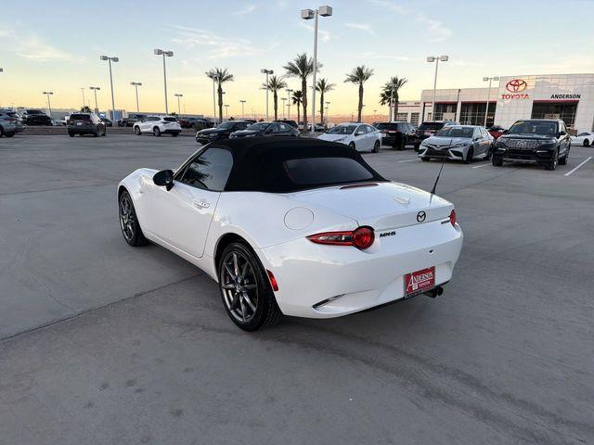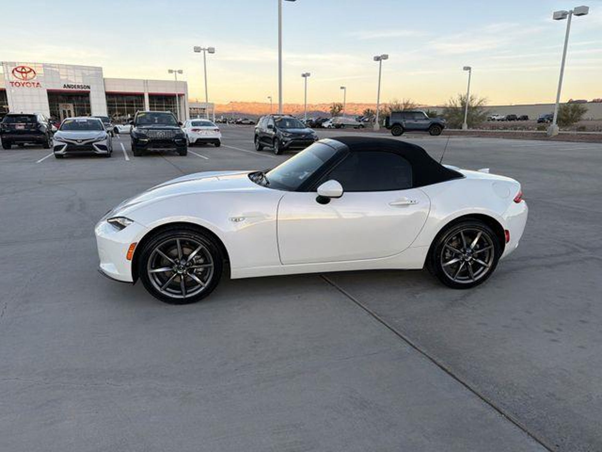 Experience pure driving enjoyment in this Mazda MX-5 Miata Grand Touring! Few cars capture the essence of lightweight, rear-wheel-drive performance like the Miata, and this Grand Touring model elevates that formula with premium comfort and advanced technology. Its Snowflake White Pearl Mica paint highlights this car's flowing body lines, low stance, and perfectly balanced proportions, while the black interior creates a purposeful cockpit designed entirely around the driver. Under the hood, the responsive 2.0L SKYACTIV-G inline-four engine provides lively acceleration and a broad powerband that rewards every shift and throttle input. Paired with rear-wheel drive and near-perfect weight distribution, this MX-5 Miata maintains precise steering feedback and nimble cornering capability. The suspension is tuned for agility without sacrificing everyday drivability, giving the car a connected feel to the road that enthusiasts appreciate. Every curve becomes an invitation to engage with the chassis, and every straightaway highlights the engine's smooth pull through the rev range. Inside, the Grand Touring trim enhances the driving environment with upscale touches and thoughtful ergonomics. The black interior features supportive, well-bolstered seats that hold you comfortably in place during spirited driving while remaining comfortable for longer trips. Heated seats add comfort during cooler weather, and automatic climate control maintains a consistent cabin temperature. The driver-focused layout places the leather-wrapped steering wheel, shift knob, and pedals exactly where they should be, reinforcing this Miata's reputation as a true driver's car. Technology is seamlessly integrated without overwhelming the minimalist cabin design. The Mazda Connect infotainment system features a crisp display controlled by a rotary commander dial for intuitive operation. Apple CarPlay and Android Auto compatibility keep navigation, calls, and music easily accessible. A premium Bose audio system enhances the open-top driving experience, engineered to project clear sound even with the top down. The power retractable soft top is simple to operate, allowing you to transition from coupe-like quiet to open-air freedom in seconds. With the top lowered, the Miata's connection to the road and surroundings becomes even more immersive, amplifying the sensation of speed and control. Despite its compact dimensions, the cabin is intelligently designed to maximize space and comfort for both driver and passenger, while the trunk provides enough room for weekend getaways or daily essentials. This 2021 Mazda MX-5 Miata Grand Touring captures the timeless appeal of a lightweight roadster combined with modern amenities and thoughtful engineering. It is a car built for those who value precision, balance, and the simple joy if driving! Visit Anderson Toyota today or give our friendly sales staff a call to schedule your test drive, . WHY BUY FROM ANDERSON: All Anderson pre-owned vehicles include a 3-month or 3,000 mile powertrain limited warranty and one-year/15,000 mile (whichever occurs first) vehicle maintenance plan when the vehicle is serviced at an Anderson Auto Group dealership. Out of town customers will be accommodated with free shuttle service from Las Vegas and Phoenix airports and if an overnight stay is needed, discounted nightly rates are available from local hotels. We welcome you to come in and enjoy a positive buying experience and look forward to you joining the Anderson family of customers. DISCLAIMER: Prices, options, specifications and images shown are subject to certain qualifications and availability. Pricing information is not final and may not include taxes, registration, finance and purchase fees. Please confirm vehicle availability and pricing information by calling us at or emailing our internet sales department at . Some exclusions apply, see store for details.