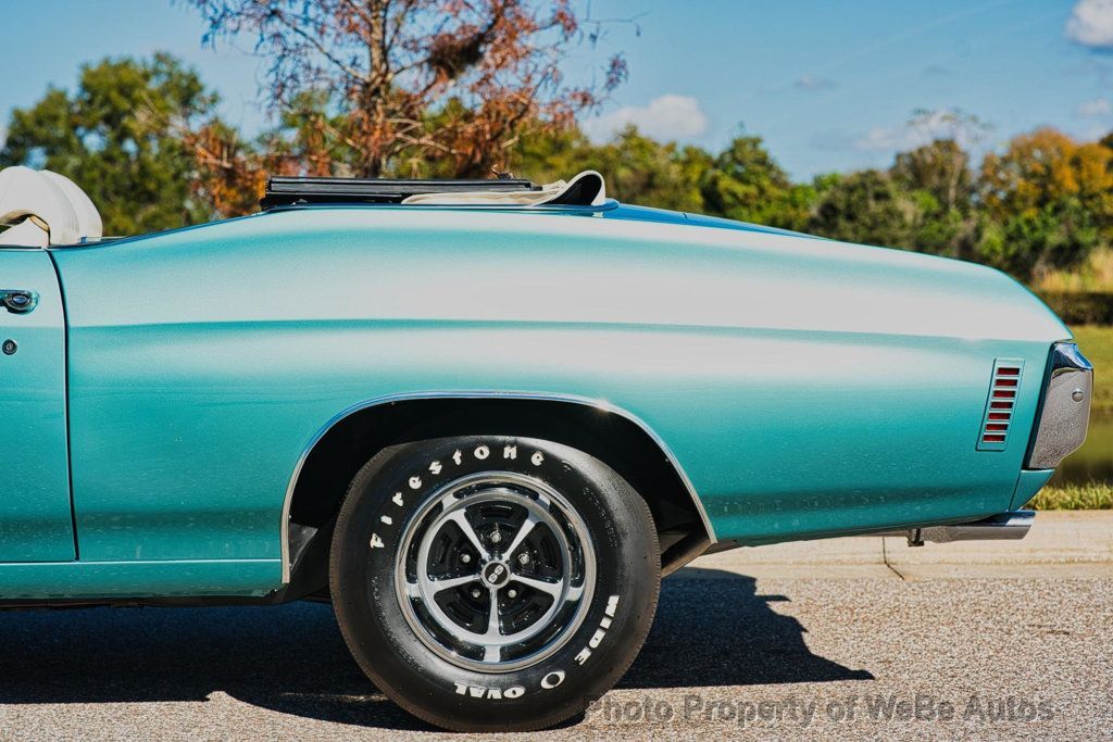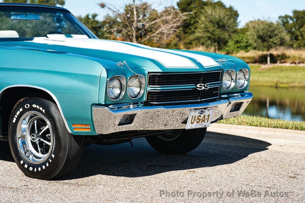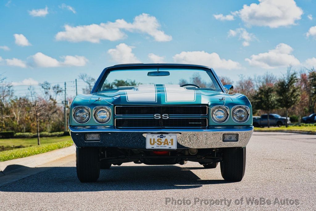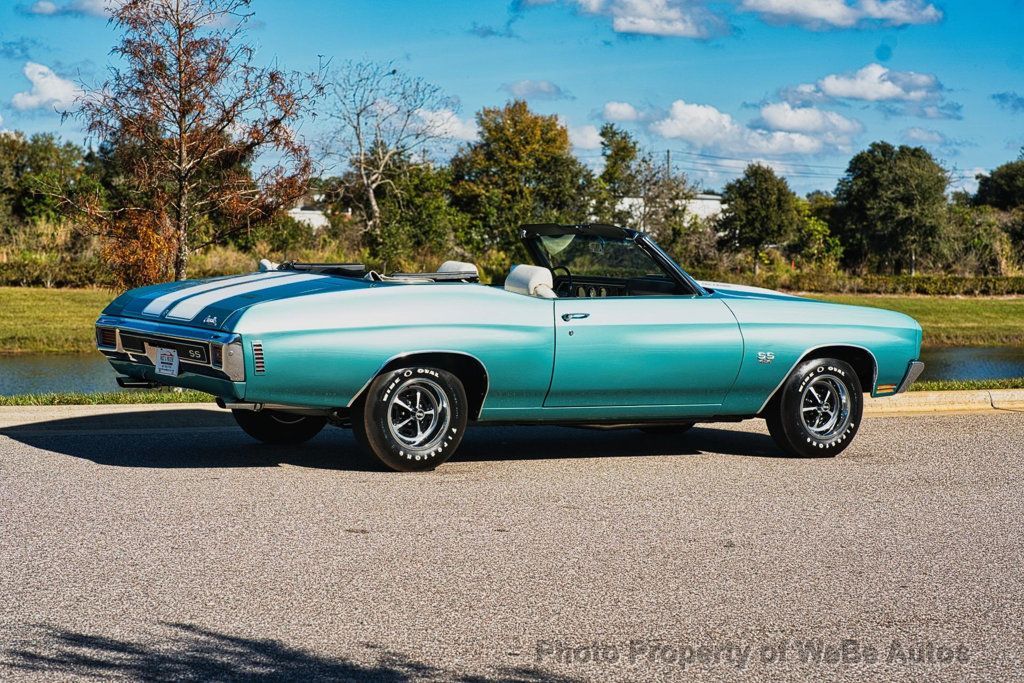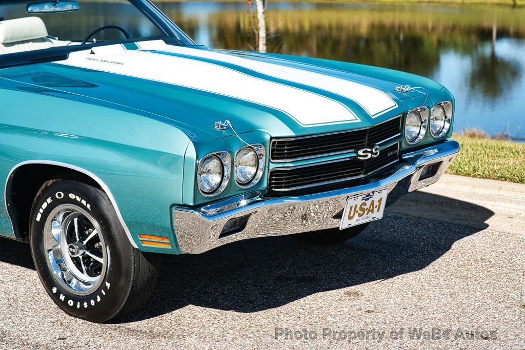 This 1970 Chevrolet Chevelle SS LS6 Convertible is an exceptionally restored example of one of the most iconic muscle cars ever produced. Finished in striking Misty Turquoise with white SS stripes, a white power convertible top, and an ivory/white bucket seat interior, this Chevelle delivers jaw-dropping presentation and unmistakable presence. The car has undergone a very high-end restoration with extensive attention to detail. Importantly, it retains all original sheet metal and original floor pans, a significant factor for collectors and restorers alike. Countless hours were invested to achieve a level of finish that reflects a show-quality execution. This Chevelle is equipped exactly as an LS6 should be and is believed to have been born as an LS6 car. However, there is no build sheet available to further authenticate its original configuration. During the restoration process, the LS6 512 casting engine block received a restoration restamp. These details are disclosed transparently for informed collectors and enthusiasts. Power is delivered through a 4-speed manual transmission, providing the raw, engaging driving experience that made the LS6 Chevelle legendary. The car features a functional cowl induction hood, factory smog equipment, tachometer and gauge package, bucket seats with center console, and the desirable F41 suspension package. Rolling on correct 14-inch SS wheels wrapped in Firestone Wide Oval tires, the stance and overall appearance remain period-correct and purposeful. The white interior and top contrast beautifully against the Misty Turquoise paint, creating one of the most attractive color combinations available in 1970. This is a no-expense-spared restoration of an incredibly desirable Chevelle Convertible, executed with care, accuracy, and pride. It represents a rare opportunity to acquire a stunning LS6-spec Chevelle that delivers visual impact, mechanical presence, and top-tier craftsmanship ready for show, collection, or careful enjoyment. While we do our best to provide the highest quality muscle cars with an honest and reliable description and realize the importance of transparency when selling vehicles. That being said, we have not built, modified, changed or personally owned this vehicle. Whether this vehicle is consigned or owned by Past & Present Motor Cars we do not know the vehicles complete history since new. We want to be clear and try to answer any questions our customers might have prior to purchasing. Additionally, we not only welcome but we encourage 3rd party independent inspections. Please inquire prior to purchase to make sure the advertised vehicle has not already been sold. We list our vehicles on multiple websites and a vehicle can sell at any time. If a customer chooses to purchase sight unseen (many of our customers choose this option) the customer accepts the vehicle AS IS and WHERE IS and understands we cannot address concerns after purchase. For this reason, it's important all concerns are addressed prior to purchase. We make every effort to present accurate and reliable information, but use of this information is voluntary, and should only be deemed reliable after an independent review of its accuracy, completeness, and timeliness. It is the sole responsibility of the customer to verify the existence of options, accessories and the vehicle condition before time of sale. Financing is Available with low rates and Vehicle Shipping is available from our Showroom to your Garage. A Classic Car Warranty is Available for Purchase from a 3rd Party. Please speak to our Sales Associate or Company Representative for more information. Our team is working and available anytime by Phone or Text for your convenience at 407-559-7759. Thank you for your interest! WeBe Autos Specializes in Marketing and Advertising Muscle, Classic, Vintage and Specialty Cars. We offer Professional Photography, HD Movies, and Staging that Sells Cars. Let us showcase and sell your specialty car. Please visit our website for more details. Keep in Touch, Michael Runnalls Specialty Car Marketing & Media WeBe Autos Ltd. Long Island, NY 11780 Michael@WeBeAutos.com www.WeBeAutos.com (O)631-339-0399 (C)516-729-2003 Skype: webeautos (F)631-389-2605 - - - Contact Michael Runnalls at 631-339-0399 or Michael@WeBeAutos.com for more information. -