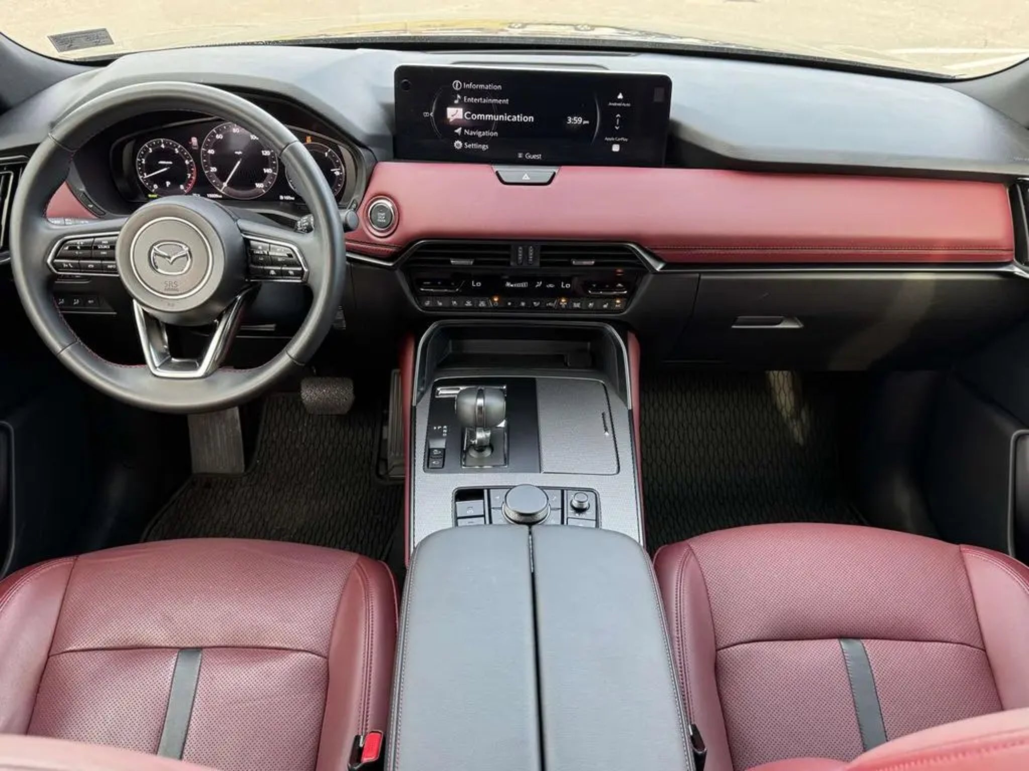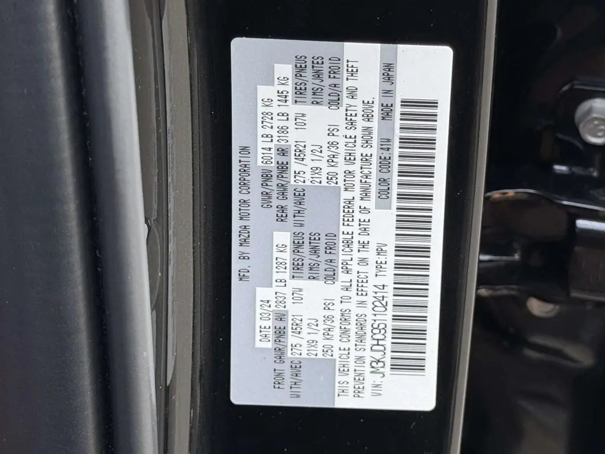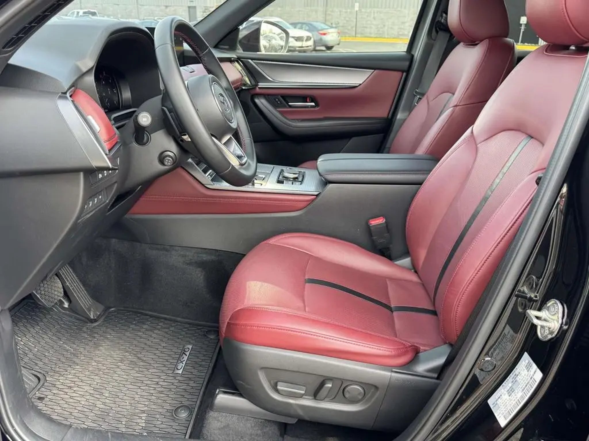 Certified. Jet Black Mica 2025 Mazda CX-70 3.3 Turbo S Premium AWD 8-Speed Automatic I6 Turbo 12 Speakers, AM/FM radio: SiriusXM, Auto High-beam Headlights, Auto-dimming door mirrors, Front dual zone A/C, Garage door transmitter: HomeLink, Heads-Up Display, Heated steering wheel, Heated/Ventilated Front Bucket Seats, Memory seat, Nappa Leather Seat Trim, Navigation system: MAZDA CONNECT, Power driver seat, Power Liftgate, Power moonroof, Rain sensing wipers, Remote keyless entry, Wheels: 21 x 9.5J Aluminum Alloy. 23/28 City/Highway MPG Mazda Certified Pre-Owned Details: * Roadside Assistance * Warranty Deductible: $0 * Transferable Warranty * Powertrain Limited Warranty: 84 Month/100,000 Mile (whichever comes first) from original in-service date * 160 Point Inspection * Includes Autocheck Vehicle History Report with 3 Year Buyback Protection. 3 month SiriusXM trial subscription. * Vehicle History * Limited Warranty: 12 Month/12,000 Mile (whichever comes first) after new car warranty expires or from certified purchase date