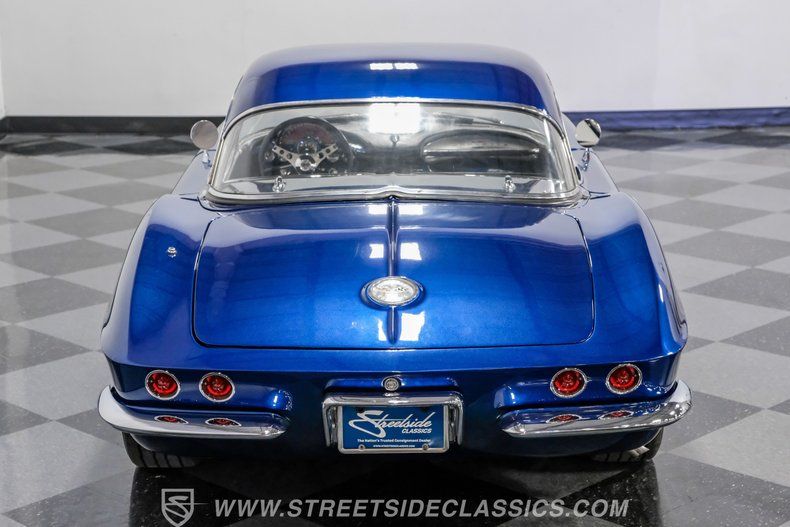 Throughout the Corvette's eight generations, each one has its own special years and models. For the first generation, beyond its inaugural year, it can be argued that this 1961 Chevrolet Corvette Restomod represents the most visually impactful year in this sports car's history. Decked out in this spectacular Lemans Blue with white coves, complete with a body-color removable fiberglass hardtop and a complementing white vinyl soft top, the polished five-spoke 15-inch Billet Specialty wheels give this car a stance unlike most other classics. This year, Corvette can be identified by its three-louver side vent moldings, and most notably, 1961 is the first year Chevy gave its halo car its now-signature quad taillight setup.