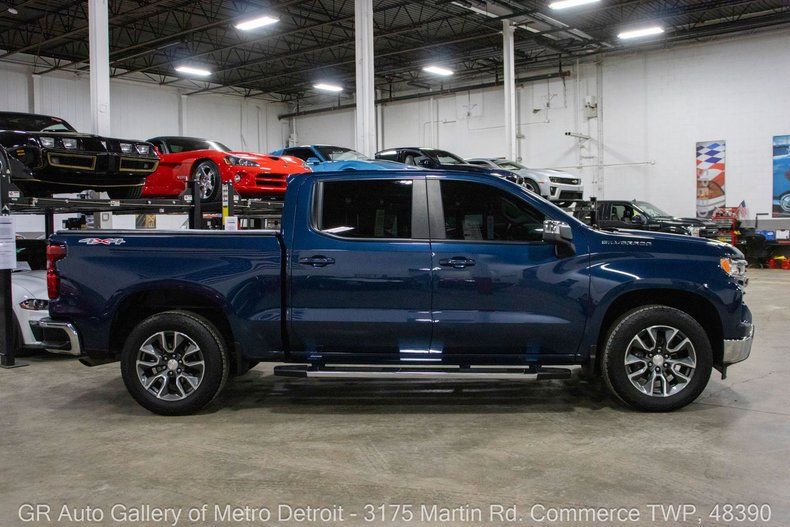 GR Auto Gallery is pleased to present this 2023 Chevrolet Silverado LT for your consideration. This Silverado comes finished in stunning Northsky Blue Metallic over a clean Jet Black interior and has been well cared for with just 35,083 miles on the odometer. Powering this truck is the impressive 2.7L Inline 4 Turbo High Output engine paired with an 8-speed automatic transmission, delivering a strong balance of performance and efficiency. This Silverado is nicely equipped with lane keep assist, an HD rear vision camera, tire pressure monitoring system, a massive 13.4-inch diagonal HD color touchscreen AM/FM stereo with Android Auto and Apple CarPlay capability, dual-zone climate control, powered windows, front heated seats, under-seat storage, and a 10-way power driver seat. Additional highlights include a heated and wrapped steering wheel with audio controls, side steps, 20-inch aluminum wheels, and an EZ Lift power lock and release tailgate, along with many other modern comfort and convenience features. Drive this one out of our showroom or have us assist with shipping it to you anywhere in the United States! Don't hesitate to call us with any questions or for more information.