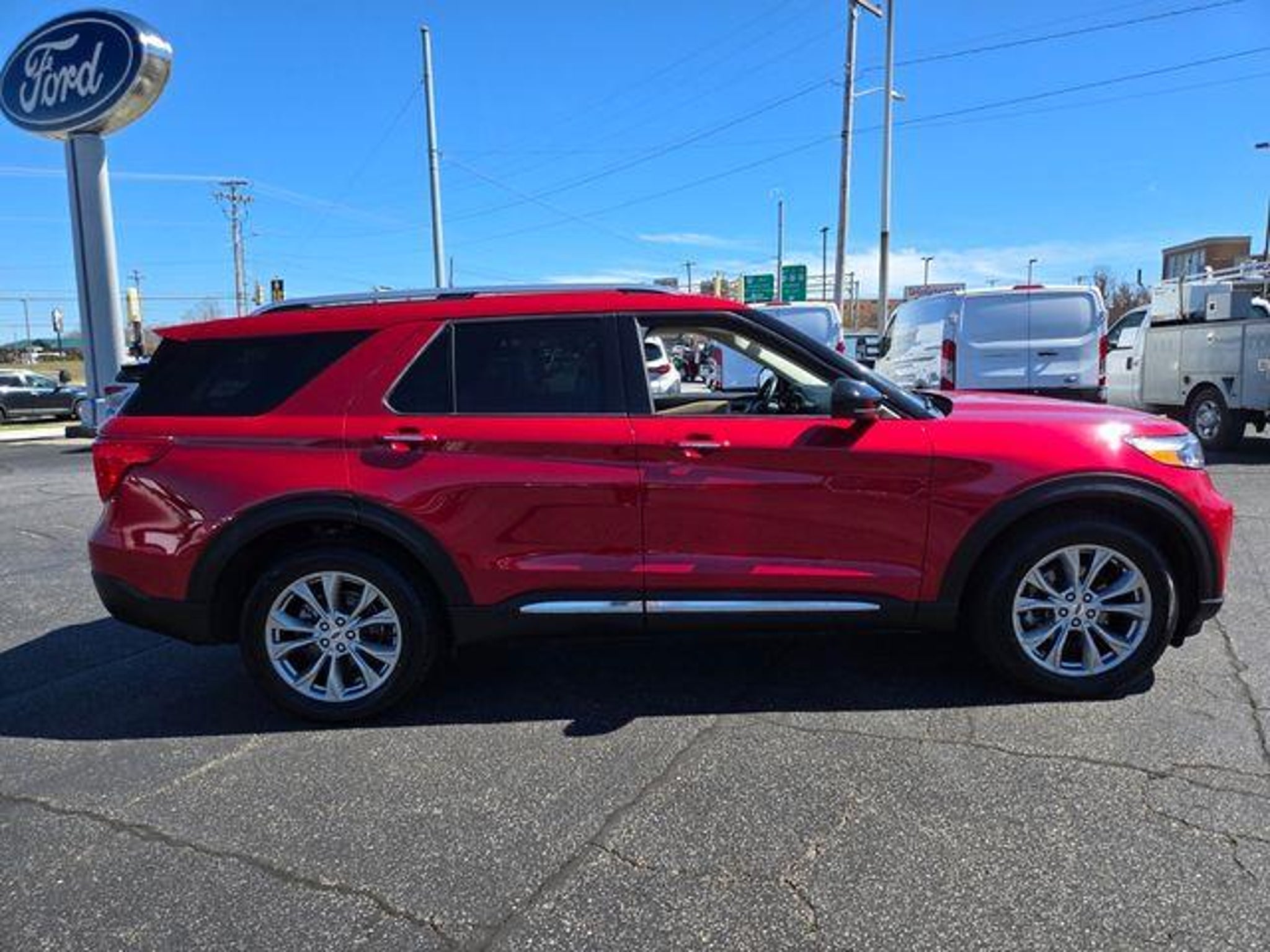 Red Metallic 2023 Ford Explorer Limited 4WD 10-Speed Automatic 2.3L EcoBoost I-4 4WD, 12 Speakers, 20 Premium Painted Aluminum Wheels, 2nd Row 35/30/35 Bench w/E-Z Entry & Armrest, 3.58 Non-Limited-Slip Rear Axle Ratio, 360-Degree Camera Credit, 3rd row seats: bench, 4-Wheel Disc Brakes, 4G LTE Wi-Fi Hotspot Credit, ABS brakes, Air Conditioning, Alloy wheels, AM/FM radio: SiriusXM, Auto High-beam Headlights, Auto-dimming Rear-View mirror, Automatic temperature control, Brake assist, Bumpers: body-color, Compass, Delay-off headlights, Driver door bin, Driver vanity mirror, Dual front impact airbags, Dual front side impact airbags, Electronic Stability Control, Emergency communication system: SYNC 3 911 Assist, Equipment Group 300A, Exterior Parking Camera Rear, FordPass Connect, Four wheel independent suspension, Front anti-roll bar, Front Bucket Seats, Front Center Armrest, Front dual zone A/C, Front fog lights, Front reading lights, Fully automatic headlights, Garage door transmitter, Heated door mirrors, Heated front seats, Heated rear seats, Heated steering wheel, Illuminated entry, Knee airbag, Leather Heated/Ventilated Captain's Chairs, Leather steering wheel, Low tire pressure warning, Navigation System, Occupant sensing airbag, Outside temperature display, Overhead airbag, Overhead console, Panic alarm, Passenger door bin, Passenger vanity mirror, Power door mirrors, Power driver seat, Power Liftgate, Power passenger seat, Power steering, Power windows, Radio data system, Radio: B&O Sound System by Bang & Olufsen, Rain sensing wipers, Rear air conditioning, Rear anti-roll bar, Rear reading lights, Rear window defroster, Rear window wiper, Remote keyless entry, Roof rack: rails only, Security system, Speed control, Speed-sensing steering, Speed-Sensitive Wipers, Split folding rear seat, Spoiler, Steering wheel mounted audio controls, SYNC 3 Communications & Entertainment System, SYNC 3/Apple CarPlay/Android Auto, Tachometer, Telescoping steering wheel, Tilt steering wheel, Traction control, Trip computer, Variably intermittent wipers, Ventilated front seats, Voice-Activated Touchscreen Navigation System, 4WD. At Nelson Ford, we take pride in offering a high quality vehicles to fit every need and budget. We offer the full lineup of new Ford inventory along with around 400 hand-picked pre-owned vehicles that have been carefully inspected to ensure reliability, performance, and value. Whether you are looking for a dependable truck, a family friendly SUV, or an efficient sedan, our team is here to help