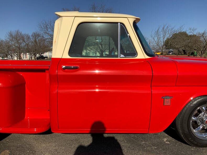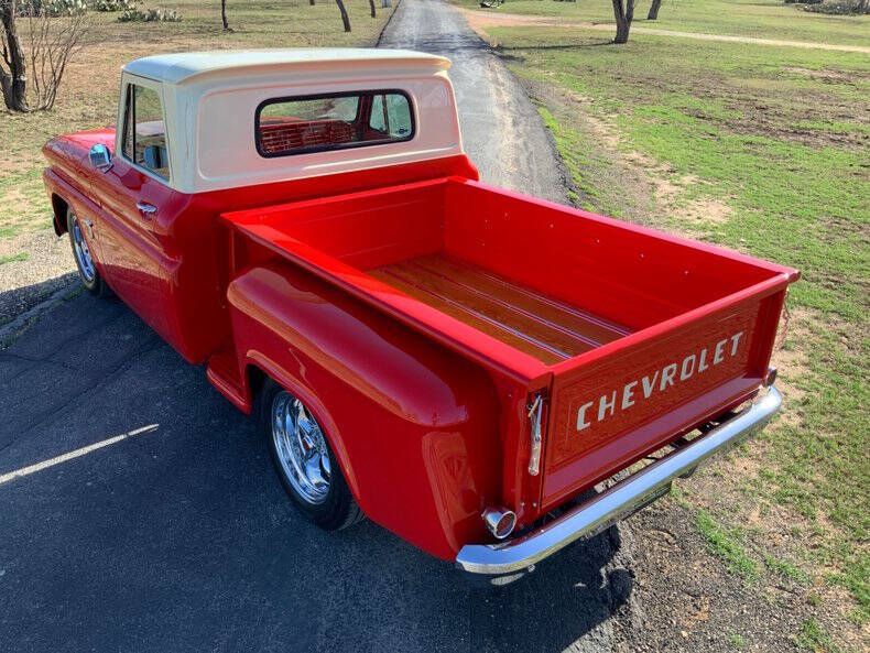 Street Dreams Texas was founded in September 1999 and has spent the last 27 years delivering exceptional classic cars and trucks to enthusiasts worldwide. We are proud to present one of the most meticulously restored C10s to pass through our showroom - a true nut-and-bolt, show-quality build that reflects extraordinary craftsmanship from top to bottom. Built in June 1964 at the St. Louis assembly plant, this C10 comes with impressive documentation, including build photos detailing the extensive restoration. Originally sold in Waco and later discovered as a cab in Hico, this truck has been transformed into a high-end custom that would be right at home on the show field. Under the hood sits a Blueprint Engines 350ci V8 topped with a Holley Street Demon carburetor, Edelbrock intake, and Mooneyes valve covers and air cleaner - a combination that delivers strong, reliable performance with a detailed engine bay presentation. Cooling is handled by a US Radiator unit, while shifting duties are managed by a highly upgraded Extreme Automatics TH200-4R transmission featuring a documented TransGo street/strip shift kit. The chassis has been thoroughly upgraded using Performance Online components, including tubular upper and lower A-arms, tubular engine stands, and a front sway bar. Handling and stopping power are exceptional thanks to Western Chassis drop spindles, front disc brakes, and Cadillac rear disc brakes. Out back you'll find a stout 12-bolt rear end with 3.42 posi, Eaton posi unit from Quick Performance, and Moser 31-spline axles. Visually, the truck is absolutely stunning. The Viper Red and Campus Cream exterior is show-quality and beautifully accented by hand-applied pinstriping by Mike Summers. Nearly every component that could be powder coated has been, underscoring the no-expense-spared approach. The bed features gorgeous white oak wood, perfectly complementing the deep red finish. All sheet metal including the bed, tailgate, steps, and fenders is new, providing laser-straight body lines throughout. Inside, the luxury theme continues. The cabin is trimmed by Ed's Auto Trim and features rich red carpeting from SMS Fabrics, Vintage Air A/C, a Red Head power steering box, and an Ididit 8-position tilt column. Entertainment comes via a Retro Manufacturing Bluetooth-capable digital radio, blending classic looks with modern convenience. The truck sits just right on American 5-Spoke Chrome Mag wheels wrapped in Falken Sincera SN250 A/S tires (215/70R16), giving it an upscale performance stance. This is truly a top-tier C10 build - the kind of truck that draws crowds, wins awards, and satisfies even the most particular classic truck enthusiast. With extensive documentation and exceptional attention to detail throughout, it represents a rare opportunity to own a professionally built show-quality pickup. Street Dreams Texas can assist with worldwide delivery, insurance, and financing options. Contact us today at (830) 997-1950 to make this stunning C10 yours.
