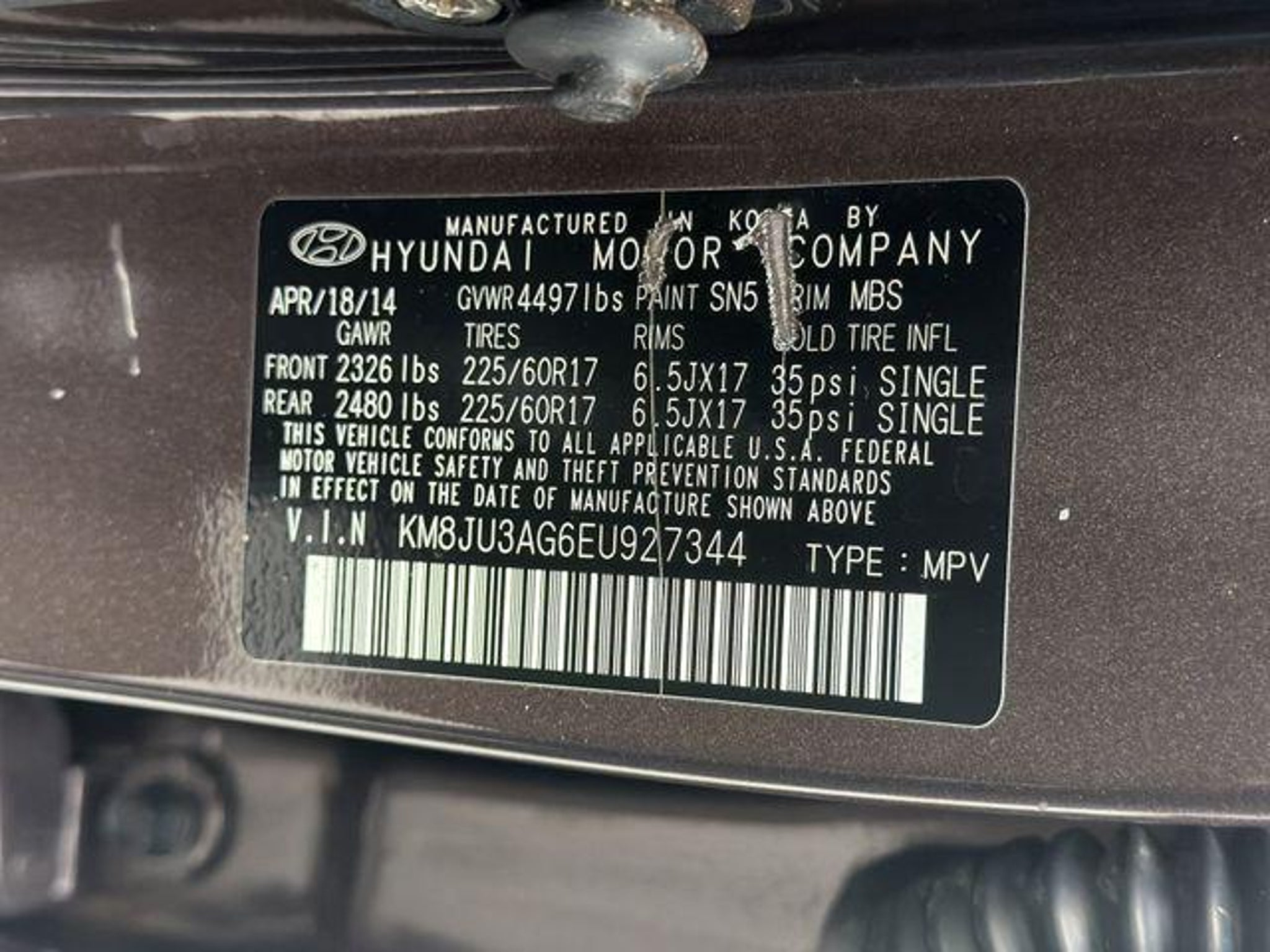 VIN KM8JU3AG6EU927344