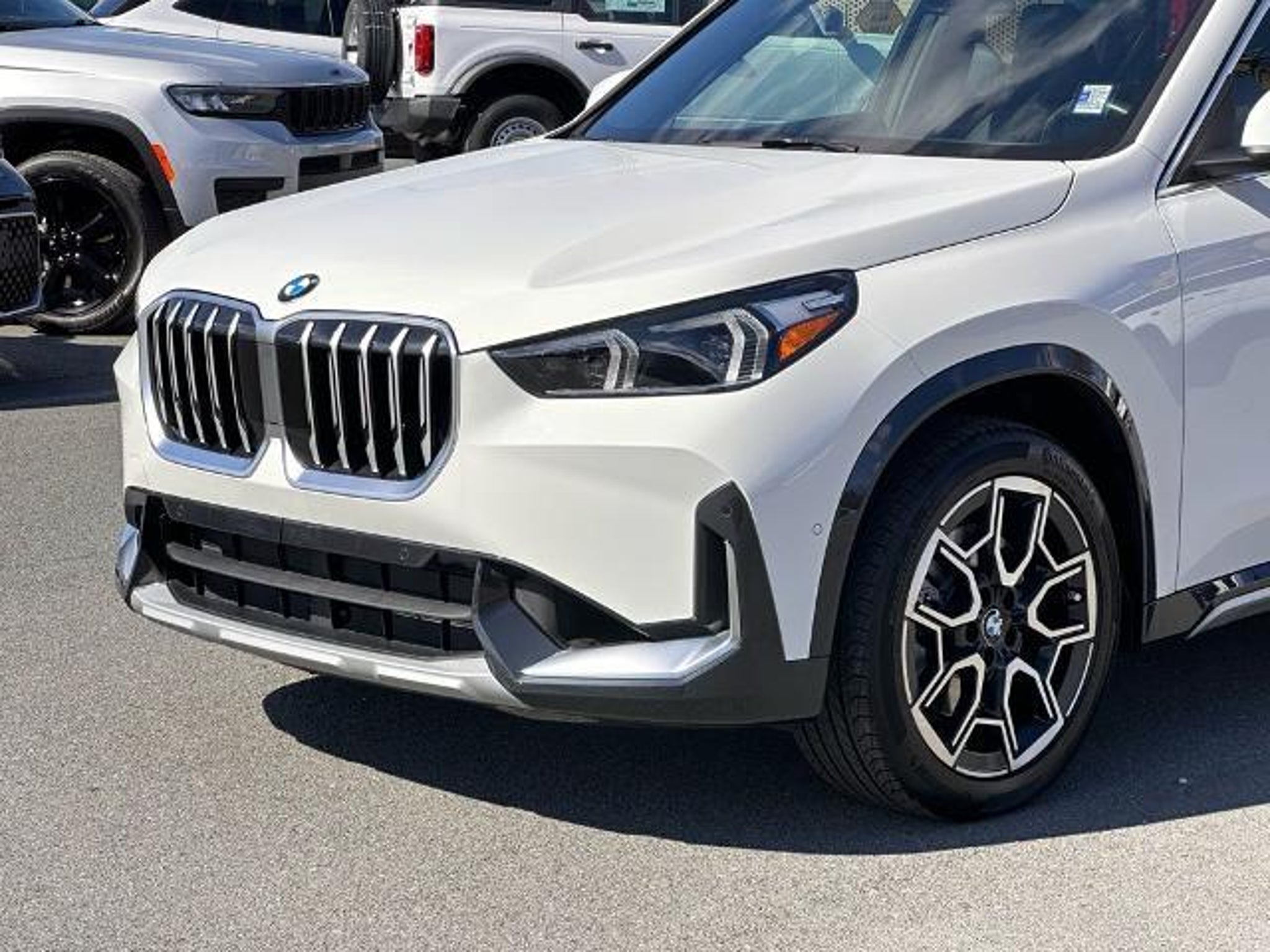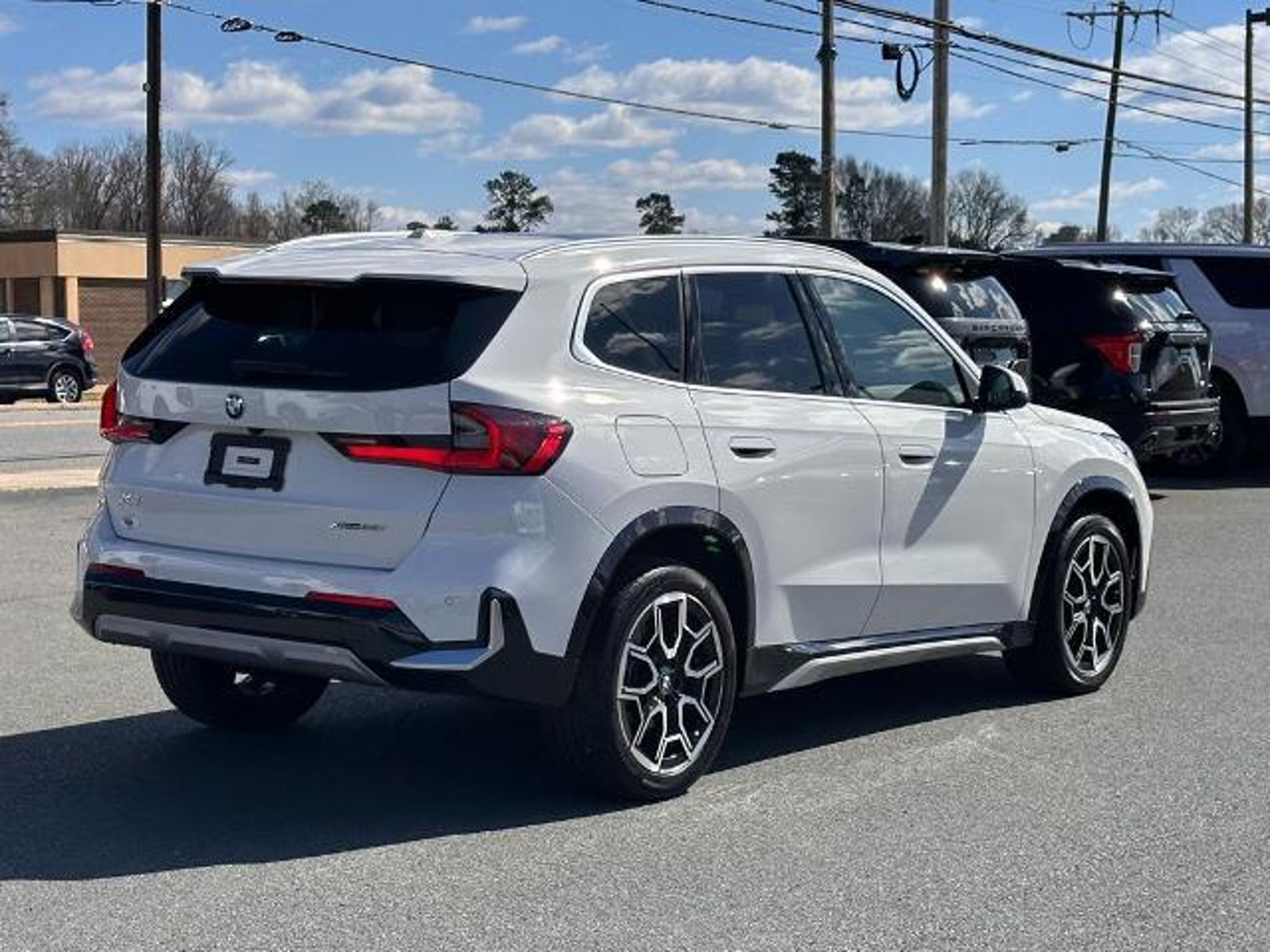Alpine White 2025 BMW X1 xDrive28i AWD Convenience Package (Auto-Dimming Interior and Exterior Mirrors, Auto-Dimming Rear-View Mirror, BMW Digital Key Plus with UWB, Comfort Access Keyless Entry, Convenience Content 1, Panoramic Moonroof, and Wireless Device Charging), 4-Wheel Disc Brakes, 7 Speakers, ABS brakes, Active Driver Seat with Lumbar Support, Air Conditioning, Alloy wheels, AM/FM Radio, AM/FM radio: SiriusXM with 360L, Apple CarPlay and Android Auto Compatibility, Apple CarPlay Compatibility, Auto High-beam Headlights, Automatic temperature control, BMW Assist ECall, BMW TeleServices, Brake assist, Bumpers: body-color, Compass, Delay-off headlights, Driver door bin, Driver vanity mirror, Dual front impact airbags, Dual front side impact airbags, Electronic Stability Control, Emergency communication system: BMW Assist eCall, Exterior Parking Camera Rear, Four wheel independent suspension, Front anti-roll bar, Front Bucket Seats, Front Center Armrest w/Storage, Front dual zone A/C, Front reading lights, Heated door mirrors, Heated Front Seats, Heated front seats, Heated Steering Wheel, Illuminated entry, Knee airbag, Leather steering wheel, Low tire pressure warning, Memory seat, Navigation, Navigation System, Occupant sensing airbag, Outside temperature display, Overhead airbag, Overhead console, Panic alarm, Passenger door bin, Passenger vanity mirror, Perforated Veganza Upholstery, Personal ESIM 5G, Power door mirrors, Power driver seat, Power Front Seats, Power Liftgate, Power passenger seat, Power steering, Power windows, Radio data system, Rain sensing wipers, Rear anti-roll bar, Rear reading lights, Rear seat center armrest, Rear window defroster, Rear window wiper, Remote Engine Start, Remote keyless entry, Security system, SiriusXM with 360L and 1 Year Platinum Plan Subscription, Speed control, Speed-sensing steering, Speed-Sensitive Wipers, Split folding rear seat, Spoiler, Steering wheel mounted audio controls, Tachometer, Telescoping steering wheel, Tilt steering wheel, Traction control, Trip computer, Turn signal indicator mirrors, Variably intermittent wipers, Wheels: 18 x 7.5 V-Spoke Bi-Color, Wheels: 19 x 8.0 Y-Spoke, and Widescreen Display.