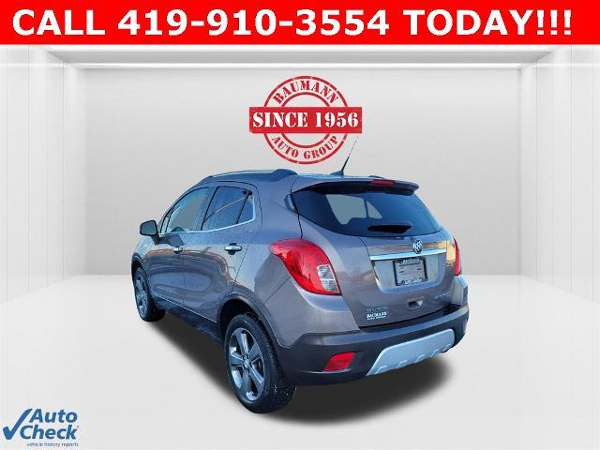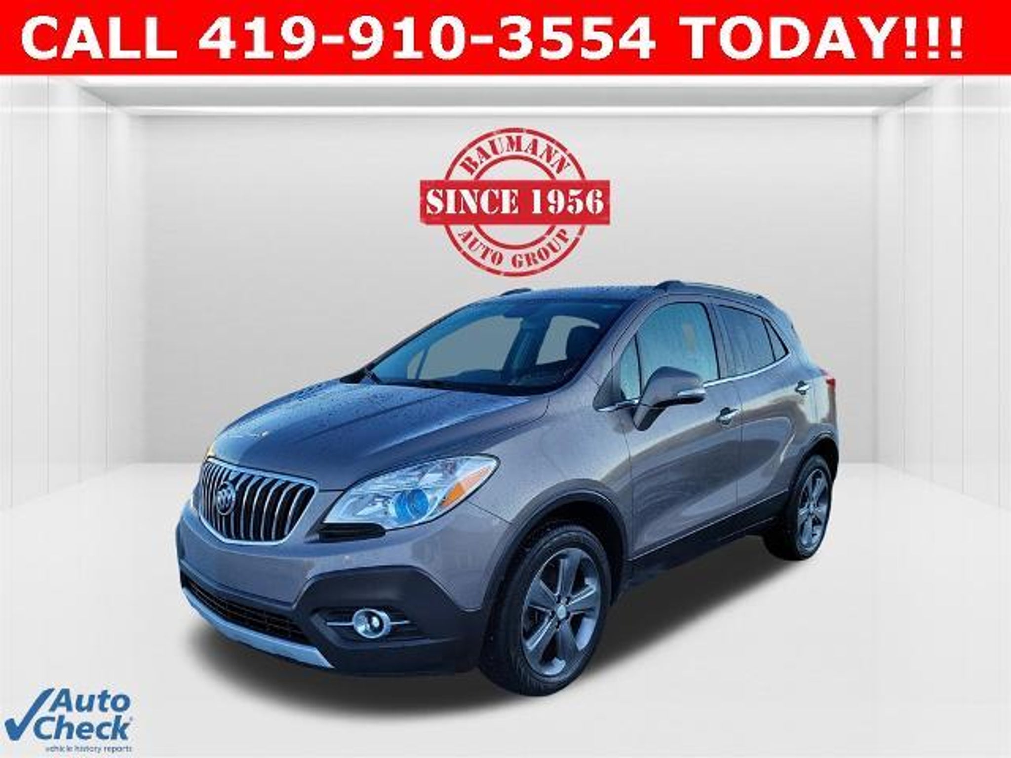 Priced below KBB Fair Purchase Price! Odometer is 63648 miles below market average! Cocoa Silver Metallic 2014 Buick Encore Convenience 4D Sport Utility ECOTEC 1.4L I4 SMPI DOHC Turbocharged VVT 6-Speed Automatic AWD BAUMANN AUTO GROUP GENOA - 419.855.8366. We Make Car Buying Fun, Fast, and HASSLE FREE. 120-Volt Power Outlet, 1SD Equipment Group, Auto-Dimming Inside Rear-View Mirror, Dual-Zone Automatic Climate Control, Exterior Parking Camera Rear, Front Fog Lamps, Rear Cross-Traffic Alert, Remote Vehicle Starter System, Side Blind Zone Alert, 3.53 Final Drive Ratio, 4-Wheel Disc Brakes, 6 Speakers, ABS brakes, Air Conditioning, Alloy wheels, AM/FM radio: SiriusXM, Auto-dimming Rear-View mirror, Automatic temperature control, Brake assist, Bumpers: body-color, CD player, Compass, Delay-off headlights, Driver door bin, Driver vanity mirror, Driver's Seat Mounted Armrest, Dual front impact airbags, Dual front side impact airbags, Electronic Stability Control, Emergency communication system: OnStar Directions & Connections, Front anti-roll bar, Front Bucket Seats, Front dual zone A/C, Front fog lights, Front reading lights, Front wheel independent suspension, Fully automatic headlights, Heated door mirrors, Illuminated entry, Knee airbag, Leather steering wheel, Low tire pressure warning, Occupant sensing airbag, Outside temperature display, Overhead airbag, Panic alarm, Passenger door bin, Passenger vanity mirror, Power door mirrors, Power driver seat, Power steering, Power windows, Premium audio system: IntelliLink, Radio data system, Radio: AM/FM Audio System w/MP3 CD Player, Rear seat center armrest, Rear side impact airbag, Rear window defroster, Rear window wiper, Remote keyless entry, Ride & Handling Suspension, Roof rack: rails only, Security system, SiriusXM Satellite Radio, Speed control, Speed-sensing steering, Split folding rear seat, Spoiler, Steering wheel mounted audio controls, Tachometer, Telescoping steering wheel, Tilt steering wheel, Traction control, Trip computer, Turn signal indicator mirrors, Upscale Cloth w/Leatherette Accents, Variably intermittent wipers, Wheels: 18 Painted Cast Aluminum, 120-Volt Power Outlet, 1SD Equipment Group, Auto-Dimming Inside Rear-View Mirror, Dual-Zone Automatic Climate Control, Exterior Parking Camera Rear, Front Fog Lamps, Rear Cross-Traffic Alert, Remote Vehicle Starter System, Side Blind Zone Alert.