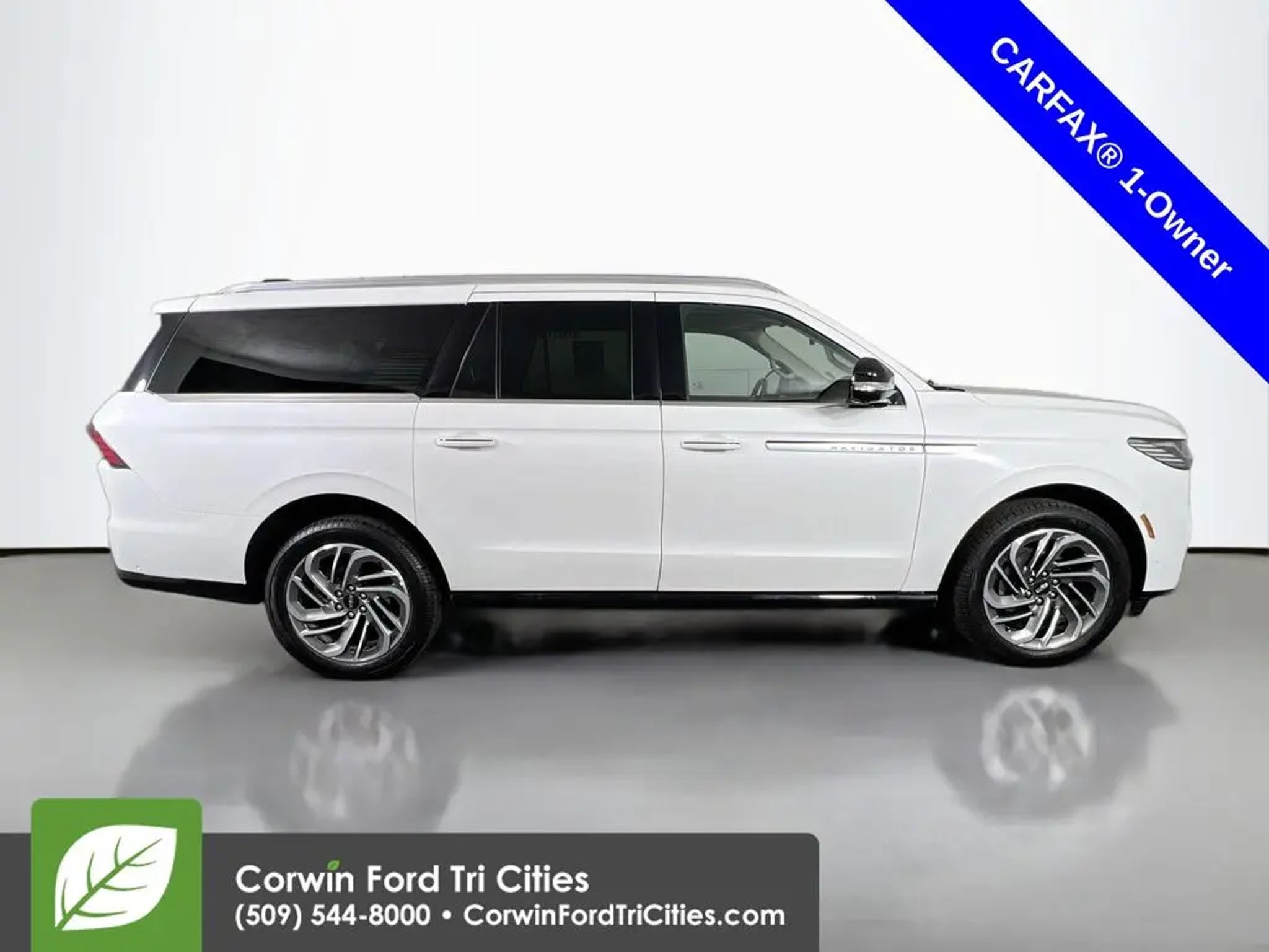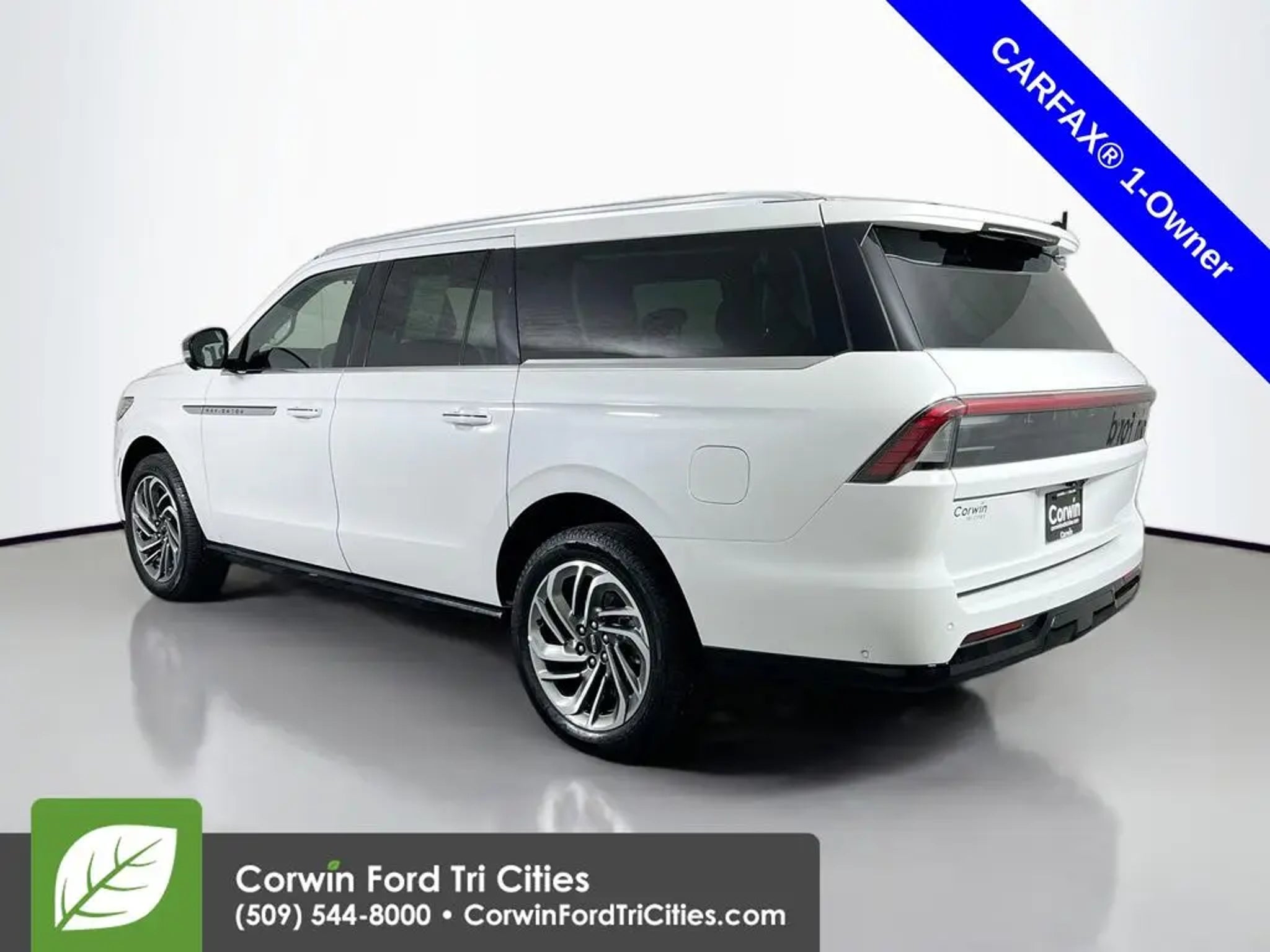 Our Accident Free, One Owner, Low Mileage 2025 Lincoln Navigator Reserve L 4WD in Pristine White Metallic delivers refined power, extended luxury, spacious comfort, and advanced capability for premium family and executive travel! Motivated by a Twin-TurboCharged 3.5 Liter V6 offering 440hp to a paddle-shifted 10 Speed Automatic transmission for premium performance. This Four Wheel Drive SUV also boasts an adaptive suspension for harsh conditions and achieves nearly 22mpg on the highway. A proud picture of strength, our Lincoln Navigator features LED signature lighting, adaptive headlamps, a panoramic sunroof, a power liftgate, power running boards, and 22-inch alloy wheels. Crafted details in our Reserve L's extended-length cabin pamper you with heated/ventilated leather front seats and second-row captain's chairs, a power-folding third row, a heated leather power steering wheel, tri-zone automatic climate control, power-adjustable pedals, and real-wood accents. Digital benefits include a 48-inch panoramic dashboard driver display with Pano Mode, connected navigation, voice control, Android Auto®/Apple CarPlay®, WiFi compatibility, Alexa Built-In compatibility, Bluetooth®, wireless charging, and Revel audio. Lincoln helps safeguard your travels with Blue Cruise hands-free driving, a head-up display, active parking assistance, lane-keeping assistance, automatic braking, a surround-view camera, blind-spot monitoring, and more. Take on your world with calm confidence in our Lincoln Navigator Reserve L! Save this Page and Call for Availability. We Know You Will Enjoy Your Corwin Ford Tri-City Test Drive Towards Ownership! See us today at Corwin Ford Tri-Cities. Family owned for over 100 years! Excellent selection of New and Used vehicles, Financing options. Serving Pasco, Kennewick, Richland, Walla Walla, Hermiston, Umatilla, Yakima, Spokane, Sunnyside, Grandview, Dayton, Prescott, Benton County, Franklin County, Yakima County, Spokane County, Adams County, Grant County, and the Greater Columbia Basin. *All Prices plus applicable sales tax and licensing. A negotiable documentary service fee up to $200 may be added to sales price or capitalized cost of the vehicle. One vehicle unless otherwise noted and subject to prior sale without notice. While supplies last. EPA mileage estimates are for newly manufactured vehicles only. Your actual mileage will vary depending on how you drive and maintain your vehicle.