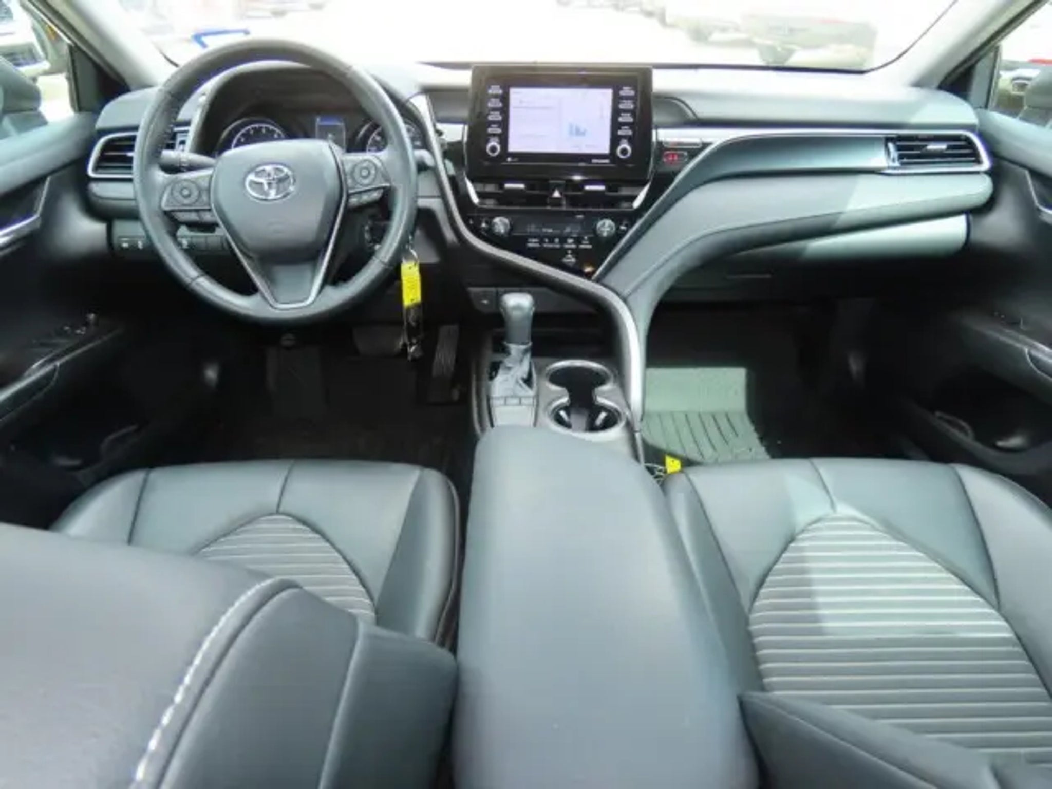 Soft and luxurious leather seating. You don't have to drive all over town...we have the 2022 Camry you need in stock. Start saving cash at the pump - this car has an EPA estimated fuel economy of 32 MPG combined. What a deal! The rear camera makes backing up a breeze. Keep your hands safely on the wheel by using the integrated steering wheel controls. Features include: tinted/privacy glass, security system, a cabin air filtration system, LED lamps in the rear and extremely convenient cruise control.