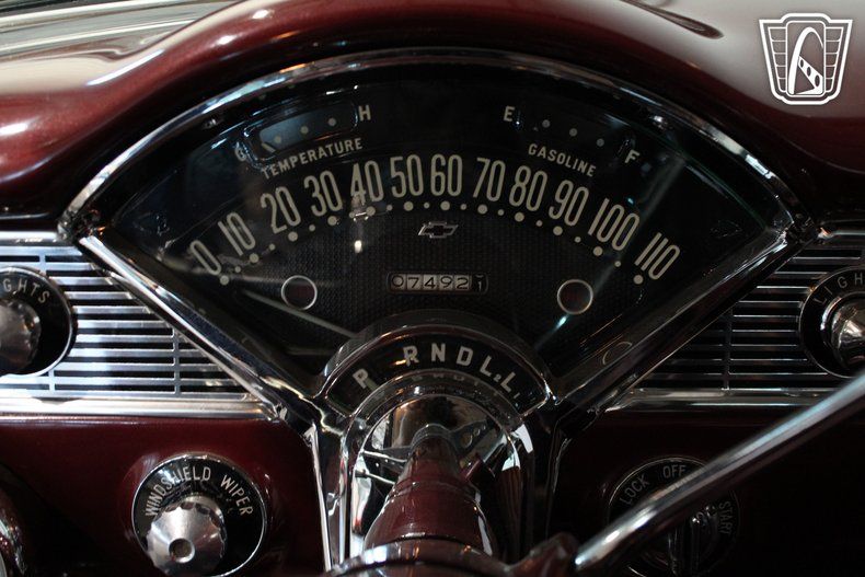 The 1956 Chevrolet Bel Air Nomad was part of the second generation of the Bel Air series, celebrated for its unique blend of practicality and style. As a two-door station wagon, the Nomad stood apart from its peers with its sporty design and upscale features, making it a favorite among car enthusiasts and families alike. With its AM/FM radio, CD player, and cassette tape player, this Nomad bridges the gap between classic and contemporary, offering a soundtrack for every drive, whether it's a golden oldie or a modern tune.