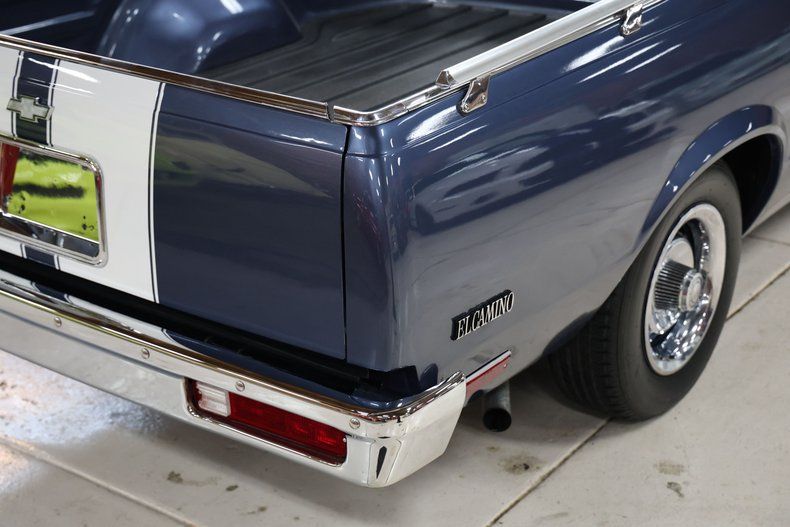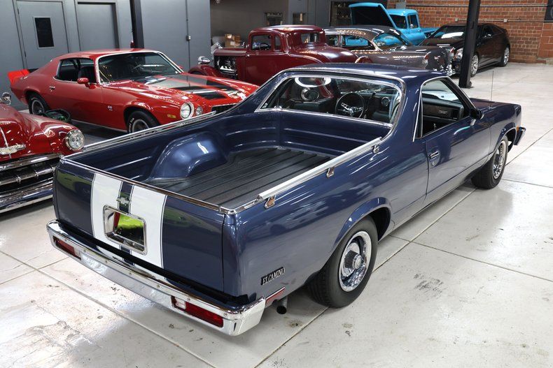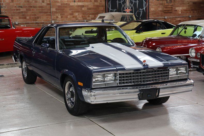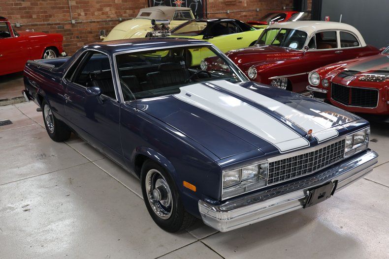 This 1983 Chevrolet El Camino is proof that muscle didn't die in the '70s - it just got smarter and kept hauling. Drenched in bold blue with white racing stripes slicing down the center, this thing looks like it's doing 60 standing still.