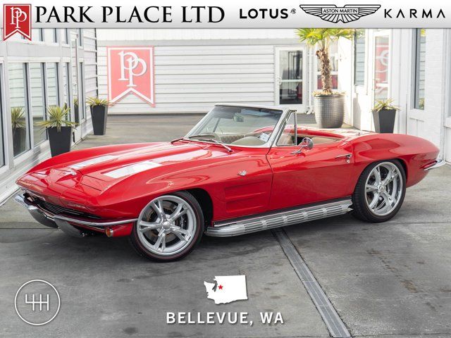 *1963 Chevrolet Corvette Custom Convertible* 1963 marked the beginning of a shift for the Corvette, with an independent suspension and an appealing selection of engines, GM had set its sights on turning its sports car from a great looking tourer, into a legitimate performance vehicle. Paired with one of the most striking designs to ever grace a car, it is no surprise that the C2 Corvette was a near instant classic. With reasonable performance from the factory, it stands as a perfect basis to build an even better performer today with a great look and modern underpinnings. This 1963 Chevrolet Corvette Convertible has received the full custom treatment - yet you can’t really tell from the exterior. Finished in Riverside Red with a high-end tan convertible top, the only thing that really gives away what sits under the car, is a set of Schott Mach V wheels sized 18-inches in front and 20-inches at the rear. These look great and are required to fit the sizable Wilwood disc brakes on the car with 6 piston calipers in front and 4 piston calipers at the rear. What allows these brakes to be fitted is the Art Morrison G2 chassis that the car sits on. This custom built retrofit features all new suspension geometries with adjustable coilovers at all four corners and fully powder coated components. The result is a car with a suspension that can be set up for performance driving, while still being comfortable on the road. The interior of the car has been entirely reupholstered in high-quality tan leather which, along with the convertible top, was installed by C&L Interiors of Tempe, AZ. Open the door - with double-stitched diamond quilted inserts - and you are met by a 3-spoke leather-wrapped steering wheel that frames original-look modern gauges by Dakota Digital. The leather wrapped dashboard houses a clock and upgraded stereo head unit that powers 4 speakers and a 400 watt amplifier w/sub woofer, along with controls for a Vintage Air A/C system. Under the hood sits a 6.2-liter LS3 V8 with electronic fuel injection and coil-on-plug ignition. Producing 480 horsepower, this car puts out nearly double the horsepower of the most powerful Corvette in 1963 and, when paired with a Tremec T56 Super Magnum 6-speed manual transmission, does a much better job of putting that power down. The addition of the more powerful motor also included adding a DeWitts upgraded radiator with dual electric fans, a Holley fuel pump and custom drive shaft. If you’re an enthusiast who loves the classic look of the C2 Corvette but desires a bit more in the performance department - this car is the one for you. With nearly all the modern convenience features you want, paired with a powerful fuel injected V8, this car could serve daily driver duties when weather permits, or make a great road trip car that would eat up the miles without complaint. *Key Features* * Art Morrison G2 Chassis * Independent Front/Rear Suspension * 4-Wheel Adjustable Coilover Suspension * Powder Coated Components * 6.2-Liter LS3 V8 * 480 Horsepower * Serpentine Belt System * Fuel Injected * Tremec T56 Super Magnum 6-Speed Manual * 4-Wheel Wilwood Disc Brakes * Power Assist * 6-Piston Front/4-Piston Rear * 14-Inch Discs * Detroit Speed Headlight Motors * Dakota Digital Gauges * VIntage Air A/C * DeWitts C2 Radiator * Dual Electric Fans * Retro Stereo * 4-Speakers * 400 Watt Amp * Sub Woofer * Schott Mach V Wheels * 18-Inch Front/20-Inch Rear For more information on this 1963 Chevrolet Corvette Custom Convertible or any of our High-Performance, Luxury, Exotic, Classic, and Special Interest cars always in stock, contact one of our friendly and knowledgeable sales consultants or always feel free to drop by our 40,000+ sq ft of Indoor Showrooms in Bellevue, WA - Home of an Exciting Inventory of Luxury, Exotic, High Performance and Collectible Automobiles. Nobody Has What We Have!