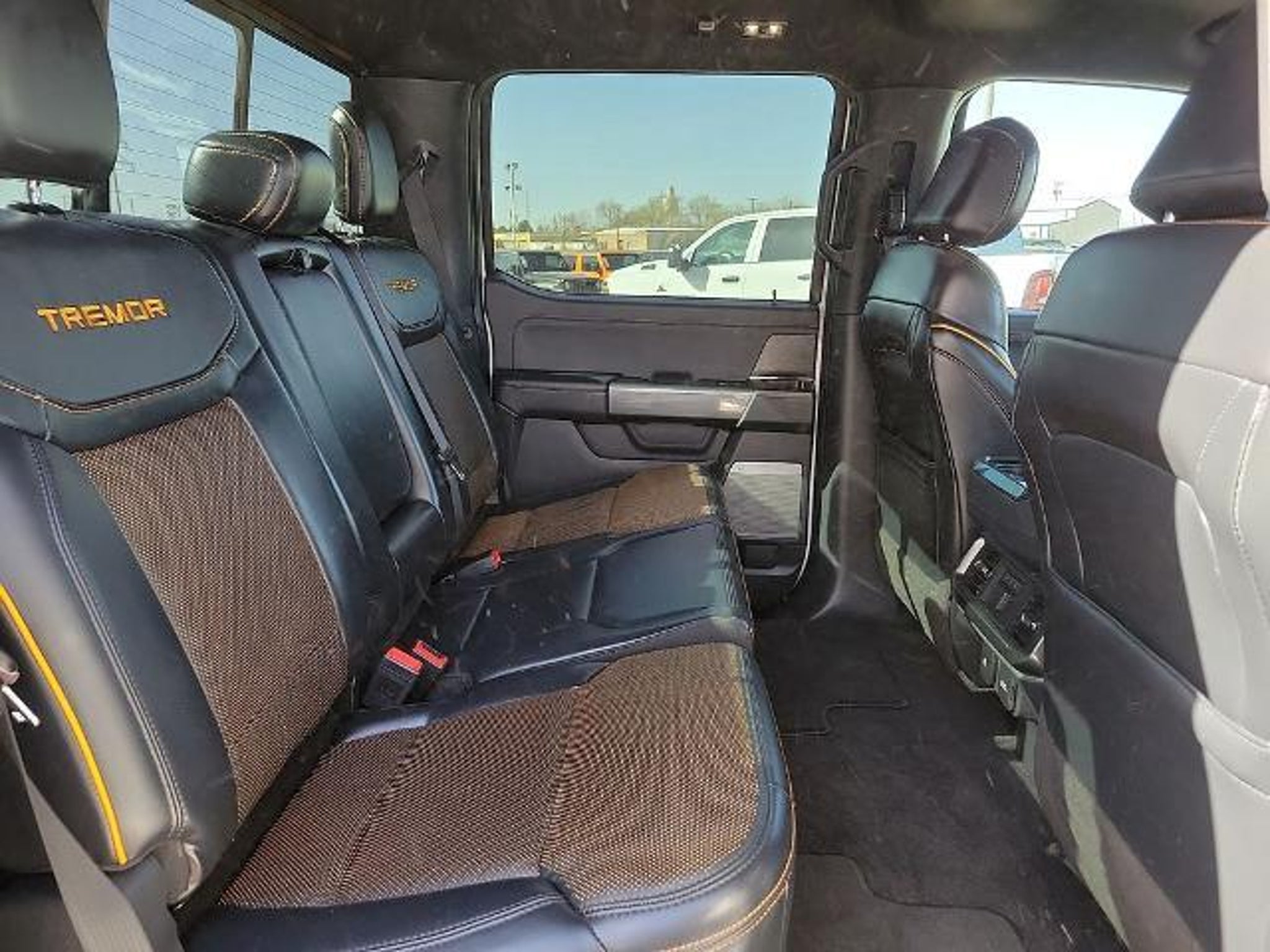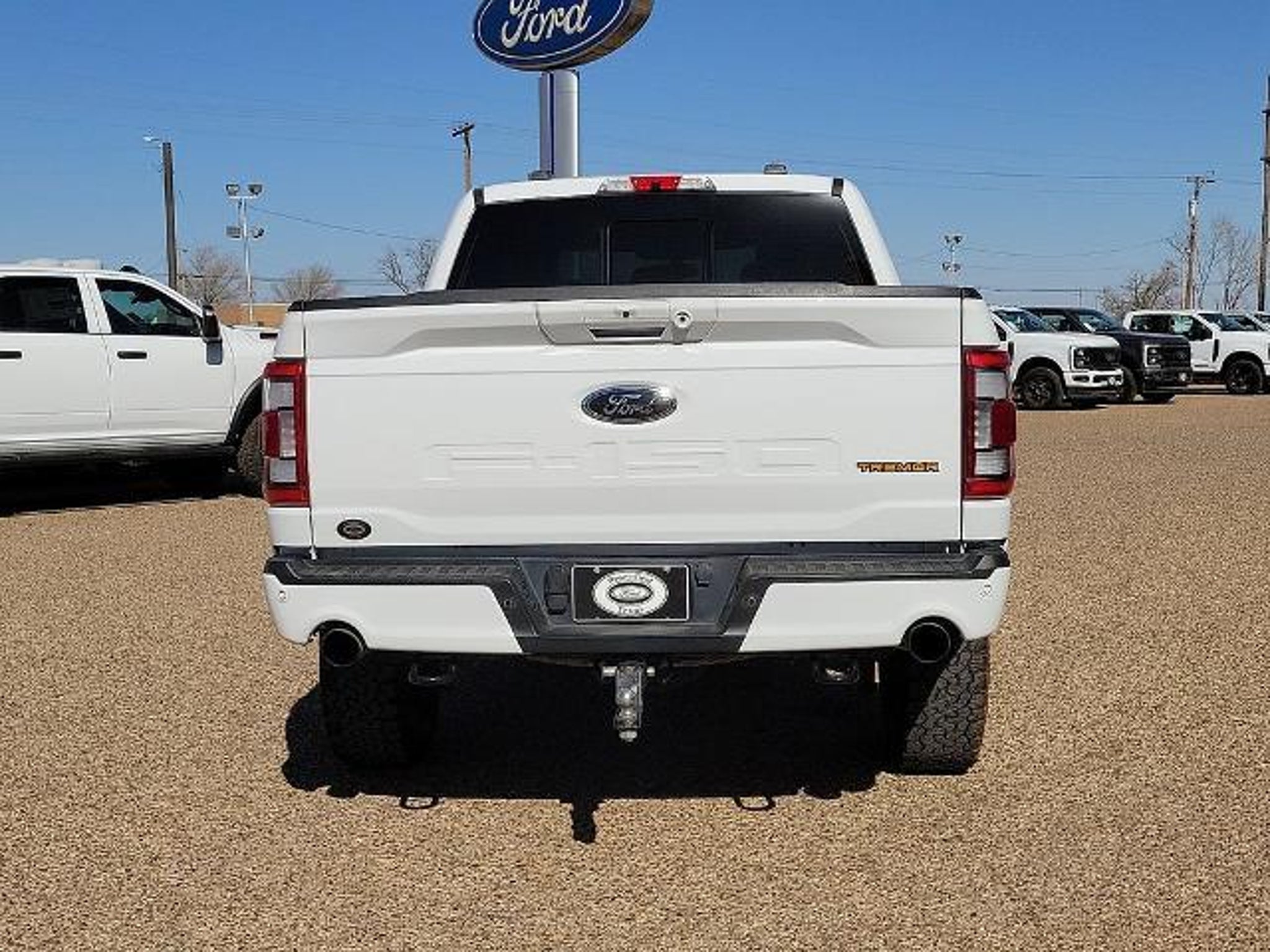 This 2022 Ford F-150 Tremor 3.5L V6 EcoBoost 10-Speed Automatic 4WD in Oxford White comes with the following features: 4WD Equipment Group 402A High (12 Productivity Screen in Instrument Cluster, Advanced Security Pack, Ambient Lighting, Body-Color Door Handles w/Body-Color Bezel, Carpeted Floor Mats w/Tremor Logo, Electronic Locking w/3.73 Axle Ratio, Onboard 400W Outlet, Power Glass Sideview Mirr w/Body-Color Skull Caps, Radio: B&O Sound System by Bang & Olufsen, SYNC 4 w/Enhanced Voice Recognition, Trail Control, Unique Tremor Leather-Trimmed Bucket Seats, and Wireless Charging Pad), Ford Co-Pilot360 Assist 2.0 (DISC) (Connected Built-In Navigation (DISC)), GVWR: 7,050 lbs Payload Package, Tow Technology Package (360 Degree Camera and Integrated Trailer Brake Controller), 4WD, 4-Wheel Disc Brakes, 6 Speakers, ABS brakes, Air Conditioning, Alloy wheels, AM/FM radio: SiriusXM with 360L, Auto High Beam, Auto High-beam Headlights, Auto Start-Stop Removal, Brake assist, Bumpers: body-color, Class IV Trailer Hitch Receiver, Compass, Delay-off headlights, Driver door bin, Dual front impact airbags, Dual front side impact airbags, Electronic Stability Control, Emergency communication system: SYNC 4 911 Assist, Exterior Parking Camera Rear, Front anti-roll bar, Front Bucket Seats, Front Center Armrest, Front fog lights, Front License Plate Bracket, Front reading lights, Front wheel independent suspension, Fully automatic headlights, Heated door mirrors, Illuminated entry, Interior Work Surface, Lane-Keeping System, Low tire pressure warning, Navigation system: Connected Navigation, Occupant sensing airbag, Outside temperature display, Overhead airbag, Overhead console, Panic alarm, Passenger door bin, Passenger vanity mirror, Power door mirrors, Power steering, Power windows, Pre-Collision Assist w/Automatic Emergency Braking, Radio data system, Radio: AM/FM SiriusXM w/360L, Radio: B&O Unleashed Sound System by Bang & Olufsen, Rear reading lights, Rear step bumper, Rear window defroster, Rear-View Camera, Remote keyless entry, Security system, Speed control, Speed-sensing steering, Split folding rear seat, Steering wheel mounted audio controls, Tachometer, Telescoping steering wheel, Tilt steering wheel, Traction control, Trip computer, Unique Sport Cloth 40/Console/40 Front Seat, Variably intermittent wipers, Voltmeter, and Wheels: 18 Alloy w/Dark Matte Finish.