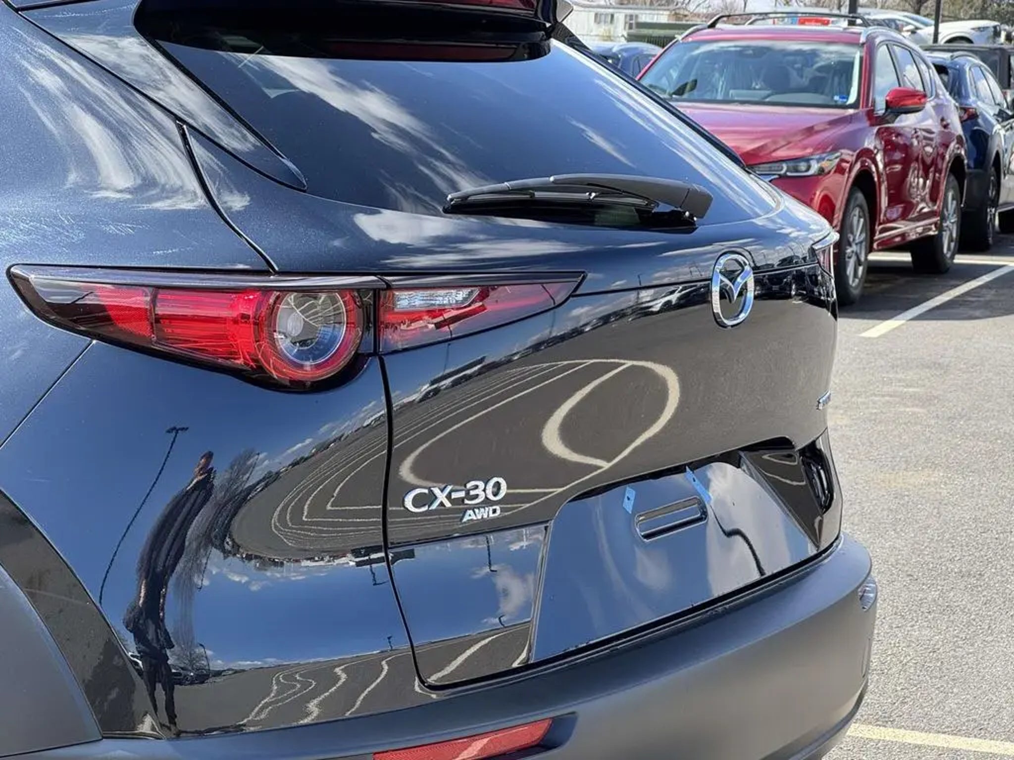 Certified. Jet Black Mica 2025 Mazda CX-30 2.5 S Premium Package AWD 6-Speed Automatic SKYACTIV® 2.5L 4-Cylinder DOHC 16V Exterior Parking Camera Rear, Front dual zone A/C, Heads-Up Display, Heated front seats, Leather Seat Trim, MAZDA CONNECT Infotainment System, Memory seat, Navigation system: MAZDA CONNECT, Power driver seat, Power Liftgate, Power moonroof, Radio: AM/FM/HD Audio w/Mazda Online Navigation, Wheels: 18 x 7J Aluminum Alloy. Odometer is 1033 miles below market average! 26/33 City/Highway MPG Mazda Certified Pre-Owned Details: * Limited Warranty: 12 Month/12,000 Mile (whichever comes first) after new car warranty expires or from certified purchase date * Warranty Deductible: $0 * 160 Point Inspection * Transferable Warranty * Vehicle History * Includes Autocheck Vehicle History Report with 3 Year Buyback Protection. 3 month SiriusXM trial subscription. * Powertrain Limited Warranty: 84 Month/100,000 Mile (whichever comes first) from original in-service date * Roadside Assistance