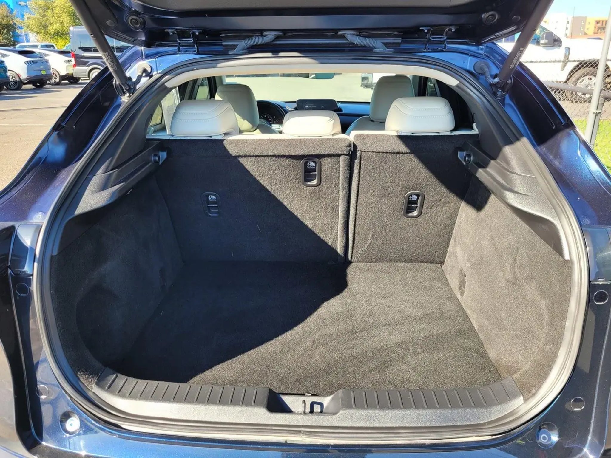 This 2023 Mazda CX-30 2.5 S Premium Package|has a Deep Crystal Blue Mica exterior color and a White interior color with 45,284 miles. The Stock Number is FR23052. One Owner! OTHER NOTABLE FEATURES AND OPTIONS YOU SHOULD KNOW ABOUT: DEEP CRYSTAL BLUE MICA, WHITE, LEATHER SEAT TRIM Safety and Security The vehicle is equipped with a system that senses, and then prepares, the vehicle and/or occupants, for an impending forward collision. The vehicle constantly monitors the roadway in front of the vehicle and identifies and tracks pedestrians on an interior display. If the system determines a likely impact, it will automatically take preventative steps to avoid hitting the pedestrian. The vehicle is equipped with a camera that displays an image of the area behind the vehicle on an interior display. Technology and Telematics Without the need for a manufacturer specific app to be installed on the smart device, the vehicle infotainment system can access and control functions of a smart device physically plugged-into the vehicle. Mobile devices can wirelessly connect to the internet through the vehicle's private mobile network. Fair Market Pricing We use advanced technology, real-time market data, and third-party tools like KBB, Edmunds and Carfax to ensure our prices are competitive. This market-driven approach guarantees transparency and gives you confidence in every purchase. Fast & Easy Buying Process Upfront pricing saves time, keeping the focus on finding the perfect car. Haggle-Free Price Clear, upfront pricing, ensuring transparency & trust in every deal. The price you see is the price you pay. *30 Day/ 1,000 Mile Limited Warranty *Applies to used cars 12 model years or newer & under 100,000 Miles. Excludes select electric & H-value vehicles that are AS IS cars. Please see dealer for additional information. A copy of the warranty is available for review the dealership. Trusted Name for 60 Years Serving our community for over six decades with integrity, quality, & customer satisfaction