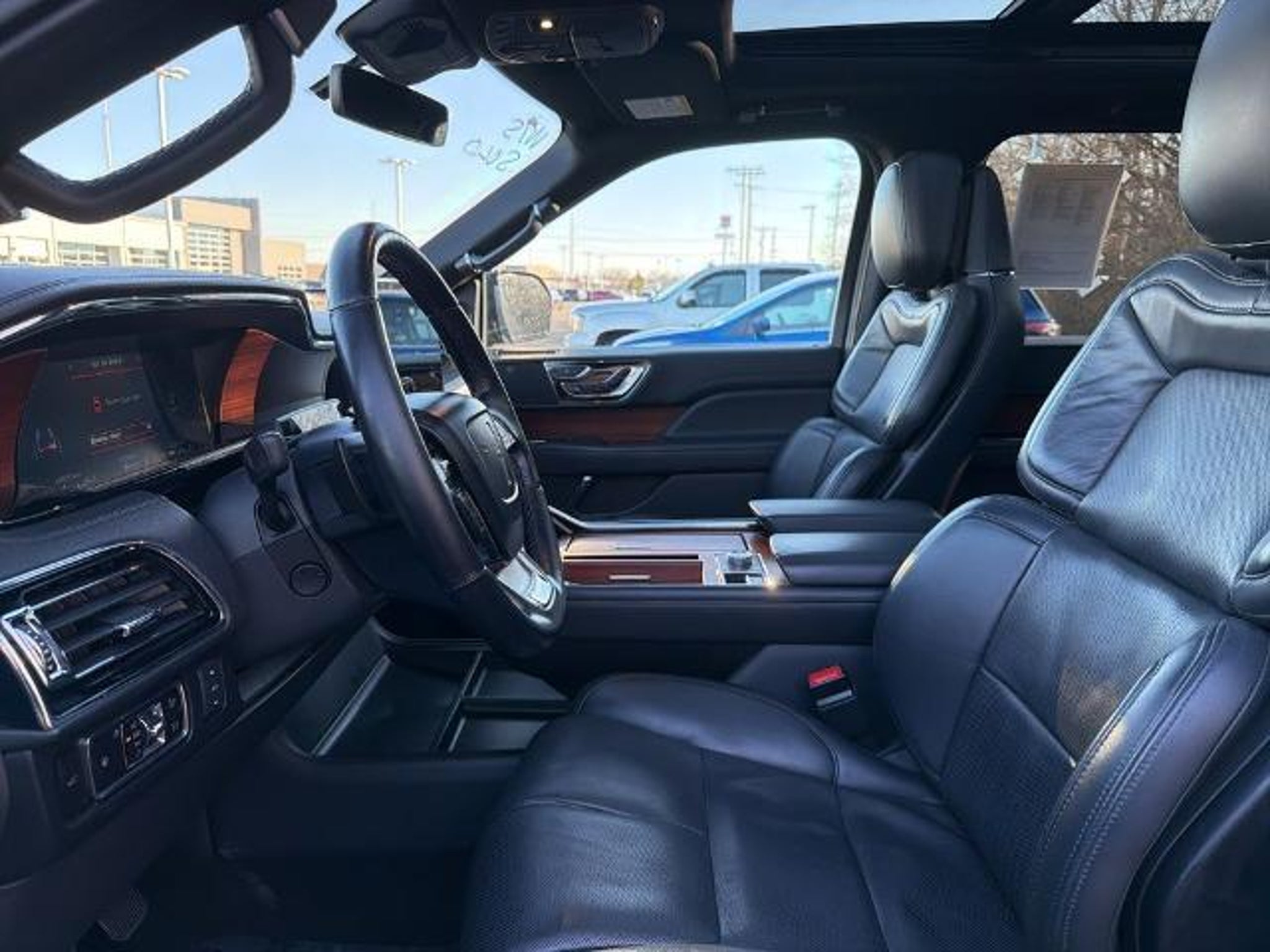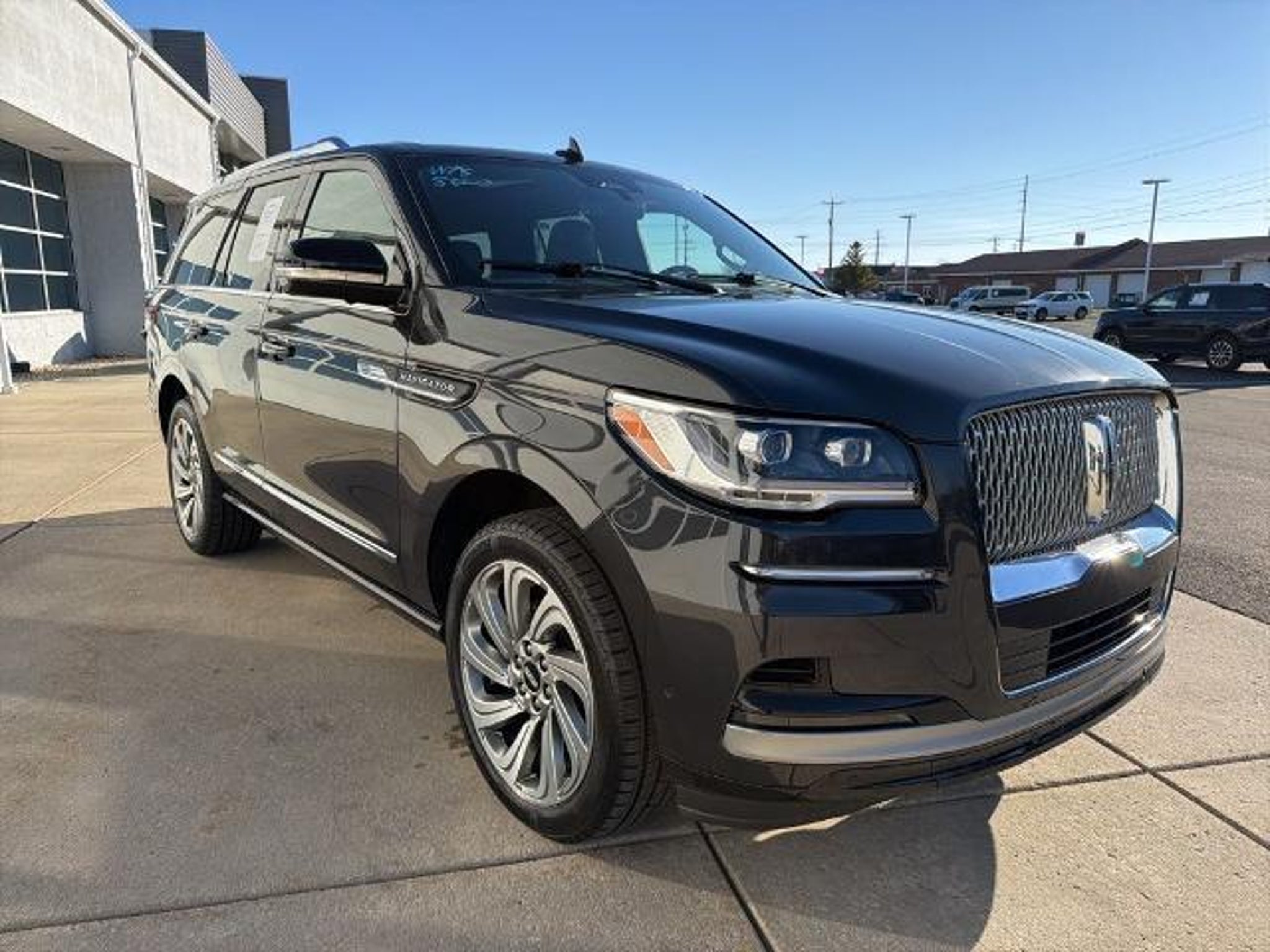 2023 Lincoln Navigator Reserve 4WD V6 10-Speed Automatic ONE OWNER, Equipment Group 200A Reserve. Check out all these great options! Equipment Group 200A Reserve, 14 Speakers, 3.73 Axle Ratio, 3rd row seats: split-bench, 4-Wheel Disc Brakes, ABS brakes, Active Park Assist 2.0 Delete, Adaptive suspension, Adjustable pedals, Air Conditioning, Alloy wheels, AM/FM radio: SiriusXM with 360L, Audio memory, Auto High-beam Headlights, Auto Start-Stop Technology, Auto tilt-away steering wheel, Auto-dimming door mirrors, Auto-dimming Rear-View mirror, Auto-leveling suspension, Automatic temperature control, Bodyside moldings, Brake assist, Bumpers: body-color, Compass, Delay-off headlights, Driver door bin, Driver vanity mirror, Driver's Seat Mounted Armrest, Dual front impact airbags, Dual front side impact airbags, Electronic Stability Control, Emergency communication system: 911 Assist, Exterior Parking Camera Rear, Four wheel independent suspension, Front anti-roll bar, Front Bucket Seats, Front dual zone A/C, Front fog lights, Front reading lights, Fully automatic headlights, Garage door transmitter, Genuine wood dashboard insert, Genuine wood door panel insert, Hands-Free Liftgate Delete, Head restraints memory, Heads-Up Display, Heated door mirrors, Heated front seats, Heated rear seats, Heated steering wheel, HVAC memory, Illuminated entry, Leather steering wheel, Low tire pressure warning, Memory seat, Navigation system: Connected Navigation (3-year trial), Occupant sensing airbag, Outside temperature display, Overhead airbag, Overhead console, Panic alarm, Passenger door bin, Passenger seat mounted armrest, Passenger vanity mirror, Pedal memory, Power adjustable rear head restraints, Power door mirrors, Power driver seat, Power Liftgate, Power moonroof: Panoramic Vista Roof, Power passenger seat, Power steering, Power windows, Prem Lthr Auto Htd/Ventiltd Perfect Position Seats, Radio data system, Radio: Revel AM/FM/HD/MP3 Audio System, Rain sensing wipers, Rear air conditioning, Rear anti-roll bar, Rear audio controls, Rear reading lights, Rear window defroster, Rear window wiper, Reclining 3rd row seat, Remote keyless entry, Security system, SiriusXM w/360L, Speed control, Speed-sensing steering, Speed-Sensitive Wipers, Split folding rear seat, Spoiler, Steering wheel memory, Steering wheel mounted audio controls, SYNC 4 Communications & Entertainment System, Tachometer, Telescoping steering wheel, Tilt steering wheel, Traction control, Trip computer, Turn signal indicator mirrors, Variably intermittent
