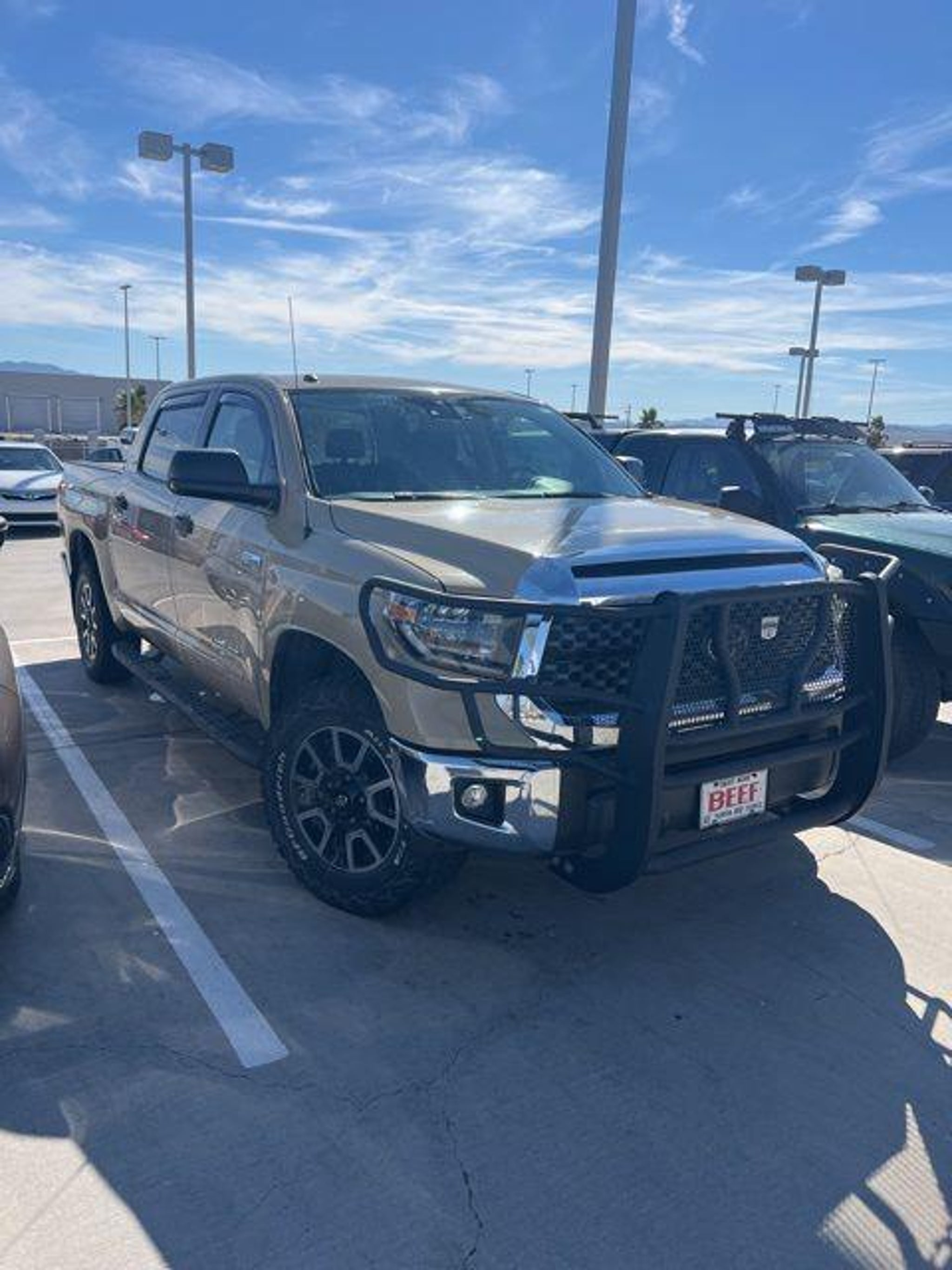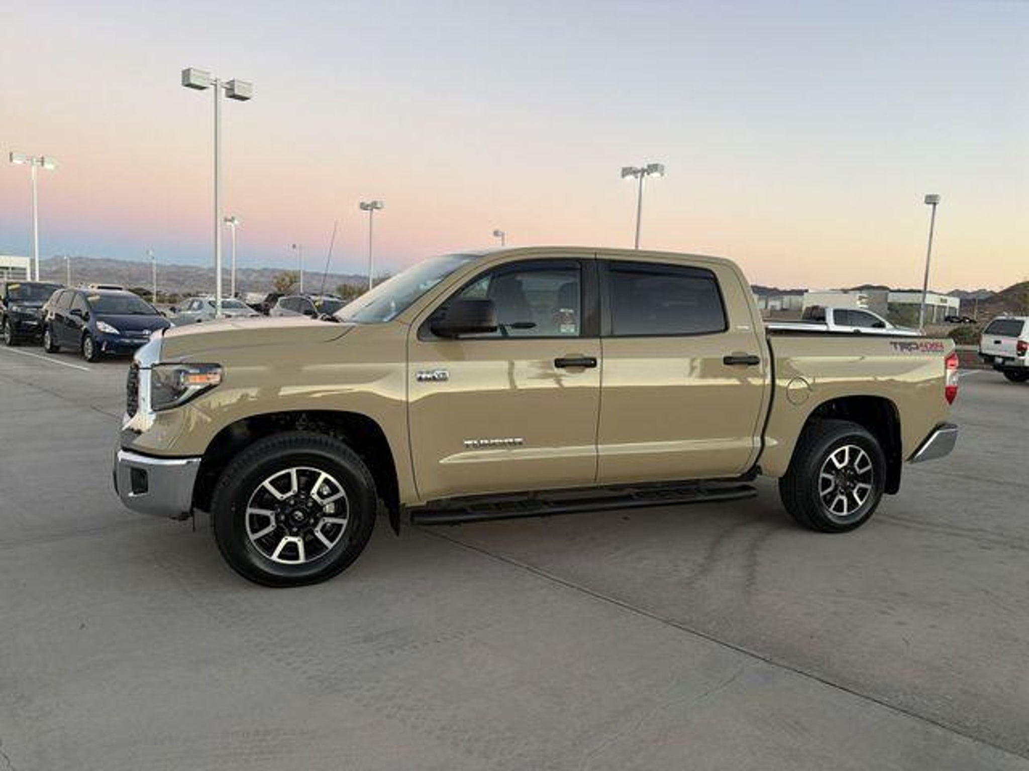 2019 Toyota Tundra SR5 CrewMax TRD Off-Road in Quicksand This impressive truck is ready to take on any challenge, rugged terrain or pounding pavement. Hard work is no factor! With its commanding presence and exceptional capabilities, this Tundra is the perfect companion for your active lifestyle. - One Owner Vehicle! - Clean Vehicle History! - Local Trade! - Locally Serviced! Beneath the bold exterior, this Tundra is equipped with the legendary 381HP i-Force 5.7L V8 DOHC 32V LEV engine, paired with a 6-Speed Automatic Electronic transmission and 4WD. Experience the remarkable power and efficiency that will make every drive a thrill. Its TRD Off Road Package sports this Tundra's capabilities, featuring trail-tuned Bilstein shock absorbers, skid plates, and wide-angle LED front fog and driving lights. Conquer any terrain with confidence, thanks to the all-terrain tires and 18-inch split 5-spoke TRD Off Road alloy wheels. Step inside the spacious CrewMax cabin and you'll be greeted by the Entune Premium Audio system, complete with a 7-inch high-resolution touchscreen, integrated navigation, and a premium 9-speaker sound system. Stay connected and entertained on the go with features like Bluetooth, SiriusXM Satellite Radio, and the Entune App Suite. For added convenience and comfort, this Tundra is equipped with the SR5 Upgrade Package, offering a center console with cup holders, a tilt/telescopic steering wheel, and an anti-theft immobilizer with alarm. The available 38-gallon fuel tank ensures you can go the distance without frequent stops. Safety is a top priority, and this Tundra delivers with features like electronic stability control, brake assist, and a suite of airbags to protect you and your passengers. The auto-dimming rearview mirror and HomeLink universal transceiver add an extra layer of convenience and security. Visit Anderson Toyota today or give our friendly sales staff a call to schedule your test drive, . WHY BUY FROM ANDERSON: All Anderson pre-owned vehicles include a 3-month or 3,000 mile powertrain limited warranty and one-year/15,000 mile (whichever occurs first) vehicle maintenance plan when the vehicle is serviced at an Anderson Auto Group dealership. Out of town customers will be accommodated with free shuttle service from Las Vegas and Phoenix airports and if an overnight stay is needed, discounted nightly rates are available from local hotels. We welcome you to come in and enjoy a positive buying experience and look forward to you joining the Anderson family of customers. DISCLAIMER: Prices, options, specifications and images shown are subject to certain qualifications and availability. Pricing information is not final and may not include taxes, registration, finance and purchase fees. Please confirm vehicle availability and pricing information by calling us at or emailing our internet sales department at . Some exclusions apply, see store for details.