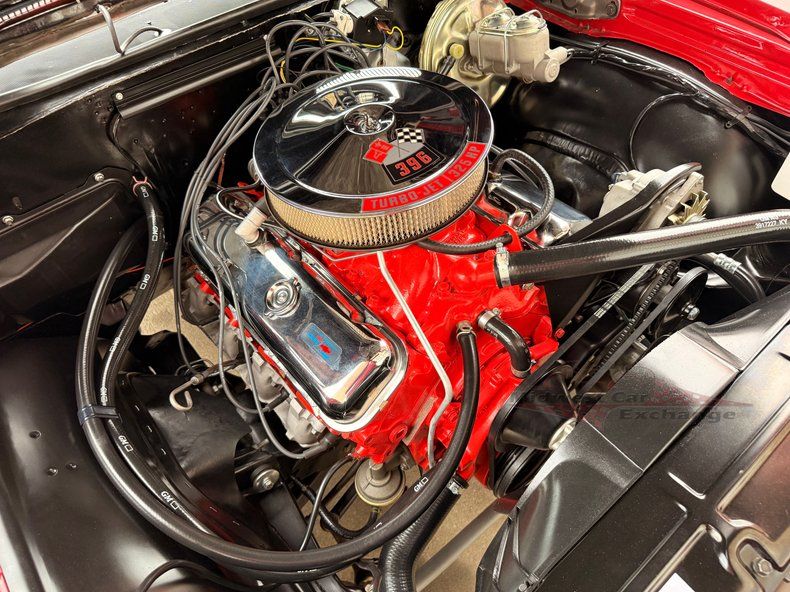 Chevrolet 396 cid, 325 + HP, Suffix Code "EF", With Vehicle VIN on front pad Stock Carburetor With Stock Intake Pertronix Ignition System Open Element Air Cleaner Stock Exhaust Manifolds Turbo Dual Exhaust Four Speed Muncie M-20 Transmission With Vehicle VIN Stamped On Cast Power Steering Power Disc Brakes Full Console Full Gauge Instrumentation, Including Unique Tumbler Tachometer Autosound AM/FM/I-Pod Stereo Kick Panel Speakers 2 Speed Wipers With Window Washer Tilt Sport Steering Wheel All New Stainless Steel Brake And Fuel Lines