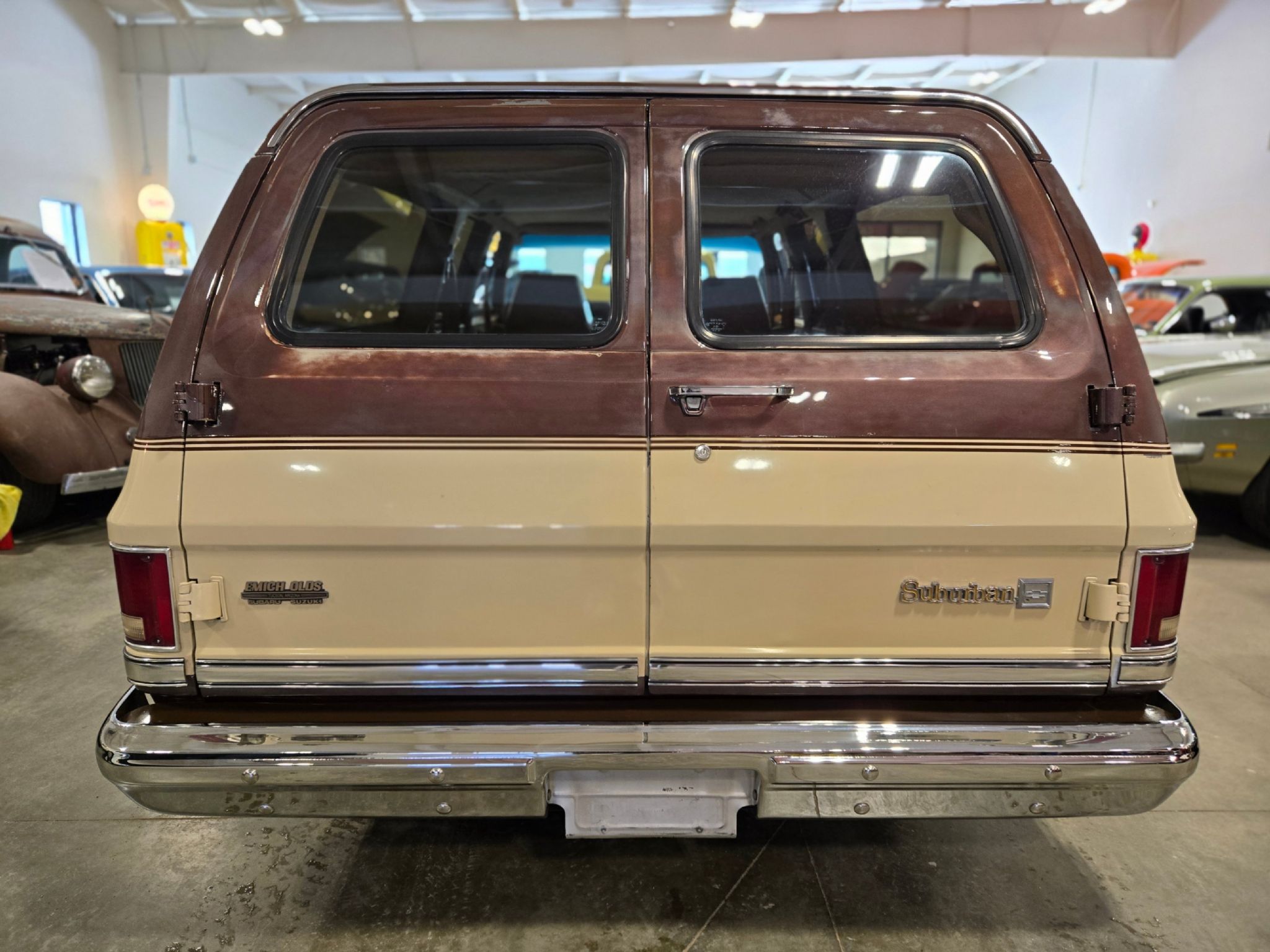 1988 Chevrolet C/10 Suburban. Super cool wagon with a lot going on! To begin with, this is a US truck originally from Tucson Arizona, hence the patina on the original paint and lack of rust anywhere. Yep, factory paint, but the entire truck has been re-clear-coated preserving the fantastic patina on the hood, roof and upper sides. Lowering was done using different springs up front and a flip kit and blocks out back. Now with new tires and matching wheels, the stance and look are just right. Despite quite a drop, this big rig still rides very well. This is quite the loaded unit. Barn doors on the back, 3 rows of seating in cloth, and buckets and a console up front. This is also the deluxe interior meaning the trim, door panels and dash are just a bit more dressed up. Rare to see, but this one also has the factory rear 3 rd row overhead air conditioning unit mounted to the roof, along with factory a/c up front. Theres power windows, power locks, power steering and power brakes, tilt wheel and cruise control. Lots of dollars spent on the interior, with a new headliner front to back (Alcantara style) and new carpets in the first two rows. The rear of the truck factory rug is still perfect. Seats upholstery appears to be factory as well however the 2 nd row has a few minor rips in the seat bottoms, probably from doing a bit of hauling before this became a collectible truck. Out back is a MASSIVE stereo system with 4 huge 12 subs in a custom box enclosure that occupies the trunk space from the rear doors to the back of the 3 rd row of seats. Amplifiers and all the rest of the hardware hide behind the seatback. Front seat lower kick panels house the front speakers from the system. Recent Audio Tuning work has just been completed at Audio Warehouse in Saskatoon, with the system sounding great and commanded by a Retro sound in dash unit up front in the factory radio spot. The truck is powered by what appears to be its factory 350 V8 with a rebuilt 4-bbl Quadra jet on top. Behind that is a 700 R4 4-speed Auto. Apart from the missing inner fenders to accommodate the lowering, the Suburban is stock under the hood. The odometer shows 18,000 miles, but thats likely 118,000. With only 5 digits, true milage cant be confirmed. It runs and drives very well. Killer looks, and haul the whole family with great tunes!