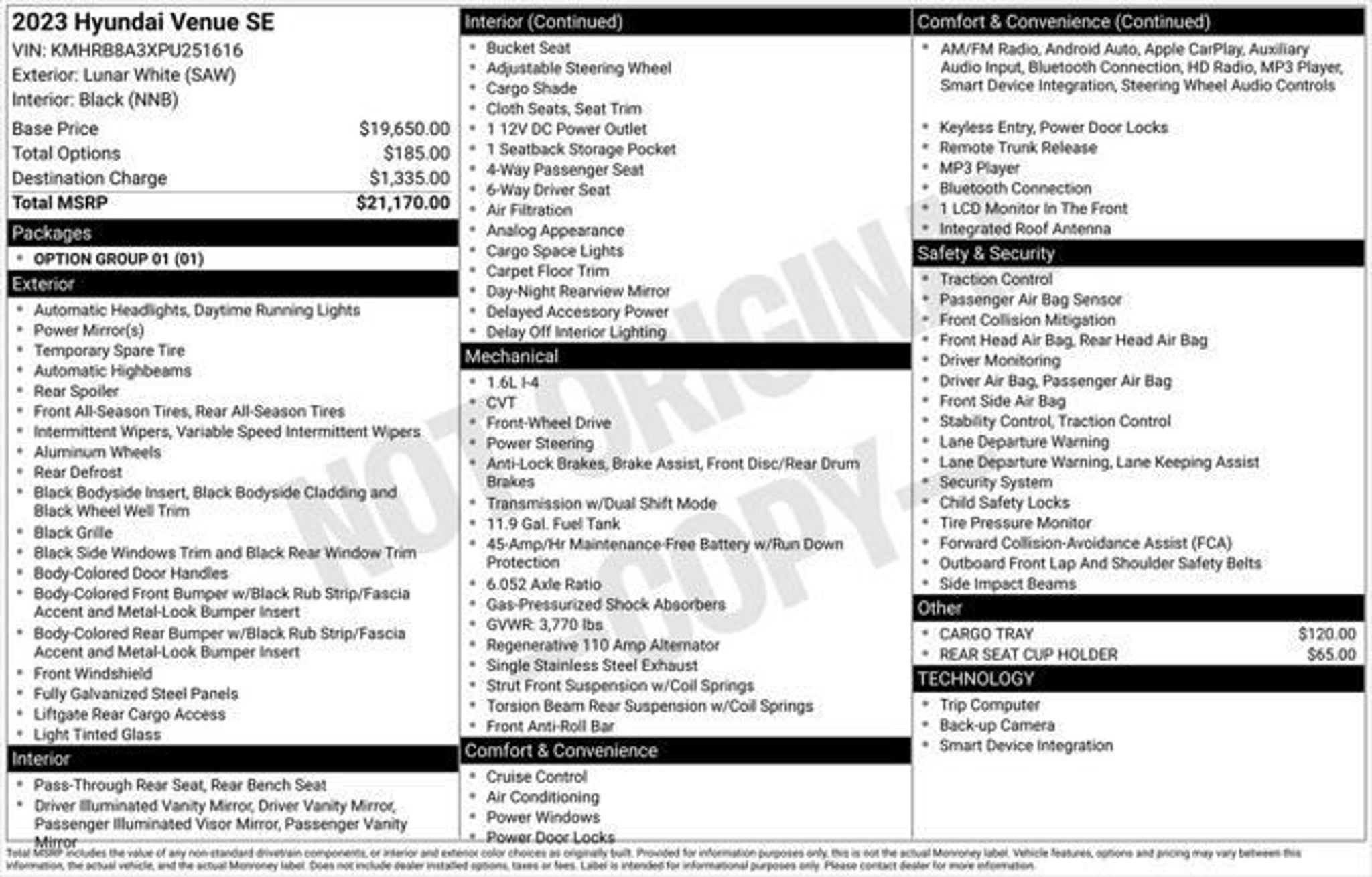 Details > 2023 Hyundai Venue SE 4DR Crossover For Sale in Columbus, OH Private Party Sellers Click here to place your ad now! You auta tell them you saw the ad in AutaBuy when you call or email. 1/35 2/35 3/35 4/35 5/35 6/35 7/35 8/35 9/35 10/35 11/35 12/35 13/35 14/35 15/35 16/35 17/35 18/35 19/35 20/35 21/35 22/35 23/35 24/35 25/35 26/35 27/35 28/35 29/35 30/35 31/35 32/35 33/35 34/35 35/35 View 35 Photos View All Add to My Garage Parked in Your Garage! Germain Hyundai Contact Seller: I would like to: Make Offer Check Availability Ask A Question Request More Photos Check Financing Options Send a copy of this message to me Add this listing to my garage Send to Mobile Mileage 14,859 Exterior Color Lunar White Interior Color Black Doors 4 Engine 1.6L I4 Stock # HTPU251616 VIN KMHRB8A3XPU251616 Estimated Monthly Payment $313 mo Apply Now J.J. Best Banc & Co. 2023 Hyundai Venue SE 4DR Crossover Description: Germain Hyundai · Mileage: 14,859 · Color: Lunar White Price: $17,999. Mileage 14,859 Exterior Color Lunar White Interior Color Black Doors 4 Engine 1.6L I4 Stock # HTPU251616 VIN KMHRB8A3XPU251616 Estimated Monthly Payment $313 mo Apply Now J.J. Best Banc & Co. Add to My Garage Parked in Your Garage! Message Seller Germain Hyundai Contact Seller: I would like to: Make Offer Check Availability Ask A Question Request More Photos Check Financing Options Send a copy of this message to me Add this listing to my garage Offered for sale by Germain Hyundai COLUMBUS, OH Price: $17,999. Offered for sale by Germain Hyundai COLUMBUS, OH [entire inventory] Ask Auta Intelligence The first collector-car AI built directly into a classic car marketplace What transmission options did these offer? What kind of mileage do these get? Can you show me more suvs for a similar price? Tell me the history on this model What does this VIN number tell me? How many passengers can this seat comfortably? What engine options did these come with? What trim levels were available for this model? How many of these were produced? Where is this located? What colors did these come in? How far is this from me? What safety features does this model offer? How many Venues were produced in White? How easy are parts to find for this model? What factory options were available on this model? When was this model first introduced? Do you have a similar car to sell? List It Now! Questions about this car? Ask Auta Intelligence for production numbers, available options, etc. · Subscribe to AutaBuy! · Send a Gift Subscription Notice to a Friend