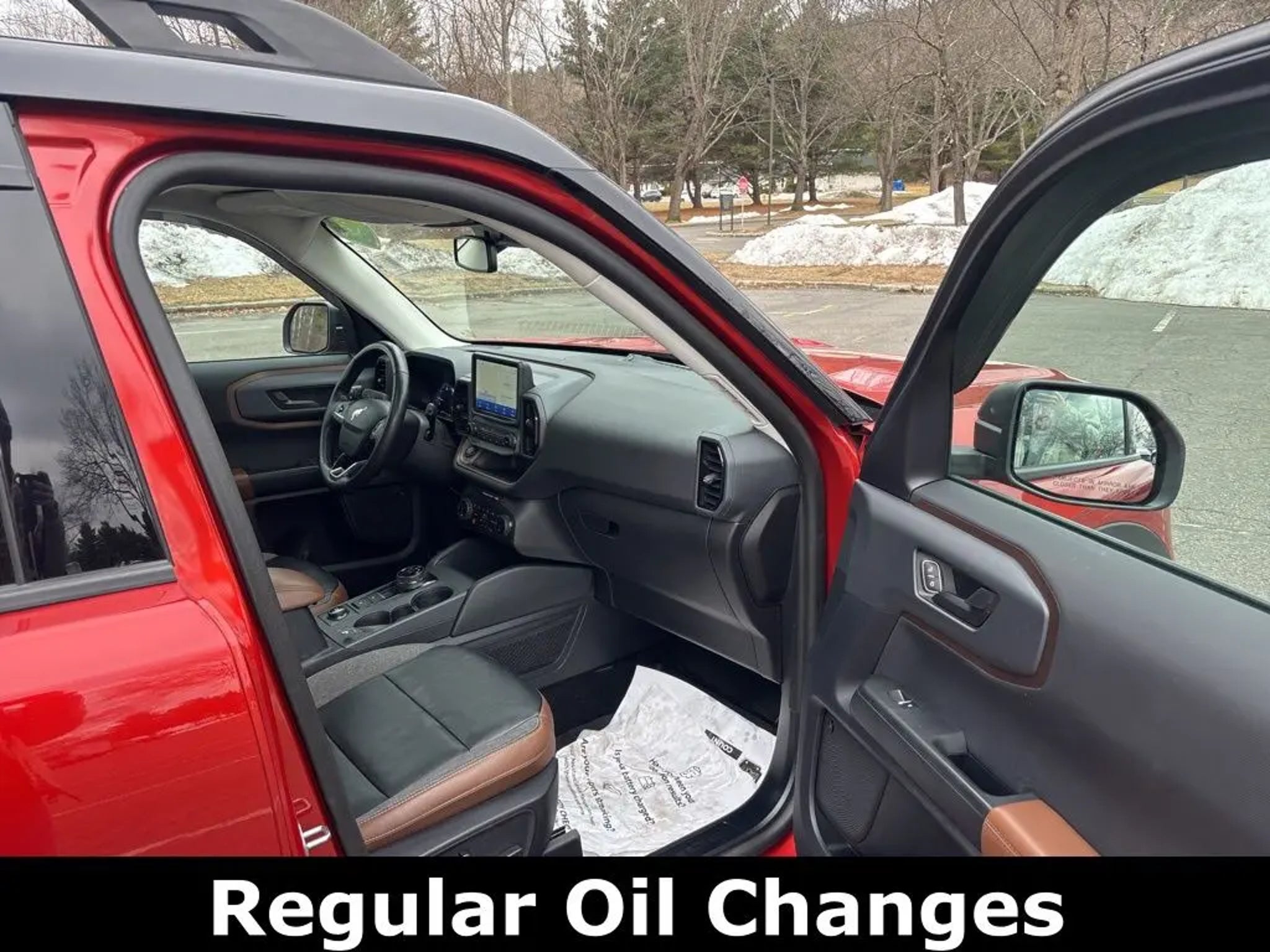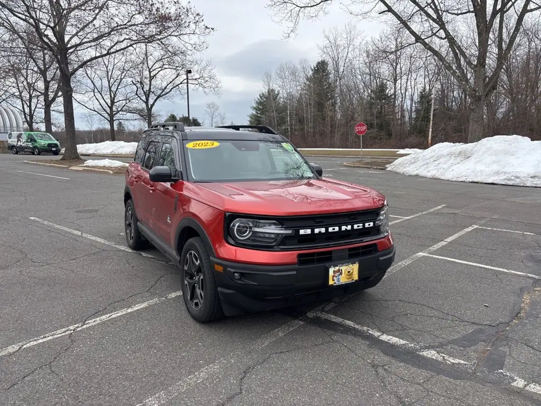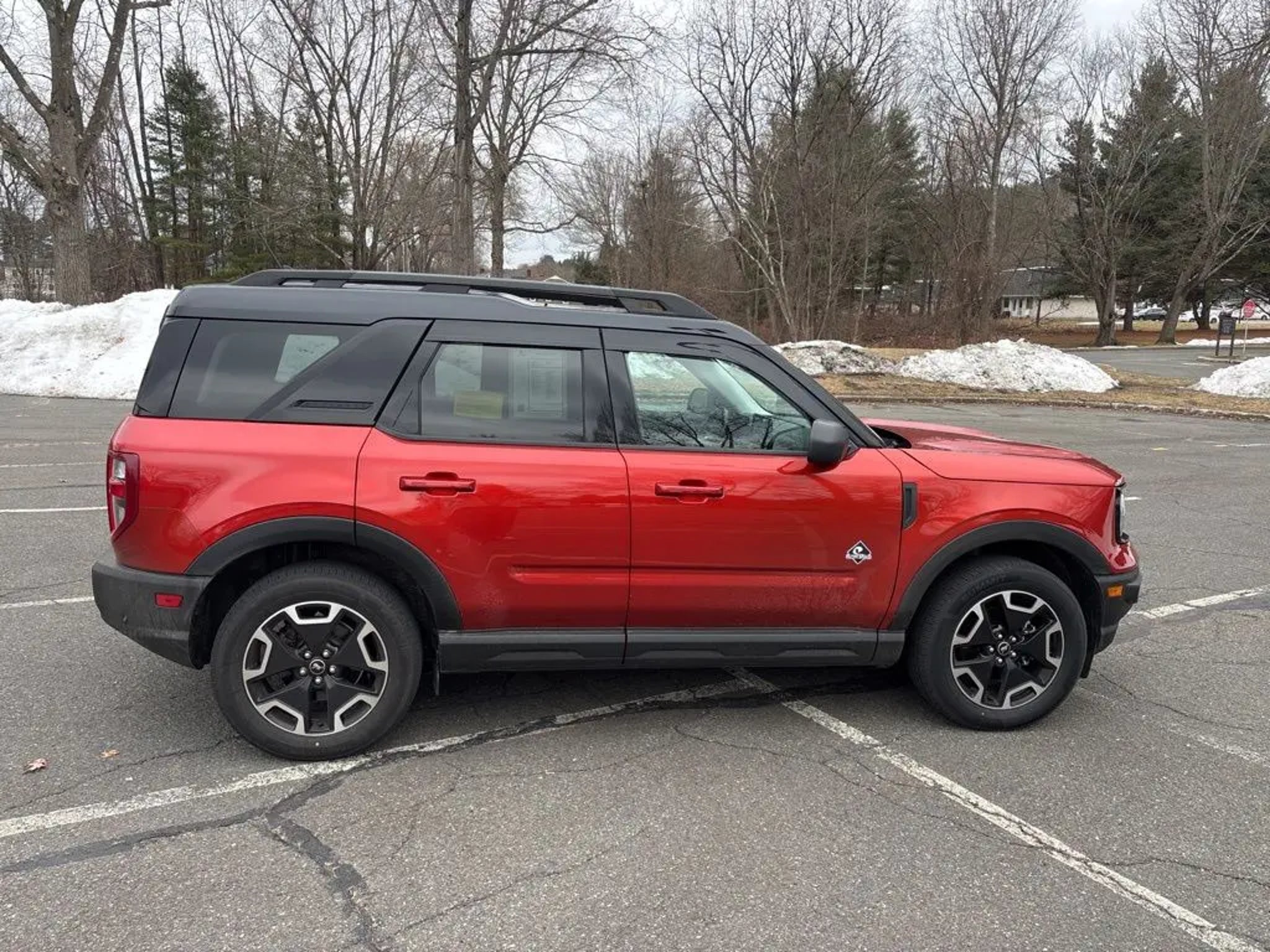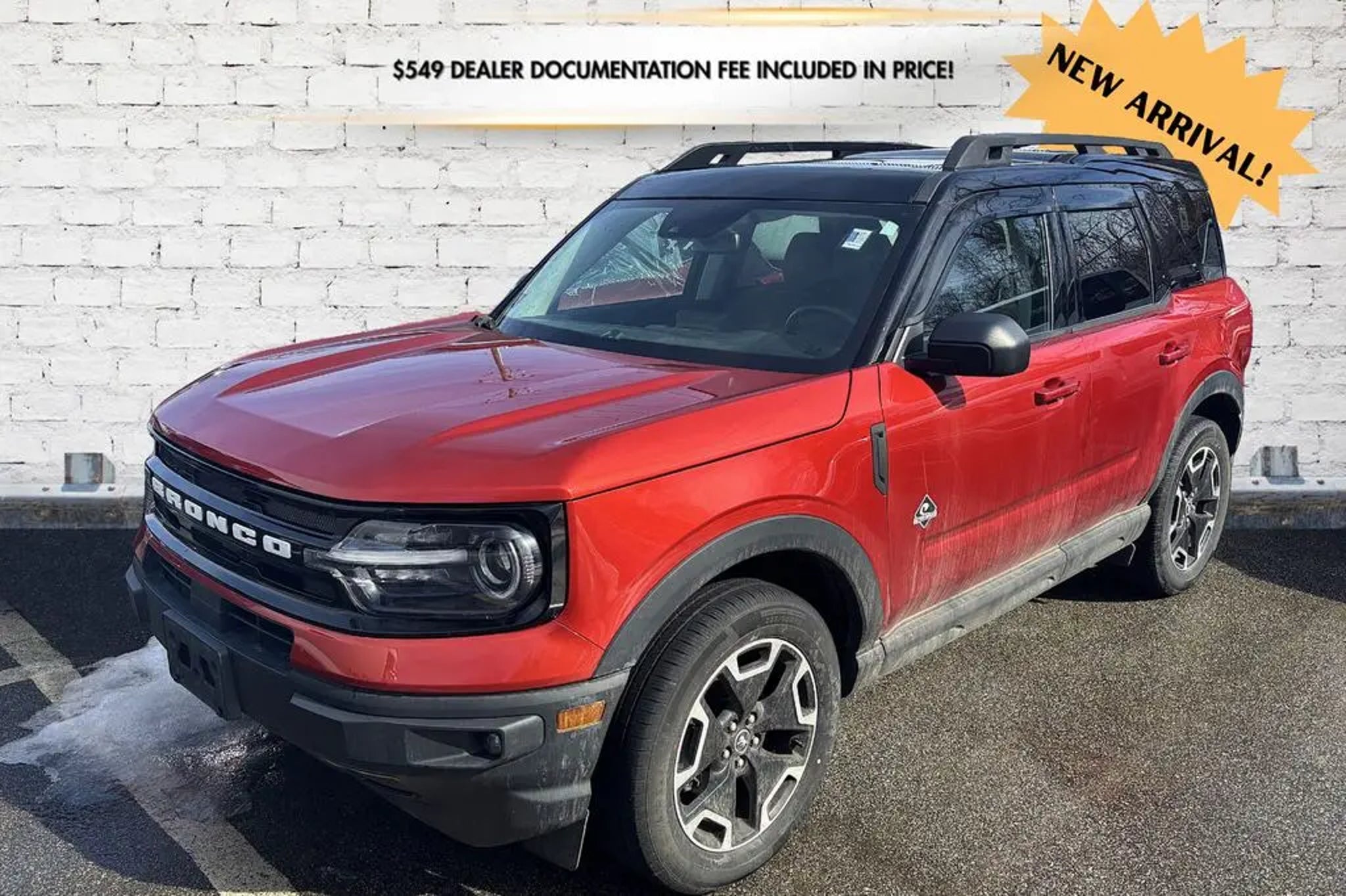 ***Dealer Documentation Fee ($549) Included*** KEY FEATURES: 25/28 City/Highway MPG, Complete Service Records, One Owner Vehicle, Regular Oil Changes, Class II Trailer Tow Package w/Trailer Sway Control, Equipment Group 300A, Ford Co-Pilot360 Assist, Power Moonroof, Tech Package, Voice-Activated Touchscreen Navigation System, Wireless Charging Pad. The 2023 Ford Bronco Sport Outer Banks in Hot Pepper Red Tinted Clearcoat blends rugged adventure style with premium comfort and intelligent technology for every journey. It features a power moonroof for open-air enjoyment, heated front seats, heated steering wheel, and a wireless charging pad to keep you cozy and connected. Stay entertained with SiriusXM, SYNC 3 Communications & Entertainment System including Apple CarPlay and Android Auto, and Voice-Activated Touchscreen Navigation System, plus 4G LTE Wi-Fi Hotspot Credit for seamless connectivity. Confidence comes standard with Intelligent Adaptive Cruise Control with Stop & Go, Evasive Steering Assist, rear parking sensors, low tire pressure warning, and occupant sensing airbag, while rain sensing and speed-sensitive wipers ensure clear visibility in any weather. Practical touches like a cargo management system add versatile utility, making this capable compact SUV the perfect choice for daily drives, weekend escapes, or light off-road fun with refined performance and peace of mind. Come in for a test drive today at 1 Main Street in Greenfield, Ma off of exit 43 (Previously exit 26) on I-91. Proudly serving Franklin & Hampshire County. Including Greenfield, Montague, Millers Falls, Erving, Gill, Northfield, Deerfield, Sunderland, Bernardston, Hadley, Amherst and Northampton, Massachusetts. Minutes from Brattleboro, VT & Keene, NH. Price excludes, tax, title, and registration fees.