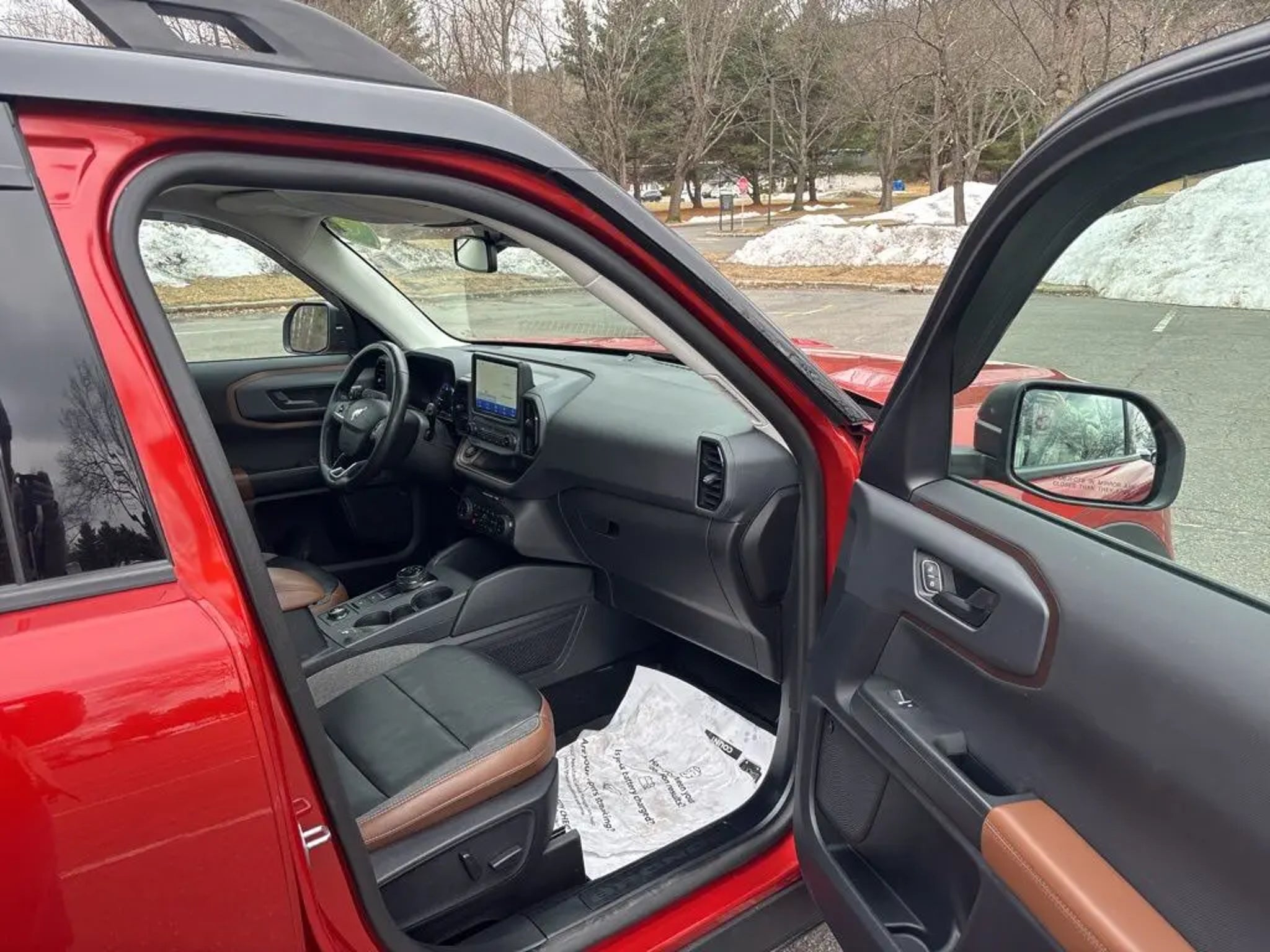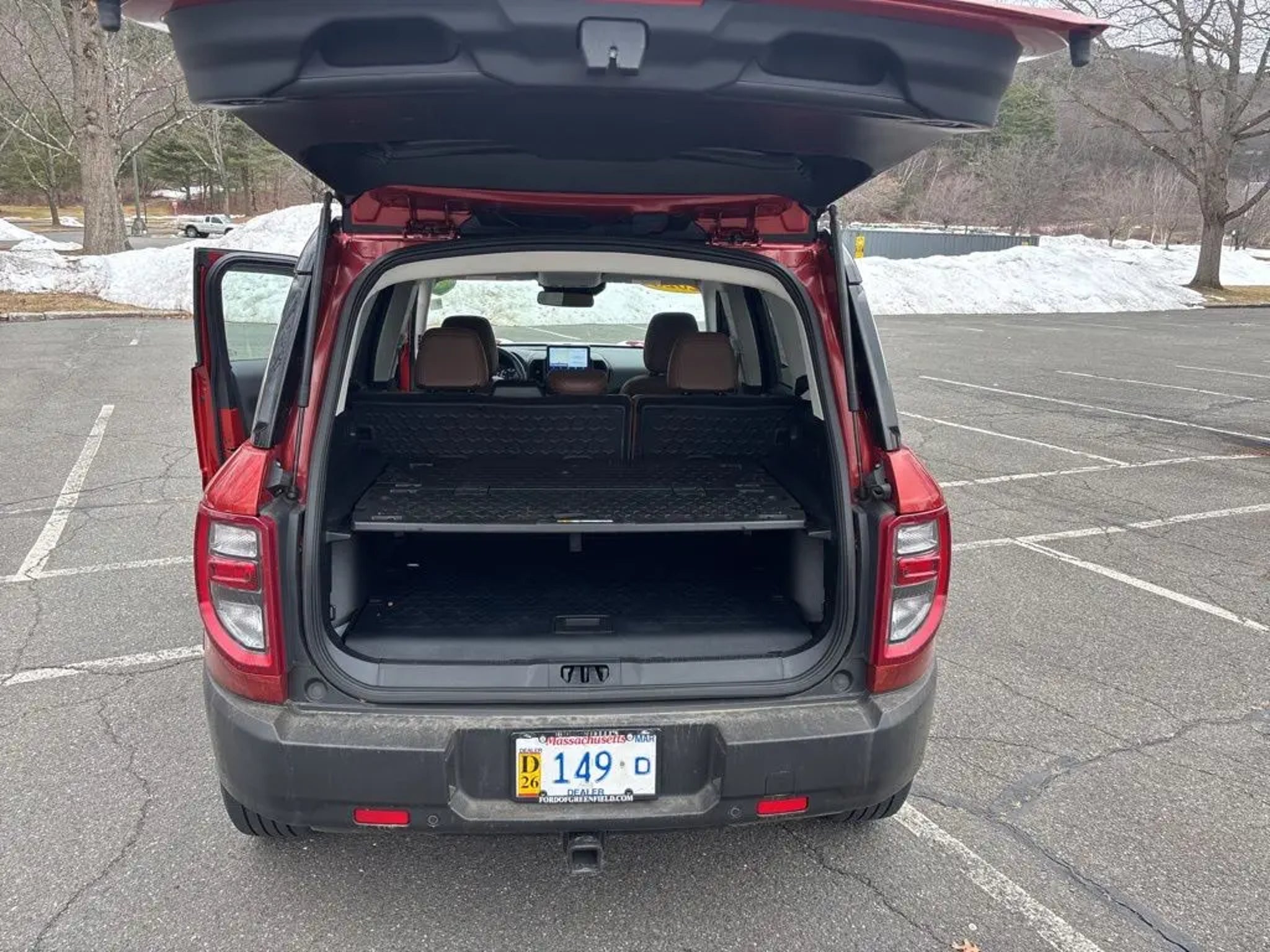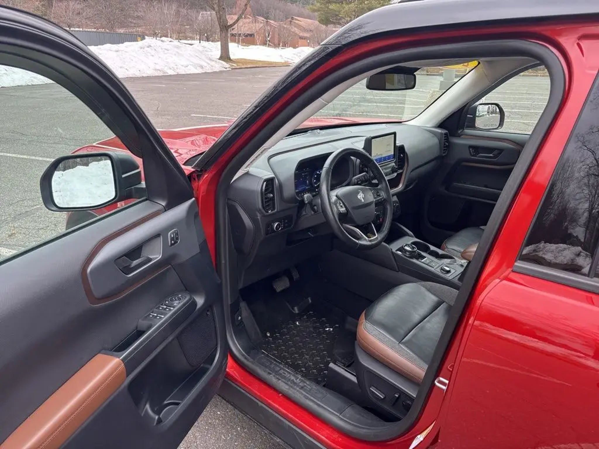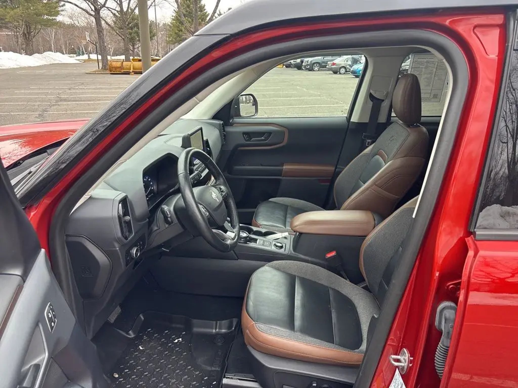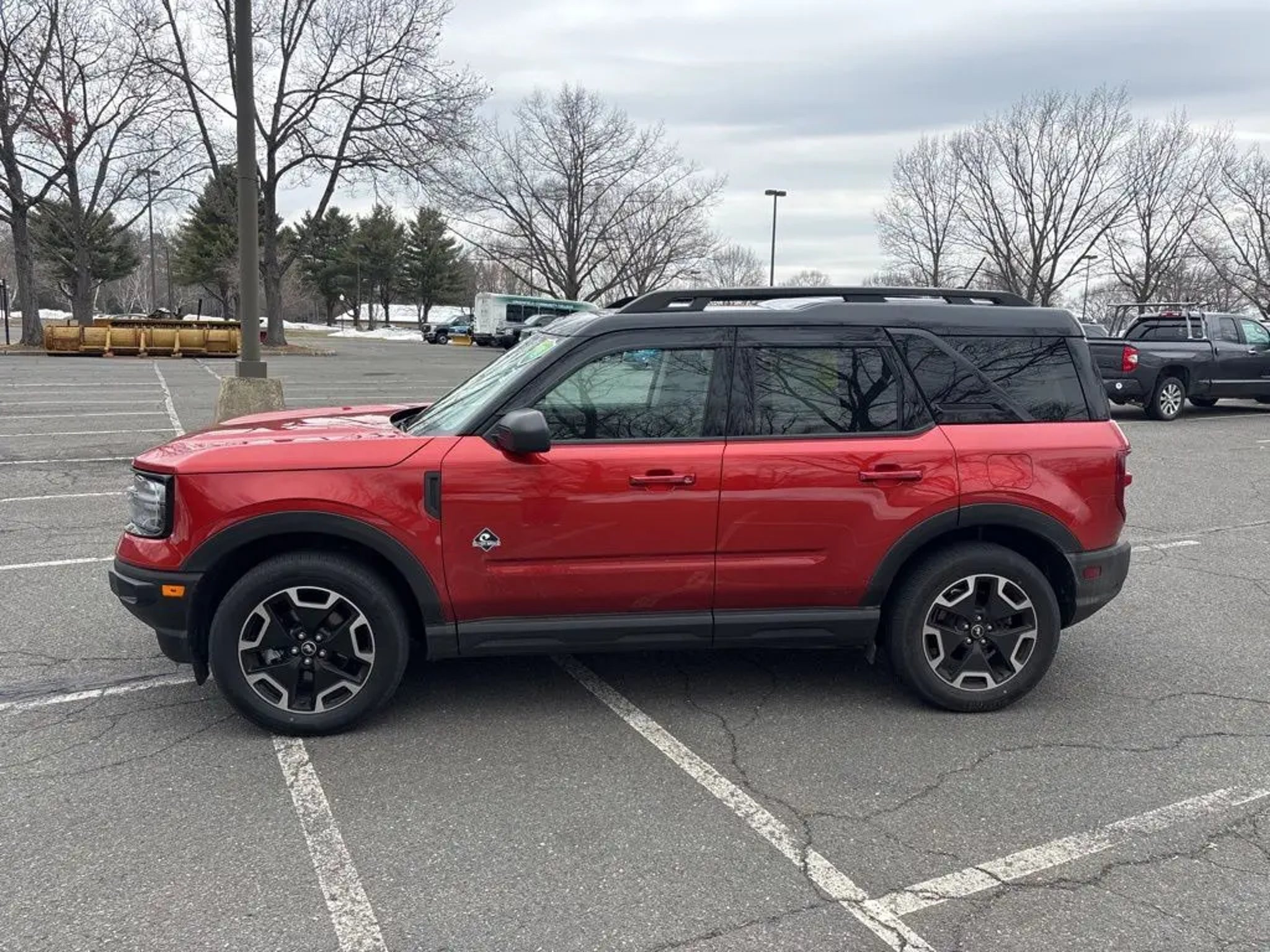 ***Dealer Documentation Fee ($549) Included*** KEY FEATURES: 25/28 City/Highway MPG, Complete Service Records, One Owner Vehicle, Regular Oil Changes, Class II Trailer Tow Package w/Trailer Sway Control, Equipment Group 300A, Ford Co-Pilot360 Assist, Power Moonroof, Tech Package, Voice-Activated Touchscreen Navigation System, Wireless Charging Pad. The 2023 Ford Bronco Sport Outer Banks in Hot Pepper Red Tinted Clearcoat blends rugged adventure style with premium comfort and intelligent technology for every journey. It features a power moonroof for open-air enjoyment, heated front seats, heated steering wheel, and a wireless charging pad to keep you cozy and connected. Stay entertained with SiriusXM, SYNC 3 Communications & Entertainment System including Apple CarPlay and Android Auto, and Voice-Activated Touchscreen Navigation System, plus 4G LTE Wi-Fi Hotspot Credit for seamless connectivity. Confidence comes standard with Intelligent Adaptive Cruise Control with Stop & Go, Evasive Steering Assist, rear parking sensors, low tire pressure warning, and occupant sensing airbag, while rain sensing and speed-sensitive wipers ensure clear visibility in any weather. Practical touches like a cargo management system add versatile utility, making this capable compact SUV the perfect choice for daily drives, weekend escapes, or light off-road fun with refined performance and peace of mind. Come in for a test drive today at 1 Main Street in Greenfield, Ma off of exit 43 (Previously exit 26) on I-91. Proudly serving Franklin & Hampshire County. Including Greenfield, Montague, Millers Falls, Erving, Gill, Northfield, Deerfield, Sunderland, Bernardston, Hadley, Amherst and Northampton, Massachusetts. Minutes from Brattleboro, VT & Keene, NH. Price excludes, tax, title, and registration fees.