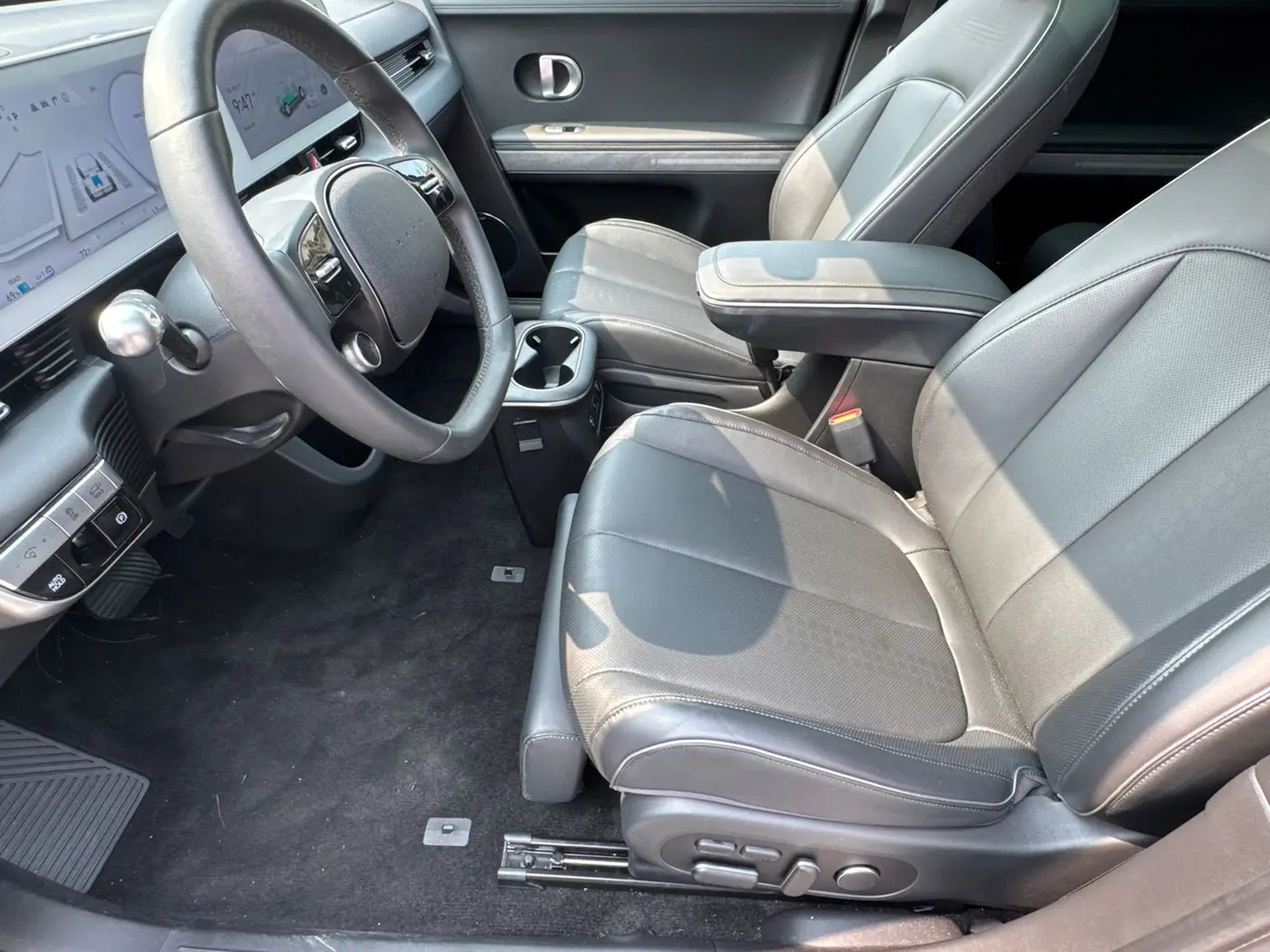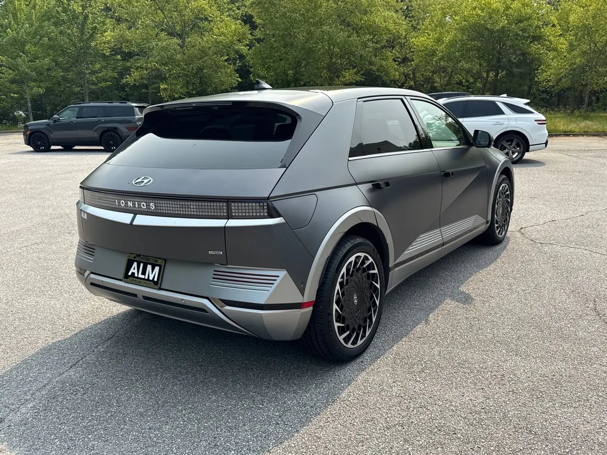 **LOW MILES** ONLY 13K MILES**, 2.5L TURBOCHARGED INLINE-4 ENGINE ** 8-SPEED WET DUAL-CLUTCH AUTOMATIC TRANSMISSION ** HTRAC ALL-WHEEL DRIVE ** 277 HORSEPOWER ** 311 LB-FT OF TORQUE ** DRIVE MODE SELECT ** PADDLE SHIFTERS ** ELECTRONIC PARKING BRAKE WITH AUTO HOLD ** 4-WHEEL DISC BRAKES WITH ABS ** ELECTRONIC STABILITY CONTROL ** TRACTION CONTROL SYSTEM ** HILLSTART ASSIST CONTROL ** CALLIGRAPHY EXCLUSIVE EXTERIOR STYLING ** PREMIUM FRONT GRILLE DESIGN ** FULL LED HEADLIGHTS ** LED DAYTIME RUNNING LIGHTS ** LED TAILLIGHTS ** 20-INCH ALLOY WHEELS ** HANDS-FREE SMART LIFTGATE ** PANORAMIC SUNROOF ** ROOF SIDE RAILS ** BODY-COLOR DOOR HANDLES WITH CHROME ACCENTS ** HEATED POWER-FOLDING SIDE MIRRORS WITH TURN SIGNAL INDICATORS ** ACOUSTIC LAMINATED FRONT GLASS ** PREMIUM NAPPA LEATHER SEATING SURFACES ** QUILTED LEATHER DOOR PANELS ** HEATED AND VENTILATED FRONT SEATS ** HEATED SECOND-ROW SEATS ** POWER DRIVERS SEAT WITH MEMORY SETTINGS ** POWER FRONT PASSENGER SEAT ** DUAL-ZONE AUTOMATIC CLIMATE CONTROL ** THIRD-ROW SEATING ** 60/40 SPLIT-FOLDING SECOND ROW ** POWER-FOLDING THIRD ROW ** AMBIENT INTERIOR LIGHTING ** LEATHER-WRAPPED STEERING WHEEL ** TILT AND TELESCOPIC STEERING COLUMN ** 12.3-INCH DIGITAL INSTRUMENT CLUSTER ** 12.3-INCH TOUCHSCREEN INFOTAINMENT DISPLAY ** NAVIGATION SYSTEM ** APPLE CARPLAY ** ANDROID AUTO ** BLUETOOTH HANDS-FREE CONNECTIVITY ** BOSE PREMIUM AUDIO SYSTEM ** WIRELESS DEVICE CHARGING ** MULTIPLE USB PORTS ** HEAD-UP DISPLAY ** SURROUND VIEW MONITOR ** PARKING DISTANCE WARNING ** REMOTE SMART PARK ASSIST ** FORWARD COLLISION-AVOIDANCE ASSIST WITH PEDESTRIAN AND CYCLIST DETECTION ** BLIND-SPOT VIEW MONITOR ** BLIND-SPOT COLLISION-AVOIDANCE ASSIST ** REAR CROSS-TRAFFIC COLLISION-AVOIDANCE ASSIST ** LANE KEEPING ASSIST ** LANE FOLLOWING ASSIST ** HIGHWAY DRIVING ASSIST ** DRIVER ATTENTION WARNING ** SAFE EXIT ASSIST ** REAR OCCUPANT ALERT ** TIRE PRESSURE MONITORING SYSTEM ** ADVANCED AIRBAG SYSTEM ** CHILD SAFETY LOCKS ** LATCH CHILD SEAT ANCHOR SYSTEM **. Shooting Star (Matte Gray) 2023 Hyundai IONIQ 5 Limited AWD 1-Speed Automatic Electric Motor Location: ALM Hyundai West | 669 Thornton Rd, Lithia Springs, GA 30122 Contact: **Open 7 Days a Week** Odometer is 12829 miles below market average! 113/90 City/Highway MPG Awards: * Motor Trend Automobiles of the year