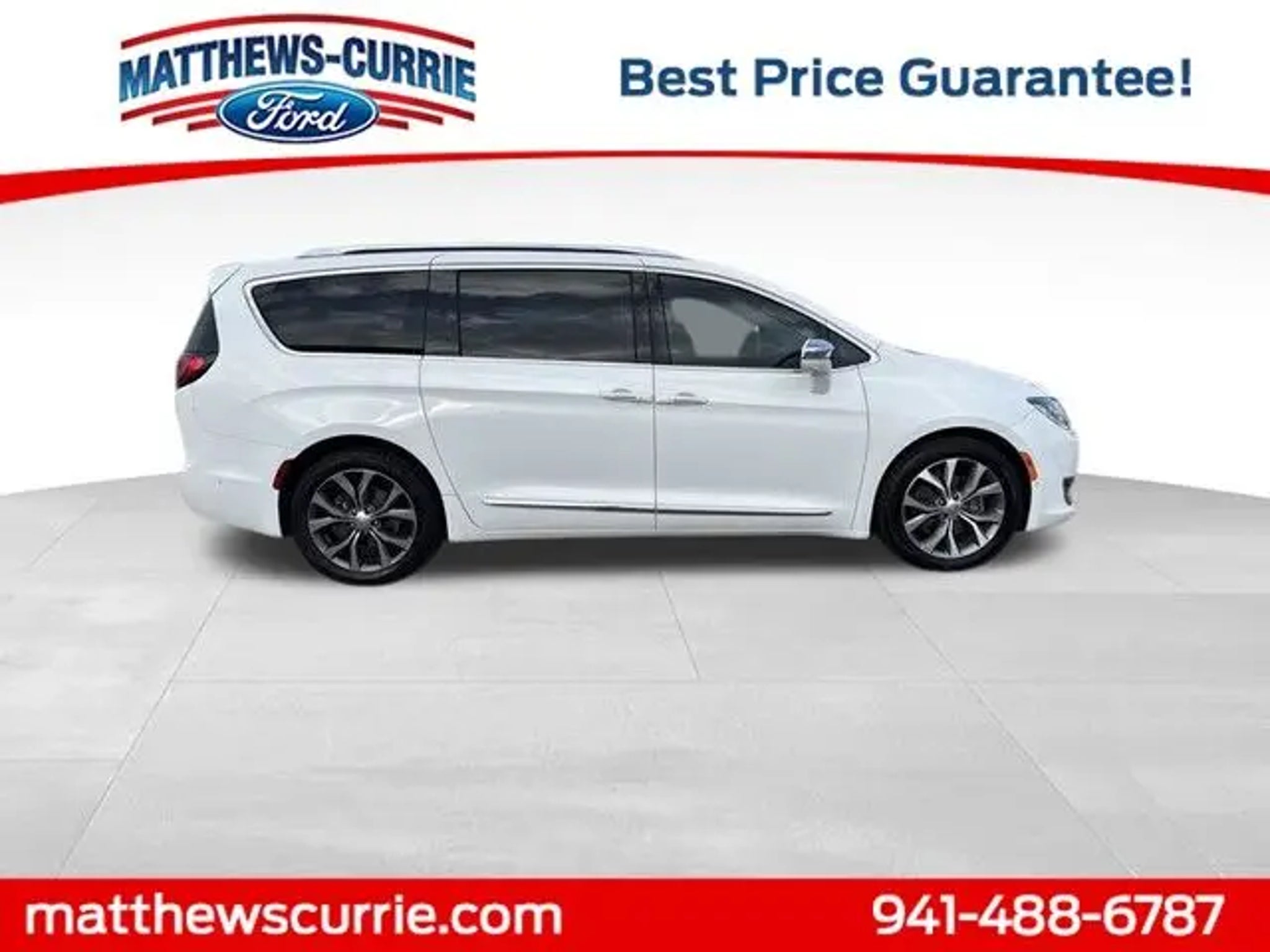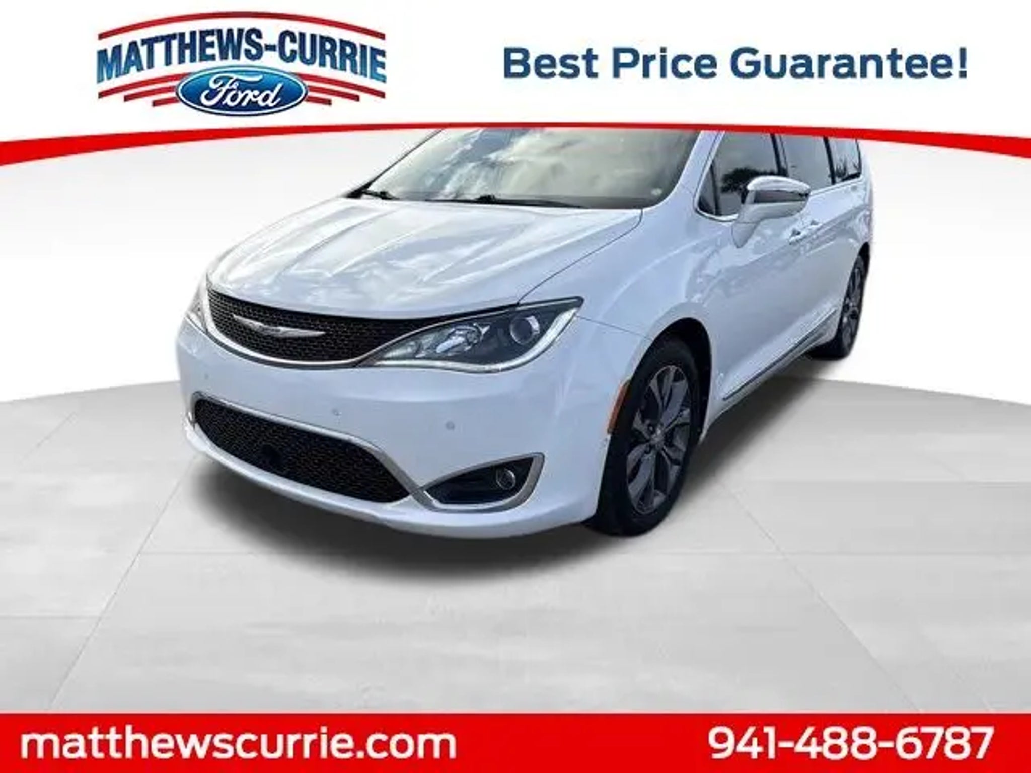 This 2017 Chrysler Pacifica Limited in Bright White Clearcoat features:CLEAN CARFAX LOCAL TRADE IN*UCONNECT THEATER & SOUND GROUP*ADVANCED SAFETY GROUP*TRAILER TOW GROUP*PREMIUM SOUND SYSTEM**DUAL MOONROOF*CROSS TRAFFIC ALERT*YOUR UNDISPUTED PRICE LEADER MATTHEWS CURRIE FORD 18/28 City/Highway MPG Awards: * JD Power Automotive Performance, Execution and Layout (APEAL) Study, Initial Quality Study (IQS) * JD Power Initial Quality Study (IQS) * NACTOY 2017 North American Utility of the Year * 2017 KBB.com Best Buy Awards * 2017 KBB.com 10 Favorite New-for-2017 Cars * 2017 KBB.com 12 Best Family Cars Reviews: * Easy to transform from people hauler to cargo hauler; upscale interior; roomy third-row seat; many convenience and luxury-based features available. Source: Edmunds * Easy to transform from people hauler to cargo hauler; upscale interior; roomy third-row seat; many convenience and luxury-based features available; class-exclusive hybrid engine option. Source: Edmunds Must finance with Matthews Currie Ford to get advertised savings second key, floor mats, owner's manual may not be available on all pre-owned vehicles, all prices are plus tax, tag,title, $349 electronic filing fee & $999 dealership fee and may not include certification and reconditioning costs. While Every Reasonable Effort Is Made To Ensure The Accuracy Of This Data, We Are Not Responsible For Any Errors Or Omissions Contained On These Pages.