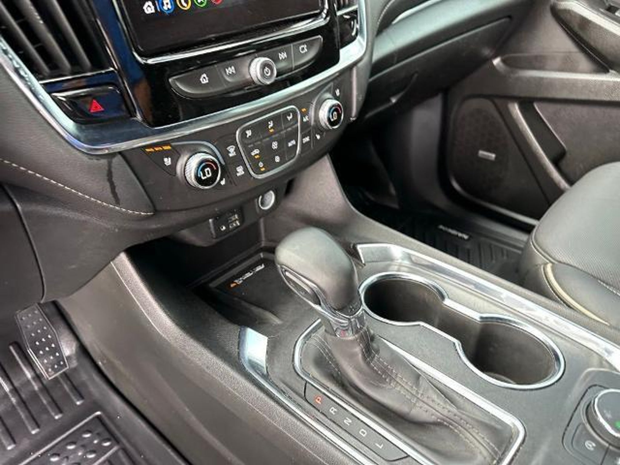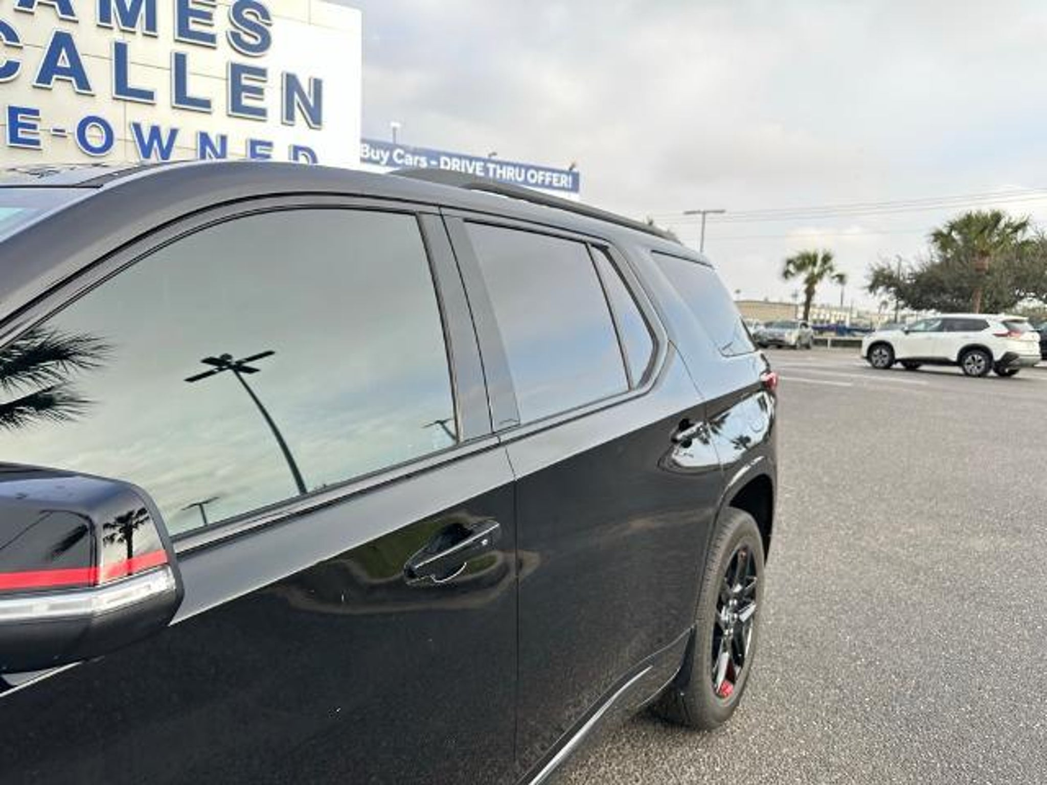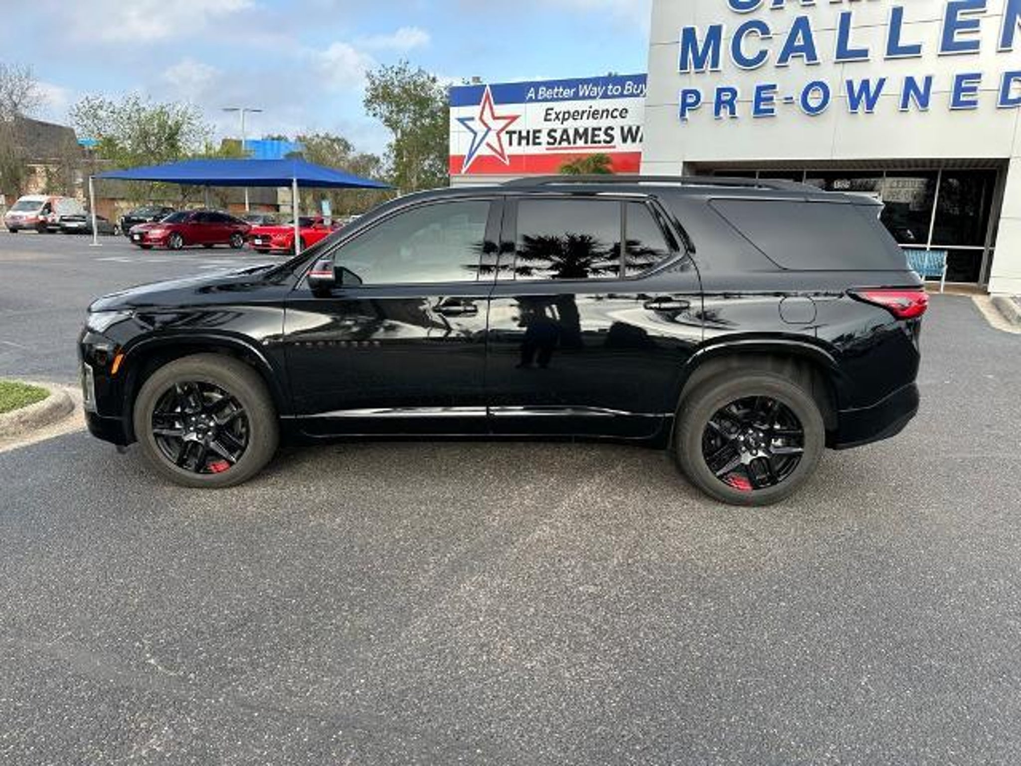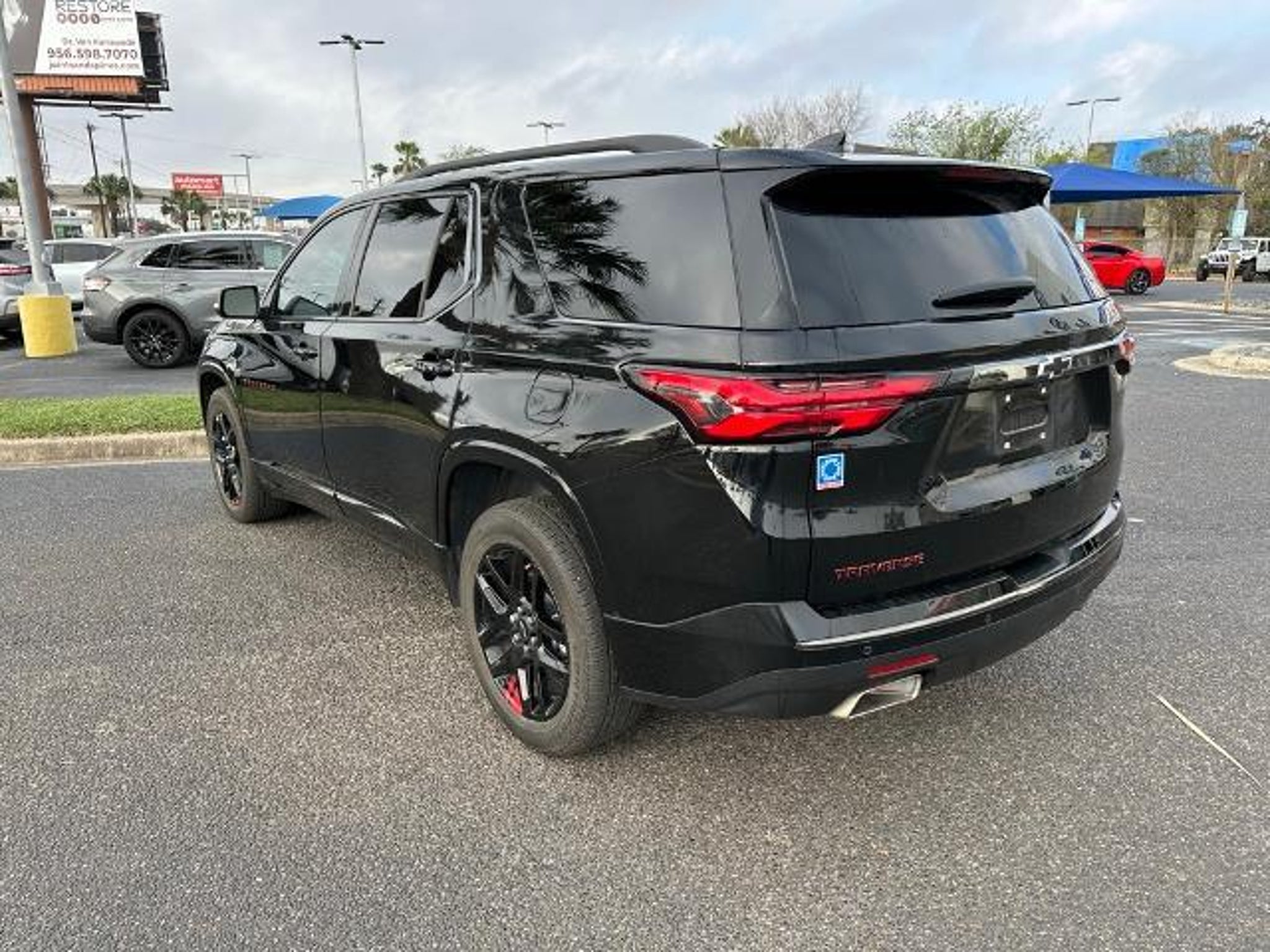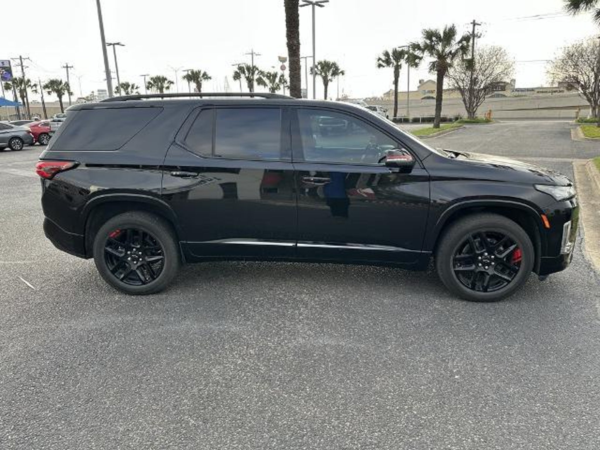 This 2023 Chevrolet Traverse Premier in Mosaic Black Metallic comes with the following features: 3.6L V6 SIDI VVT 9-Speed Automatic FWD Front License Plate Bracket Mounting Package, Preferred Equipment Group 1LZ (Heated 2nd Row Outboard Position Seats, Heated Driver & Front Passenger Seats, and Ventilated Driver & Front Passenger Seats), Redline Edition (Black Bowtie, Black Door Handles, Black Roof Rails, Dual SkyScape 2-Panel Power Sunroof, Ornamentation, Redline Accent Decals (LPO), and Wheels: 20 Gloss Black Painted Alum w/Red Stripes), Trailering Equipment (Heavy-Duty Cooling System, Hitch Guidance w/Hitch View, and Trailering Assist Guidelines), Sames Certified Certified, 10 Speakers, 3.49 Axle Ratio, 3rd row seats: split-bench, 4-Wheel Disc Brakes, 6-Way Power Front Passenger Seat, 8-Way Power Driver Seat Adjuster, ABS brakes, Air Conditioning, Alloy wheels, AM/FM radio: SiriusXM with 360L, Apple CarPlay/Android Auto, Auto High-beam Headlights, Auto-dimming door mirrors, Auto-dimming Rear-View mirror, Automatic temperature control, Bose Premium 10-Speaker Audio System Feature, Brake assist, Bumpers: body-color, Compass, Delay-off headlights, Driver door bin, Driver vanity mirror, Dual front impact airbags, Dual front side impact airbags, Electronic Stability Control, Emergency communication system, Exterior Parking Camera Rear, Four wheel independent suspension, Front anti-roll bar, Front Bucket Seats, Front Center Armrest, Front dual zone A/C, Front Passenger 2-Way Power Lumbar, Front reading lights, Fully automatic headlights, Garage door transmitter, Heated door mirrors, Heated front seats, Heated rear seats, Heated steering wheel, Illuminated entry, Leather steering wheel, Low tire pressure warning, Memory seat, Navigation System, Occupant sensing airbag, Outside temperature display, Overhead airbag, Overhead console, Panic alarm, Passenger door bin, Passenger vanity mirror, Perforated Leather-Appointed Seat Trim, Power door mirrors, Power Driver Lumbar Control, Power driver seat, Power Liftgate, Power passenger seat, Power steering, Power windows, Premium audio system: Chevrolet Infotainment 3 Plus, Radio data system, Radio: Chevrolet Infotainment 3 Plus System w/Navi, Rear air conditioning, Rear anti-roll bar, Rear reading lights, Rear window defroster, Rear window wiper, Remote keyless entry, Security system, SiriusXM w/360L, Speed control, Speed-sensing steering, Spoiler, Steering wheel memory, Steering wheel mounted audio controls, Tachometer, Telescoping steering wheel, Tilt steering wheel