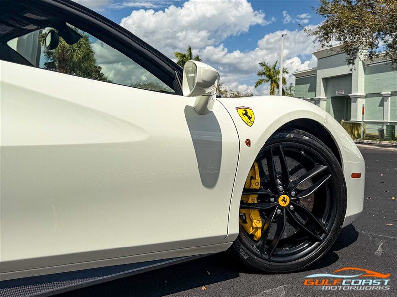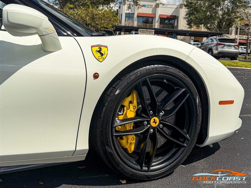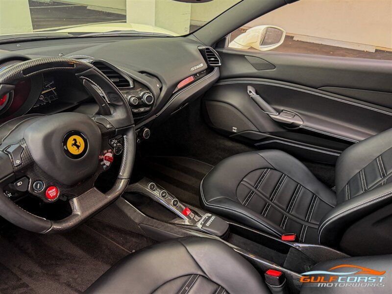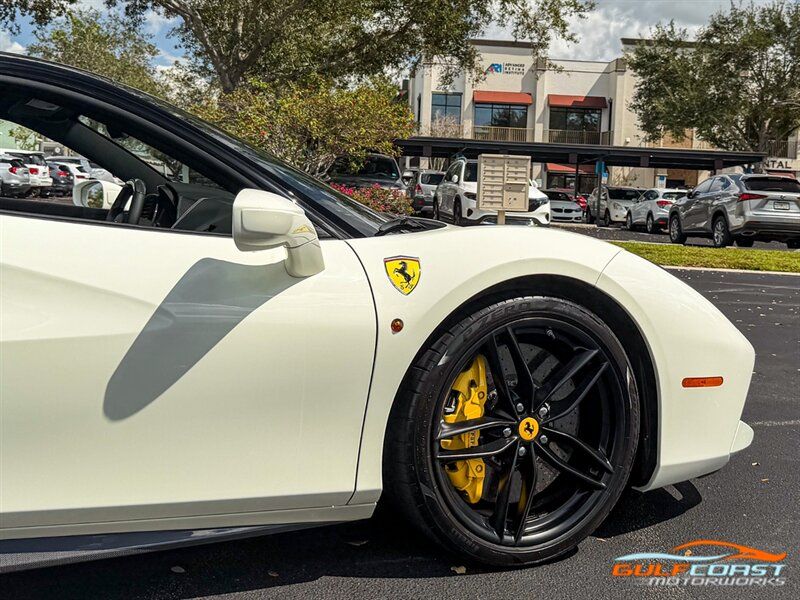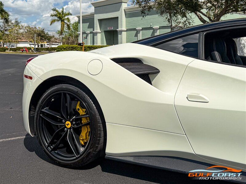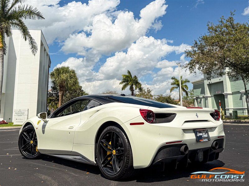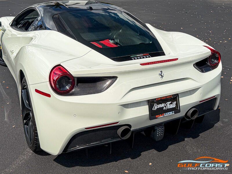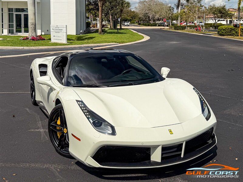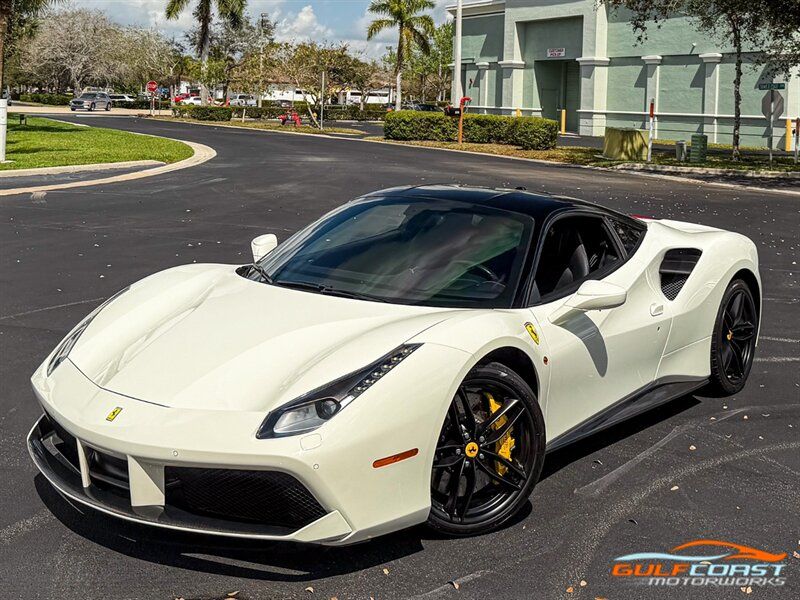 "2017 Ferrari 488 GTB. Bianco Avus Exterior with Nero Leather Interior. Features Include: 660 Horsepower Twin Turbo 3.9L V8 Engine, Seven-Speed Dual Clutch Automatic Transmission, Magnetic Suspension Damping, 20"" 10-Spoke Wheels in a Black Finish, Yellow Calipers, Two Tone Body Painting, Carbon Fiber Rear Air Ducts, Carbon Fiber Side Air Splitter, Carbon Fiber Under-Door Cover, Exterior Sill Kick in Carbon Fiber, Suspension Lifter, Sport Exhaust System, Carbon Fiber Front Spoiler, Scuderia Ferrari Shields, Adaptive Front Light System, LED Tail Lights, LED DRLs, Carbon Fiber Driver Zones + LEDS, Carbon Fiber Central Bridge, Carbon Fiber Upper Tunnel Trim, Dash Inserts in Carbon Fiber, Daytona Style Seats, Cavallino Stitched on Head Rests, Passenger Display, White Rev Counter, Full Electric Seats, Colored Special Stitching, Alcantara Perforated Inserts, Upper Part in Colored Leather, Parking Camera, Front & Rear Parking Sensors, Power Folding Outside Mirrors, Keyless Access & Ignition with Push Button Start, Smartphone Integration, Bluetooth, Navigation, HomeLink. Priced at only $279,995.00. Financing available. We ship worldwide. We pay top dollar for lightly used sports cars! Call or text our Product Specialists today at 239-522-2262 or email us at sales@gcmworks.com. Fees and Taxes: $1199.00 Doc Fee on all Purchases. Out of state buyers are responsible for all state, county, city taxes and fees, as well as title/registration fees in the state that the vehicle will be registered. -- INSTALLED FEATURES: Air filtration, Front air conditioning: automatic climate control, Front air conditioning zones: dual, Airbag deactivation: passenger switch, Front airbags: dual, Side airbags: front, Antenna type: diversity / element, Auxiliary audio input: Bluetooth / iPod/iPhone / jack / USB, Hard drive: 30GB, In-Dash CD: DVD audio / MP3 Playback / single disc, Premium brand: JBL, Radio: AM/FM / touch screen display / voice operated, Radio data system, Satellite radio: SiriusXM, Speed sensitive volume control, Subwoofer: 1, Total speakers: 12, Watts: 1280, ABS: 4-wheel, Electronic brakeforce distribution, Electronic parking brake, Front brake type: carbon ceramic disc, Power brakes, Premium brakes: Brembo, Rear brake type: carbon ceramic disc, Center console trim: leather, Dash trim: leather, Door sill trim: aluminum, Door trim: leather, Floor mat material: carpet, Floor material: carpet, Floor mats: front, Foot pedal trim: aluminum, Interior accents: aluminum, Steering wheel trim: alloy / leather, Cargo area light, Center console: front console with armrest and storage, Cruise control, Cupholders: front, Multi-function remote: keyless entry / panic alarm / trunk release, One-touch windows: 2, Power outlet(s): 12V front, Power steering: variable/speed-proportional, Power windows: lockout button, Push-button start, Reading lights: front, Rearview mirror: manual day/night, Steering wheel: tilt and telescopic, Steering wheel mounted controls: audio / paddle shifter / phone, Storage: door pockets, Tool kit, Vanity mirrors: passenger, Door handle color: body-color, Exhaust: dual tip, Exhaust tip color: stainless steel, Front bumper color: body-color, Grille color: black, Ground effects/lower spoilers, Mirror color: body-color, Rear bumper color: body-color, Rear spoiler: lip, Rear spoiler color: body-color, Window trim: black, Smartphone integration: Apple CarPlay, Clock, Compass, Customizable instrument cluster, Digital odometer, External temperature display, Fuel economy display: MPG / range, Gauge: tachometer, Instrument cluster screen size: 5 in. (dual), Multi-function display, Trip odometer, Warnings and reminders: coolant temperature warning / lamp failure / low battery / low fuel level / low oil pressure / low washer fluid / maintenance due, Daytime running lights: LED, Headlight cleaners, Headlights: auto delay off / auto on/off / HID/Xenon / self-leveling, Rear fog lights, Taillights: LED, Side mirror adjustments: power / power folding, Side mirrors: heated, Auto start/stop, Battery: maintenance-free, Battery saver, Drive mode selector, Limited slip differential: rear, Mid-mounted engine, Automatic hazard warning lights, Crumple zones: front / rear, Emergency interior trunk release, Impact sensor: fuel cut-off, Parking sensors: rear, Emergency locking retractors: front, Front seatbelts: 3-point, Seatbelt force limiters: front, Seatbelt pretensioners: front, Seatbelt warning sensor: front, Driver seat manual adjustments: 4 / reclining, Front headrests: 2 / integrated, Front seat type: sport bucket, Passenger seat manual adjustments: 4 / reclining, Upholstery: premium leather, Anti-theft system: alarm / interior motion sensor / perimeter alarm / vehicle immobilizer, Power door locks: auto-locking, Stability control, Traction control, Active suspension, Driver adjustable suspension: ride control, Front shock type: monotube, Front spring type: coil, Front stabilizer bar, Front struts, Front suspension classification: independent, Front suspension type: double wishbone, Rear shock type: monotube, Rear spring type: coil, Rear stabilizer bar, Rear suspension classification: independent, Rear suspension type: multi-link, Suspension control: magnetic, Tuned suspension: sport, Electronic messaging assistance: voice operated / with read function, Navigation system: hard drive / touch screen display / voice operated, Wireless data link: Bluetooth, Spare tire kit: inflator kit / tire sealant, Tire Pressure Monitoring System, Wheels: aluminum alloy, Front wipers: rain sensing / variable intermittent, Power windows: safety reverse, Tinted glass, Window defogger: rear"